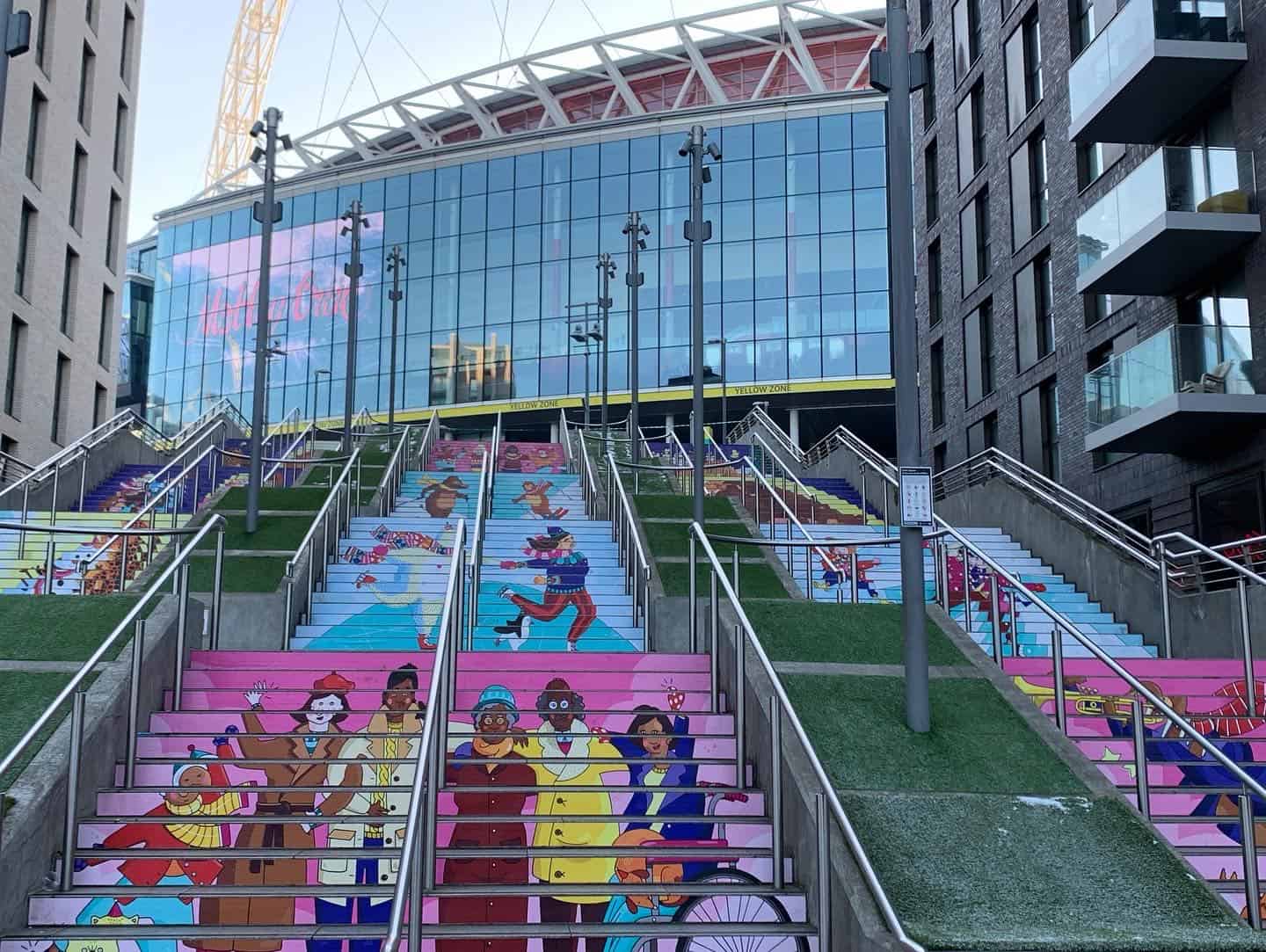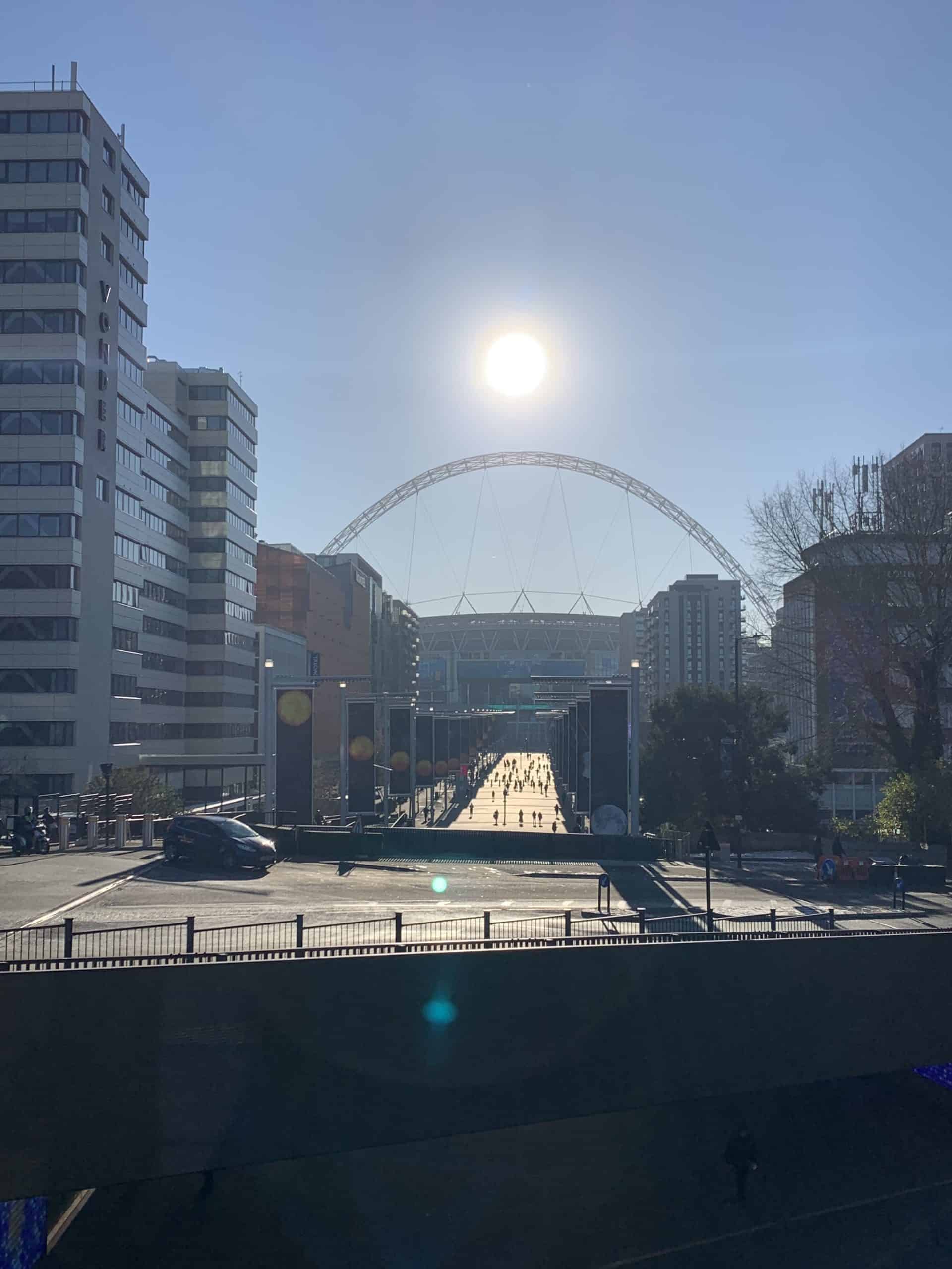 De eindbestemming van vandaag is het home of football, Wembley Stadium. Net na drie uur komen we aan op Wembley Park en zien we in de verte de 135 meter hoge boog boven het iconische stadion opdoemen. Vandaag geen bezoek aan Wembley Stadium, dat hebben we al eerder gedaan. Maar Wembley even ‘aanraken’ mag op een dag als deze niet ontbreken. Het blijft een magisch stadion.