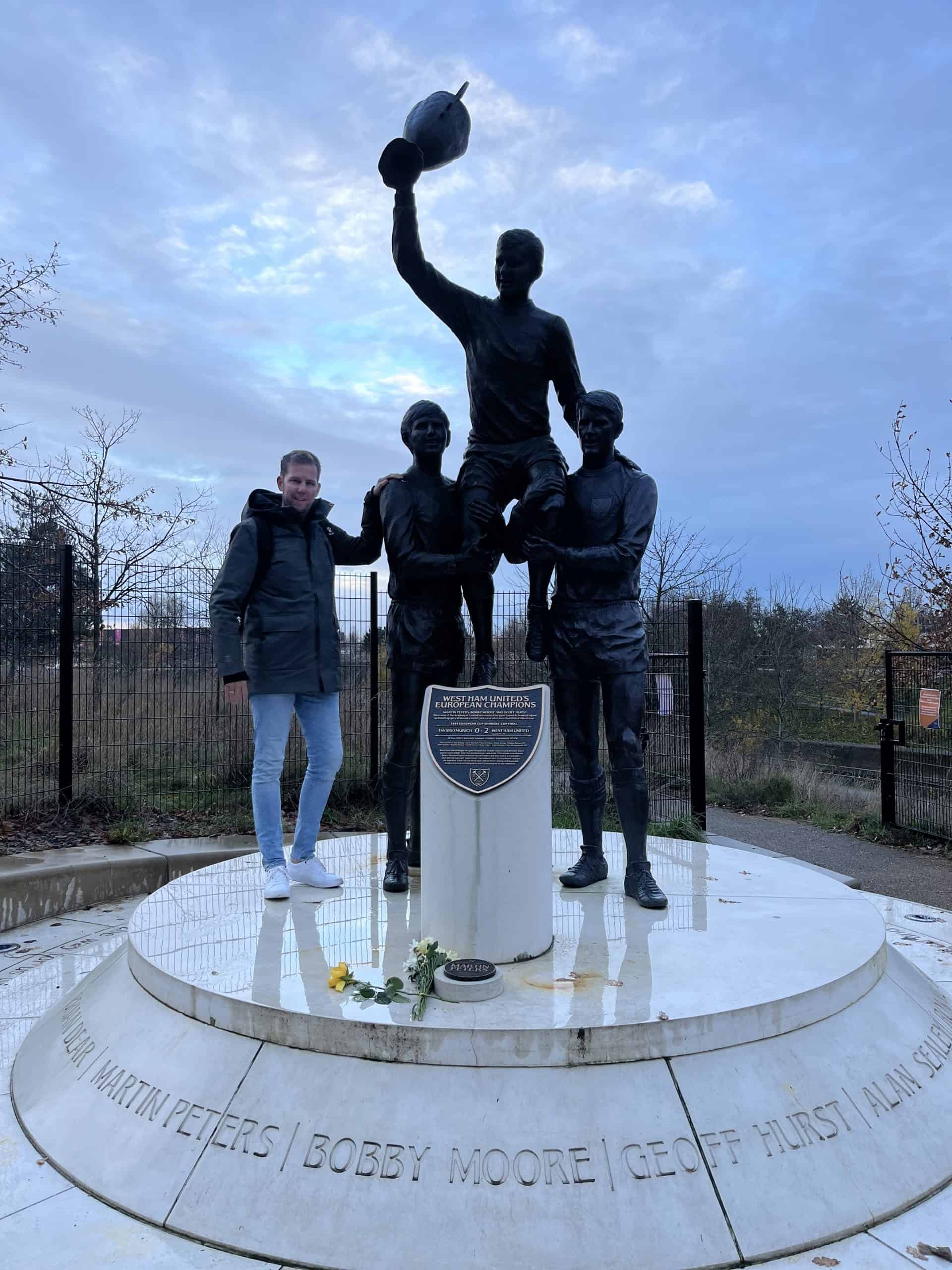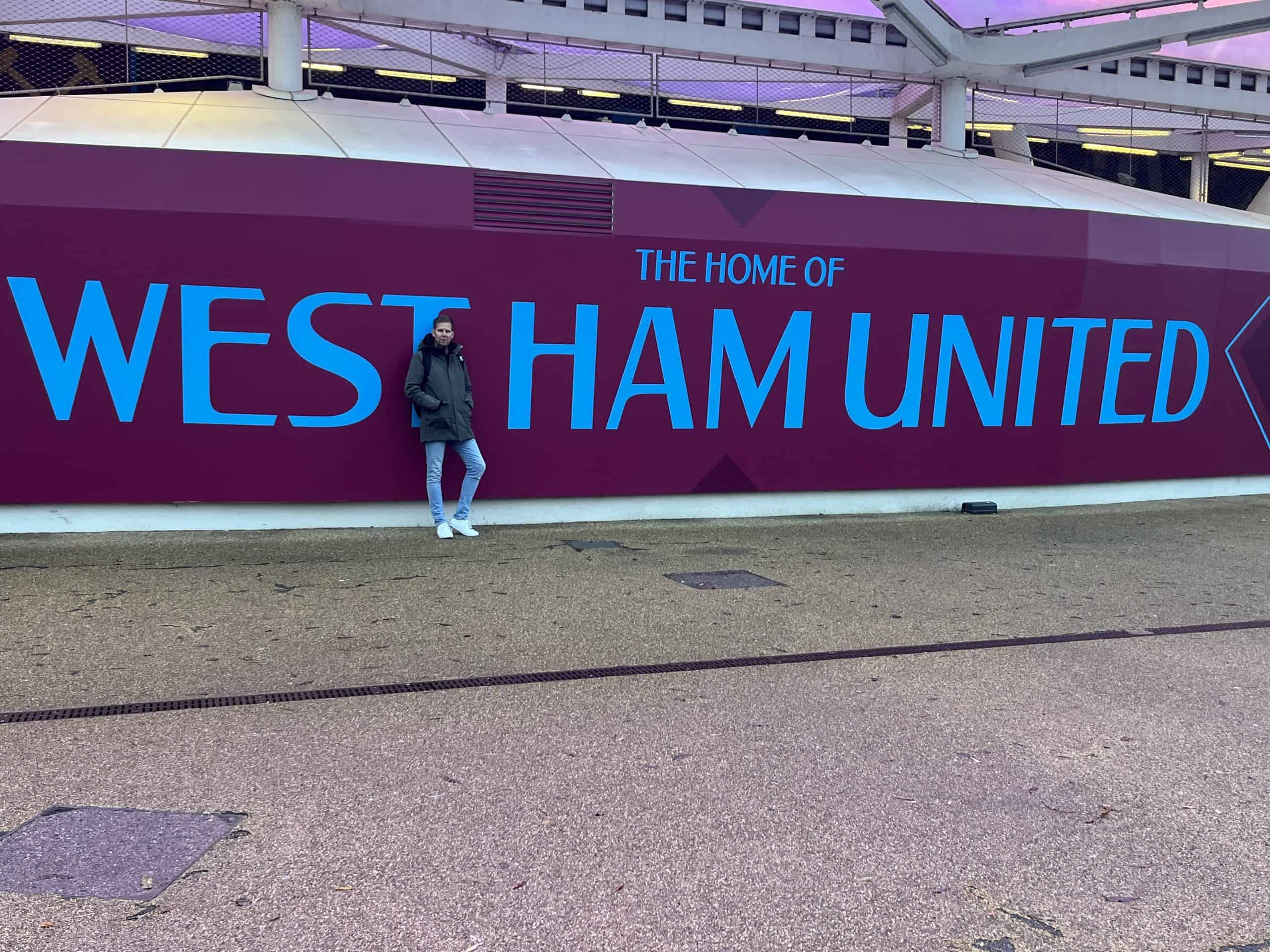 We lopen een (Olympisch) rondje rond het stadion en genieten even van het uitzicht van de stad en de ArcelorMittal Orbit-toren naast het stadion. West Ham United heeft zich dit stadion snel eigen gemaakt en vanaf de buitenkant helemaal aangekleed in het ‘claret and blue’, de clubkleuren van de Hammers. Vergeet niet wat foto’s te maken bij het standbeeld met de Europacup II winnaars uit 1965 (op Wembley) en bewonder de mooie tegelvloer voor de hoofdingang.