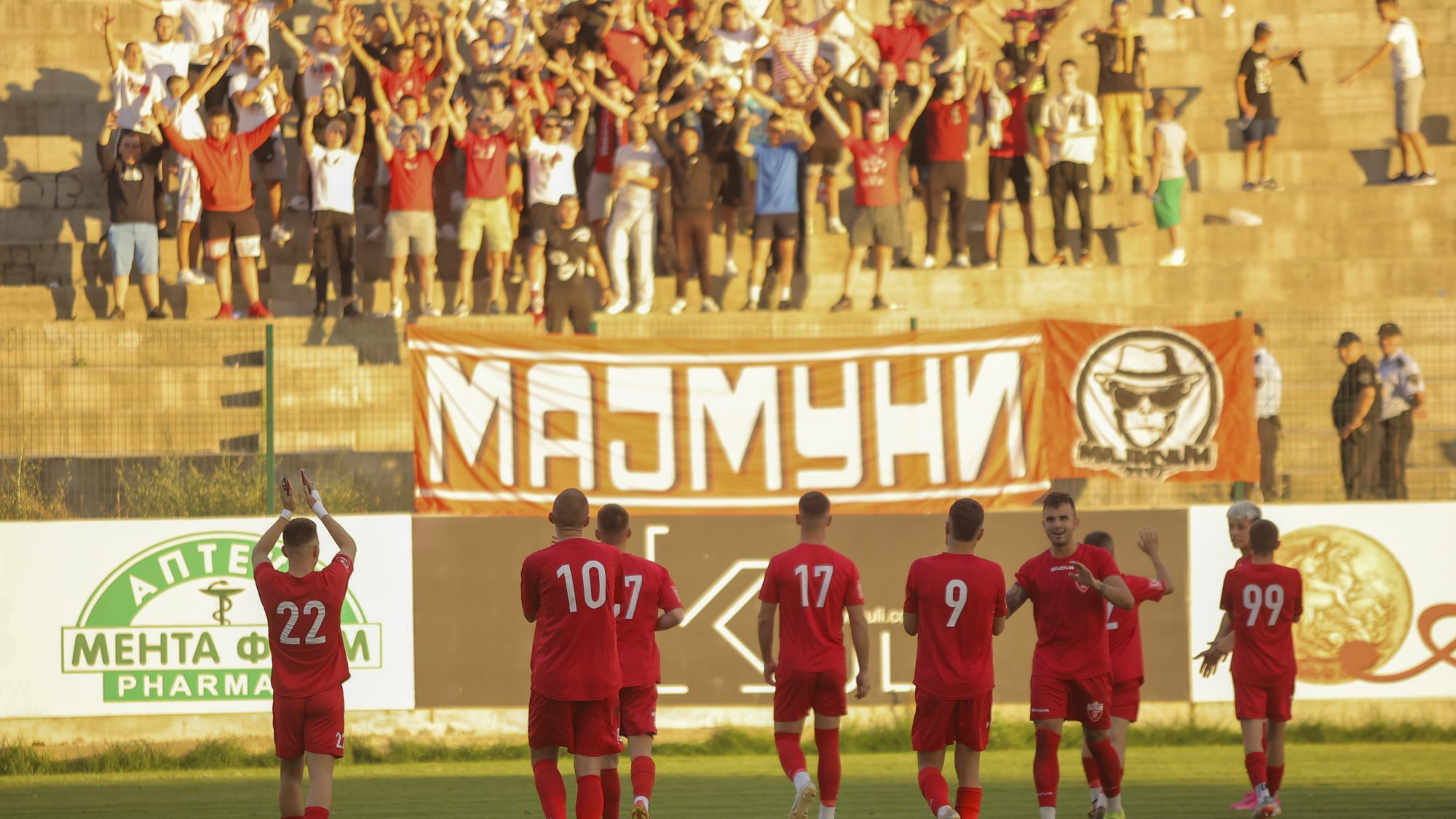 De thuisclub wint met 5-1 en gaat na één speelronde aan kop in de 2. MFL. Er is veel vreugde op de tribunes en de spelers komen aan beide kanten het feest meevieren. We krijgen te horen dat er de laatste tijd meer supportersgroepen in Macedonië actief zijn. Deze wedstrijd in de tweede divisie is daar een mooi voorbeeld van!