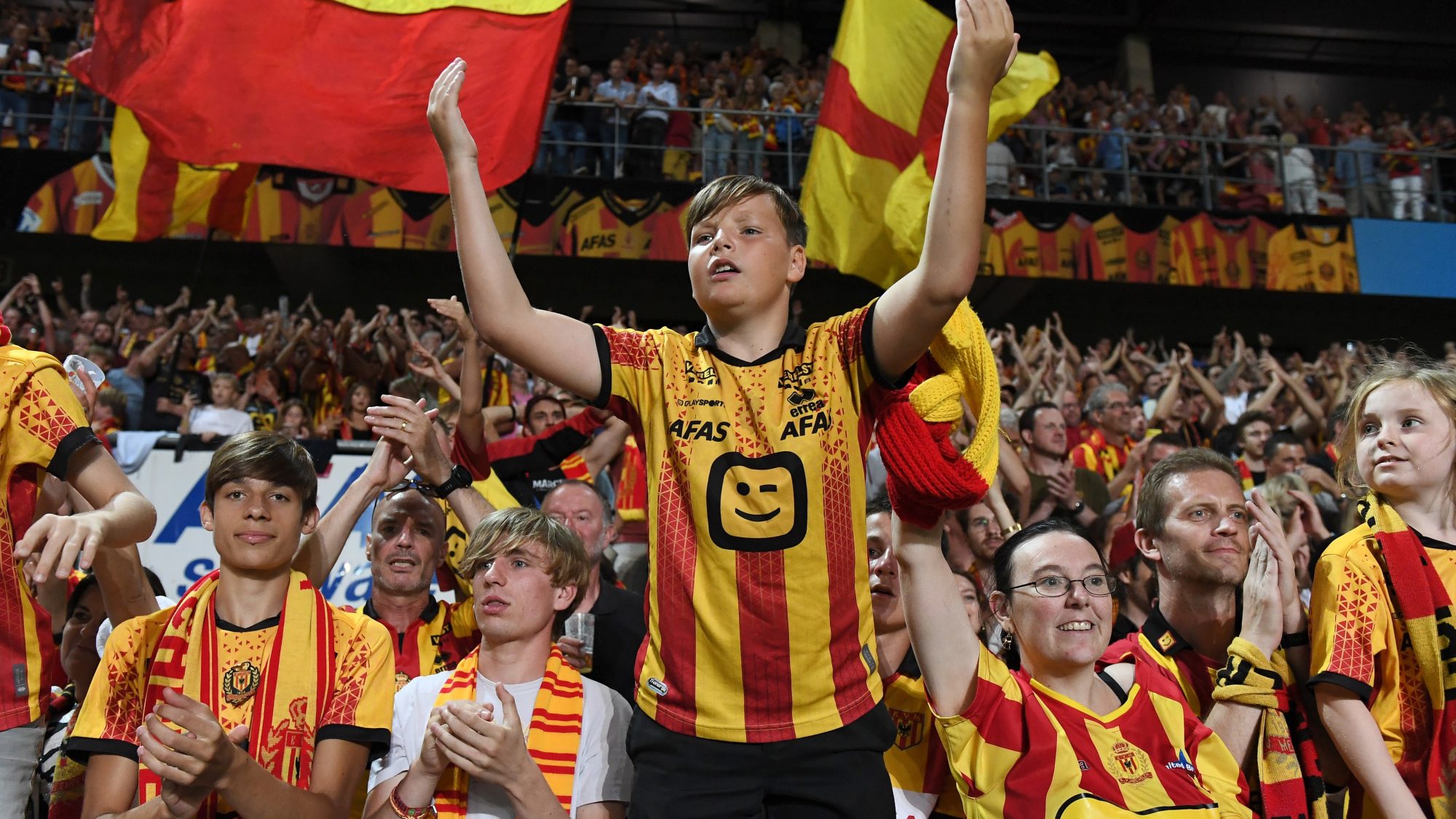 Na de rondleiding lopen we vervolgens naar het nabij gelegen KV Mechelen toe en stiefelen we door nauwe straatjes met piepkleine woningen. Plotseling doemt het AFAS-stadion op achter een kazernemuur. De buitenkant van het stadion is verre van indrukwekkend. Een sfeerloze, grijze betonnen bak maar van binnen een plaatje waar 16.500 fans op twee staantribunes en vier zittribunes met om en om rode en gele stoeltjes een plekje kunnen vinden. Het is om 20.30 uur nog verstikkend warm en Union komt op bezoek, de trotse koploper met 9 uit 3. KV Mechelen heeft het nog niet helemaal. Een schamel puntje uit drie duels en wat zorgen baart: slechts één goal gescoord.