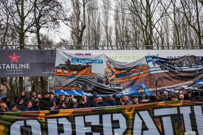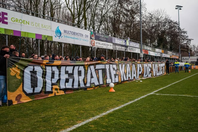 Bij de opkomst is er in het uitvak een grote sfeeractie te zien. Dit spandoek is weer een reactie op een actie van Rijnsburgse Boys eerder dit seizoen voor de bekerwedstrijd tegen NEC, waarbij de rivier de Vliet centraal stond. De mannen van Quick Boys pakken dit op met de actie ‘kaap de Vliet’. Met trainer Adrie Poldervaart (perfecte achternaam ook voor dit doel) op de jetski zijn de blauw-witten gekomen om Rijnsburg en haar rivier volledig over te nemen. Ook is er nog een subtiele verwijzing te zien naar het kampioenschap van vorig jaar.