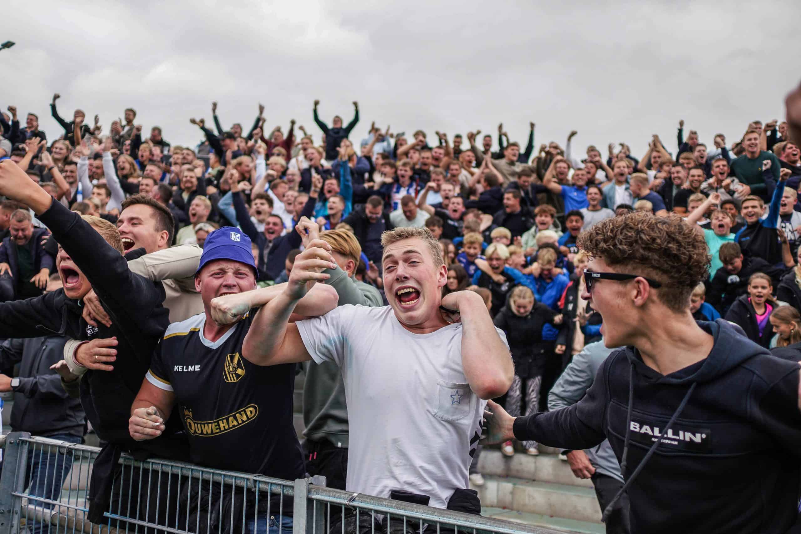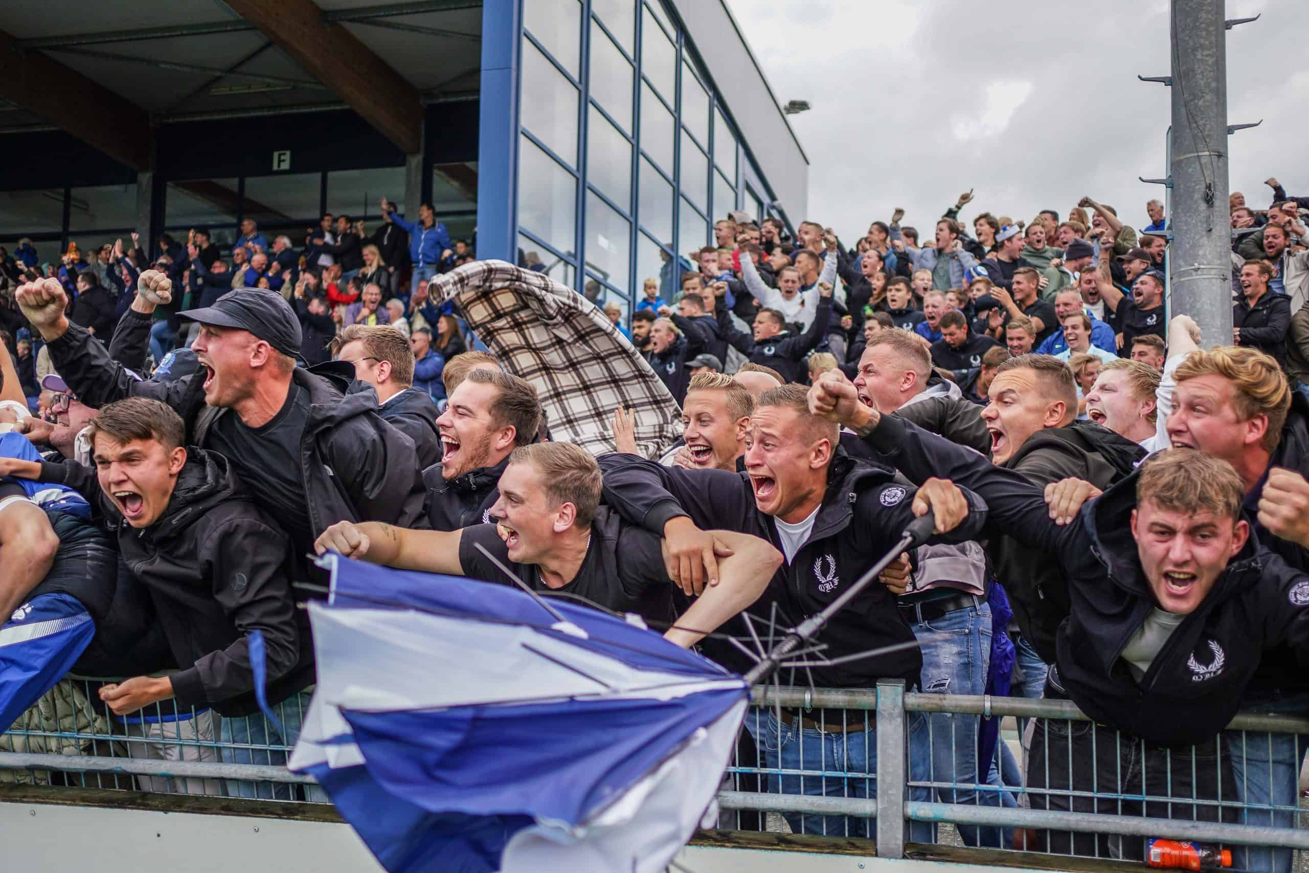 Quick Boys heeft afgerekend met het derbytrauma en voor even kleurt het dorp blauw. Ondanks de waarschuwing op het hekwerk en de aanwezige stewards bestormt de blauwwitte aanhang het veld.