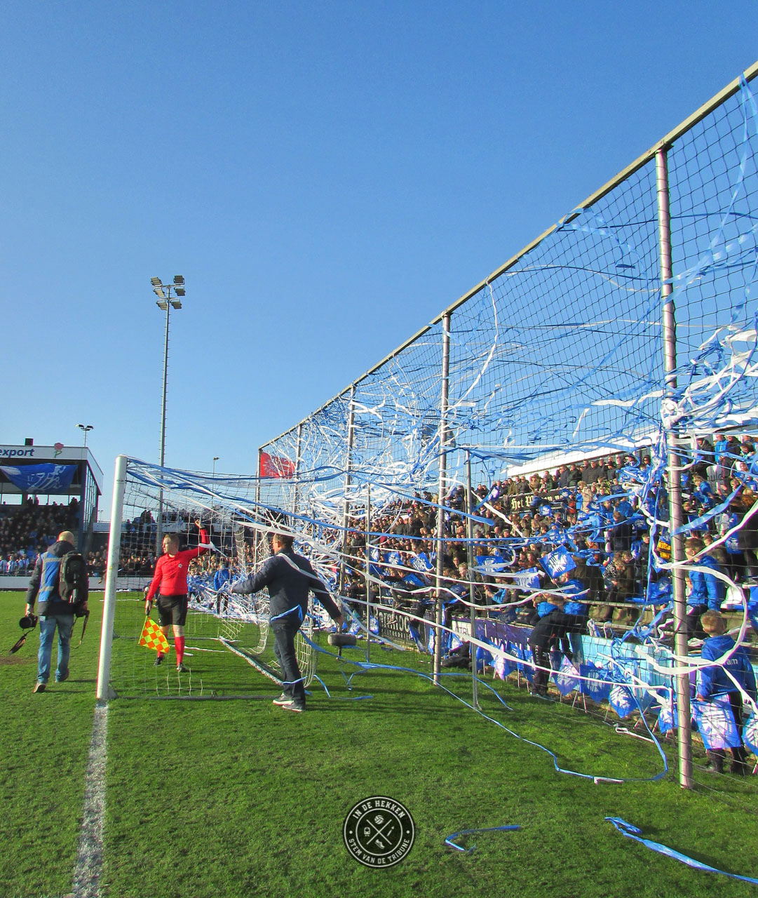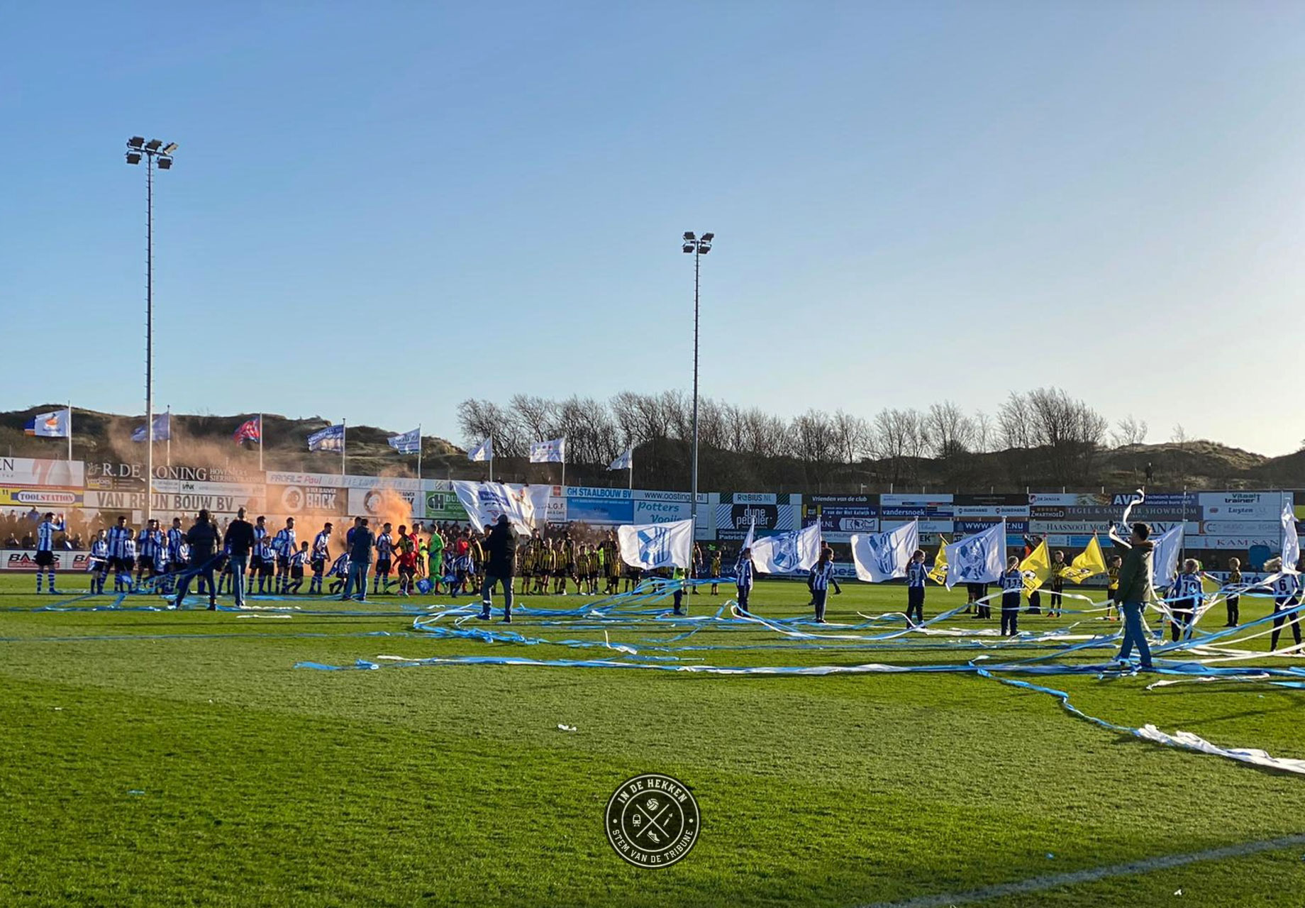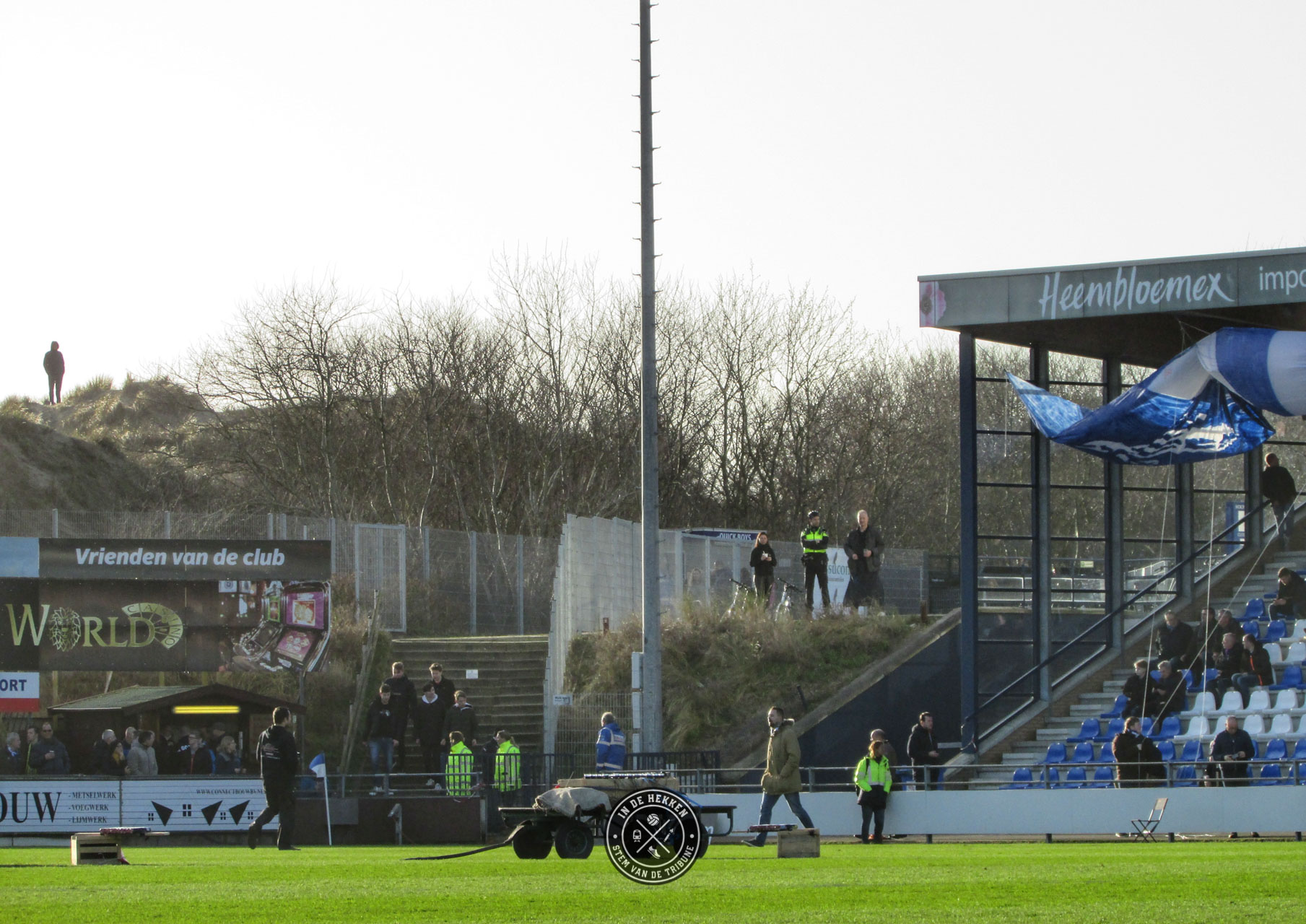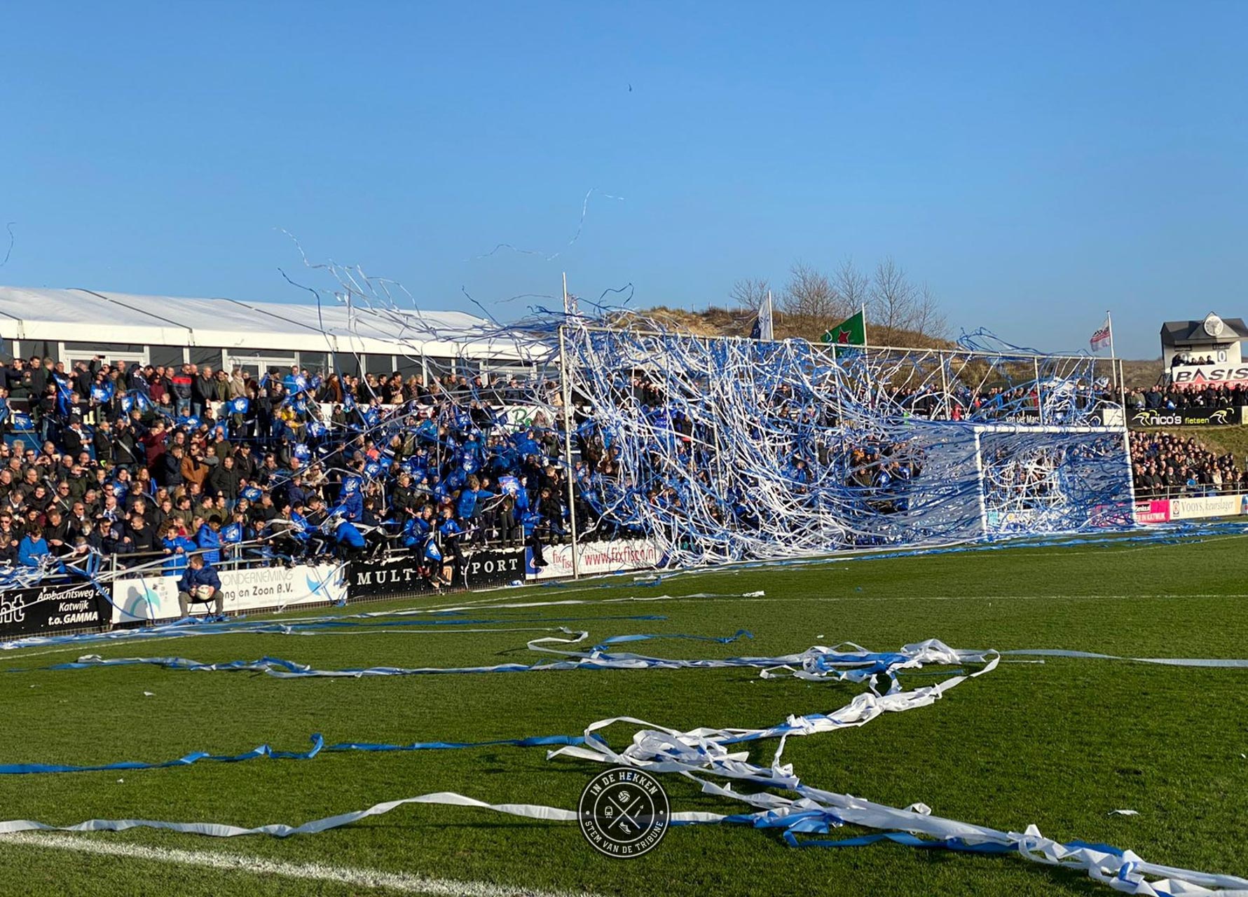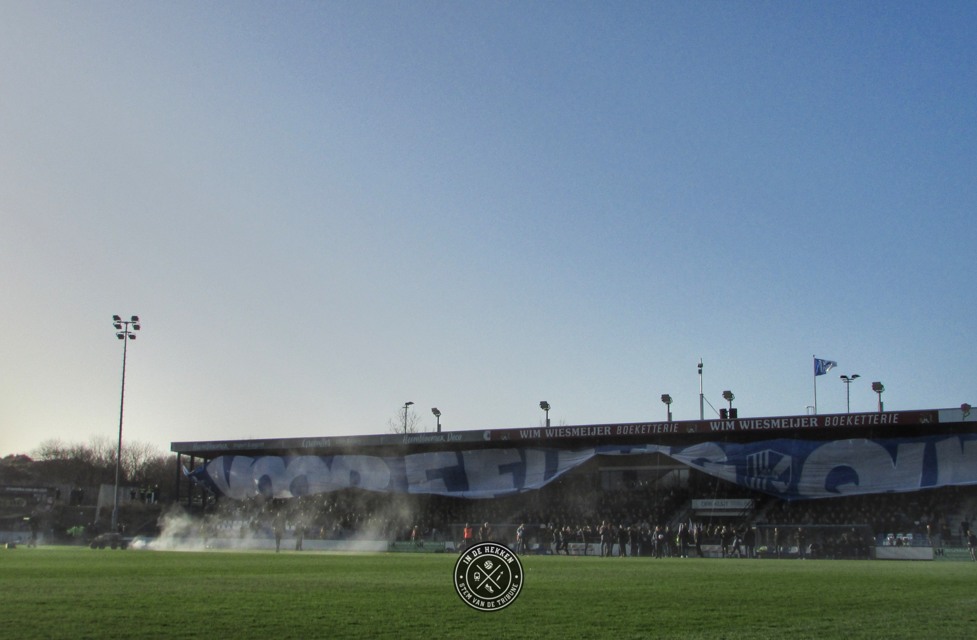 Tijd dus om op 1 februari 2020 een uitgebreid feestje te vieren. En wij mochten erbij zijn. Ondanks dat het vuurwerk rond middernacht geen doorgang kon vinden vanwege de harde wind, mocht dat de pret niet drukken. Het 100 jarig bestaan van de club werd op een prachtige wijze groots gevierd. Voorafgaand aan de wedstrijd tegen Rijnsburgse Boys een doek met “Voor Eeuwig Quick Boys” over de hele lengte van de tribune. Aangevuld met de nodige vuurwerk op het veld en naast het veld een prima startschot voor de volgende 100 jaar in het bestaan van de blauw-witten.