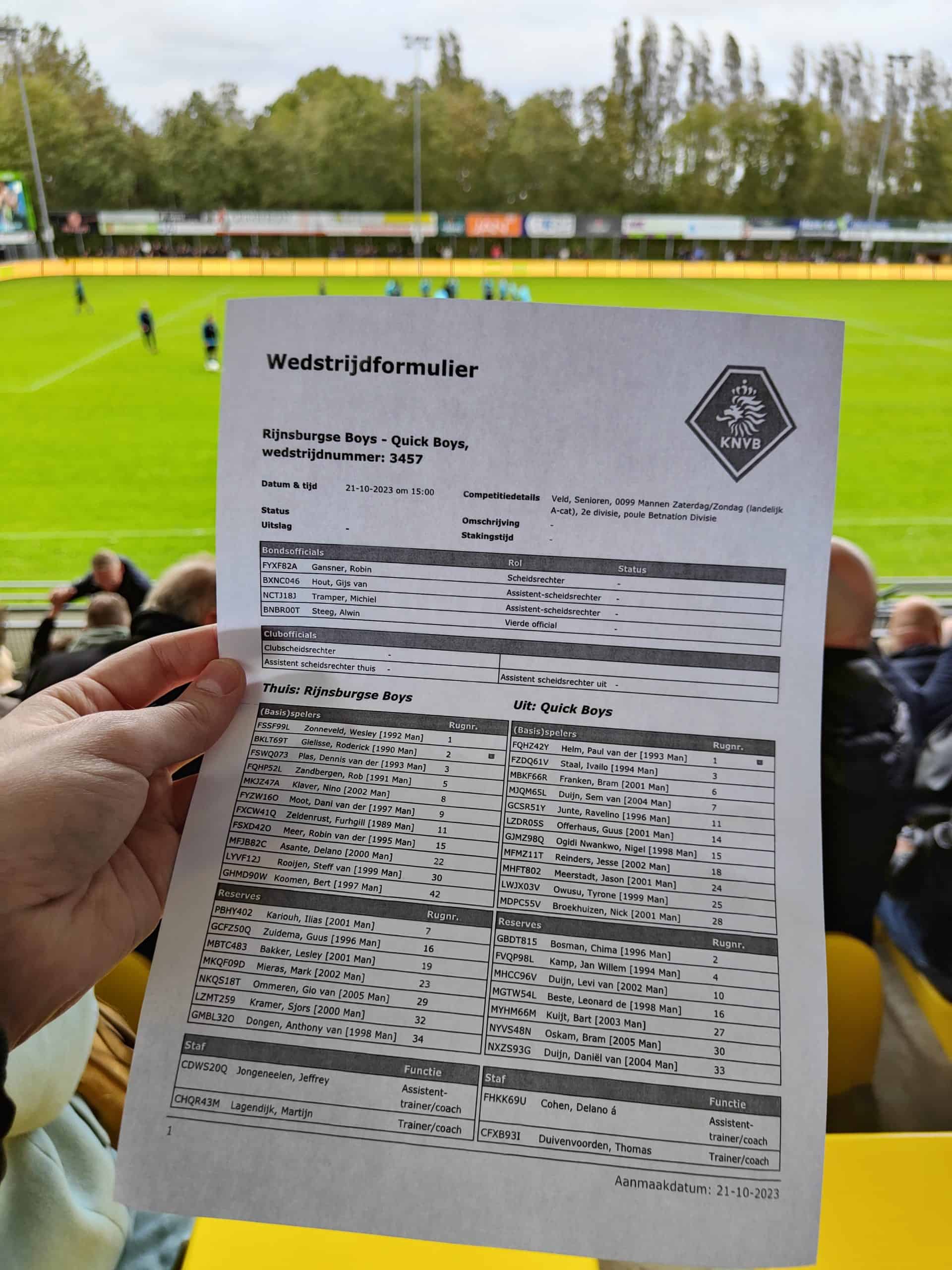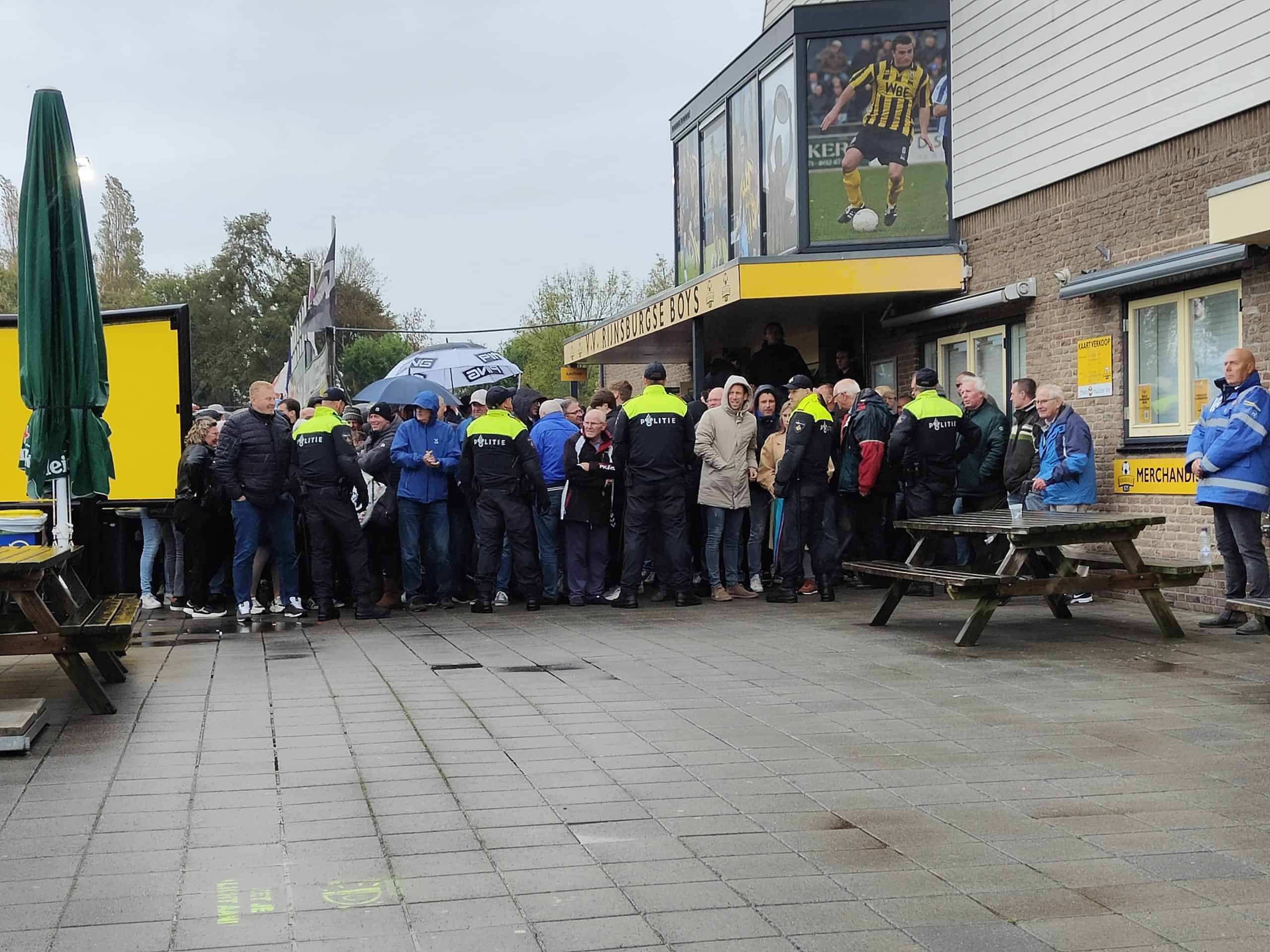 De wedstrijd eindigt daarmee op 1-1. Rijnsburg is daar het meest blij mee gezien de stand op de ranglijst. Politie is vervolgens gearriveerd bij de Quick Boys en omsingelt de boel zodat het niet tot een confrontatie komt bij de ingang. Ze worden via de achterkant van het sportpark naar buiten geleid. Hoe kan het dat het uitsupportersverbod zo simpel is omzeild? Connecties met sponsors en een online verkoop waar je gewoon een kaartje kon halen?