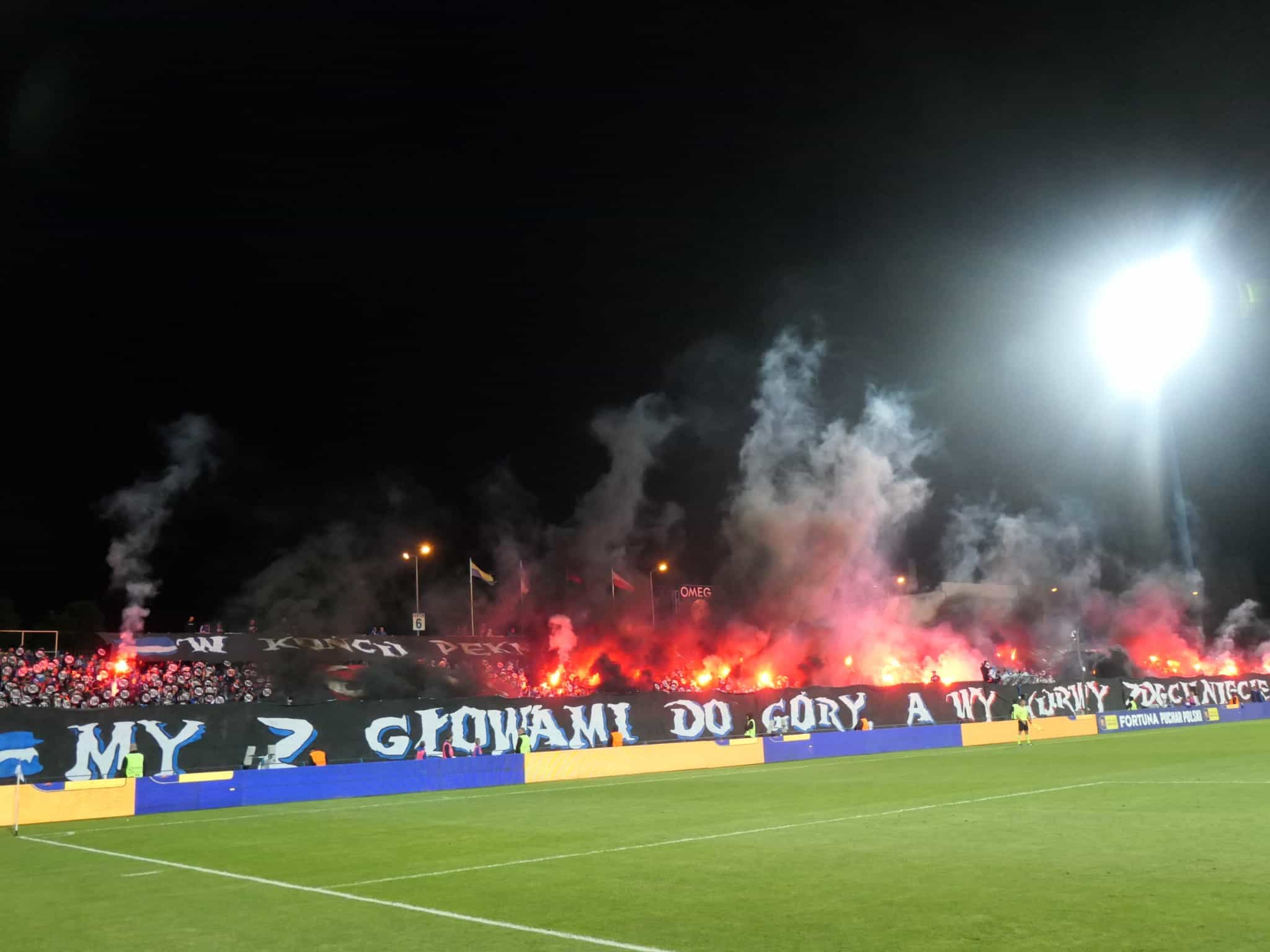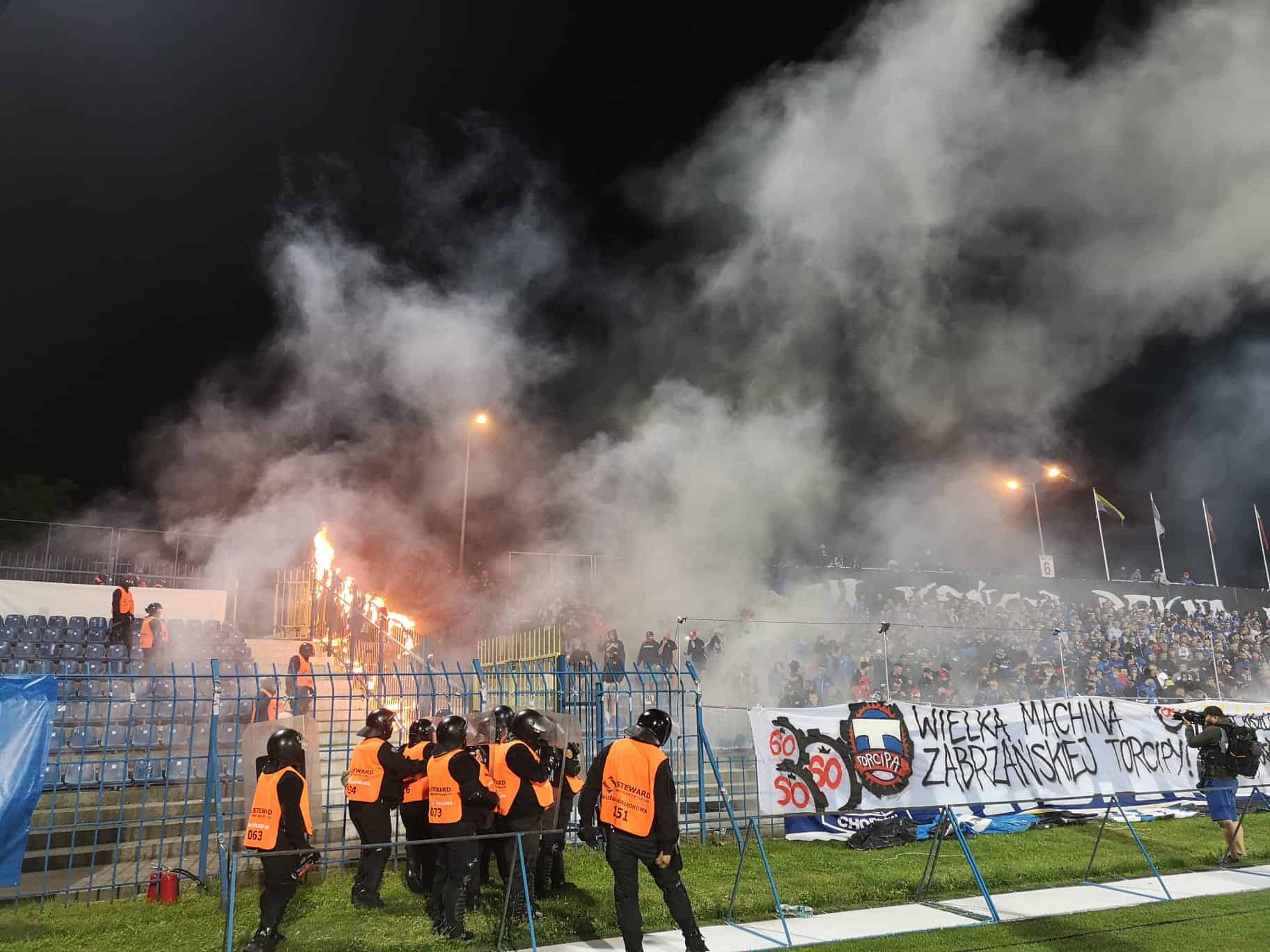 De tranen springen langzaamaan in mijn ogen. In de lucht hangt een mix tussen verbrand textiel en vers traangas. Zojuist hebben de supporters gestolen materiaal verbrand om vervolgens een flinke dosis traangas te ontvangen van de politie. Het is derbytijd. Na meer dan vijf jaar staat de derby van Silesië tussen de twee voormalig grootste clubs van het land Ruch Chorzow en Gornik Zabrze weer op het programma. Vandaag gaan alle remmen los!