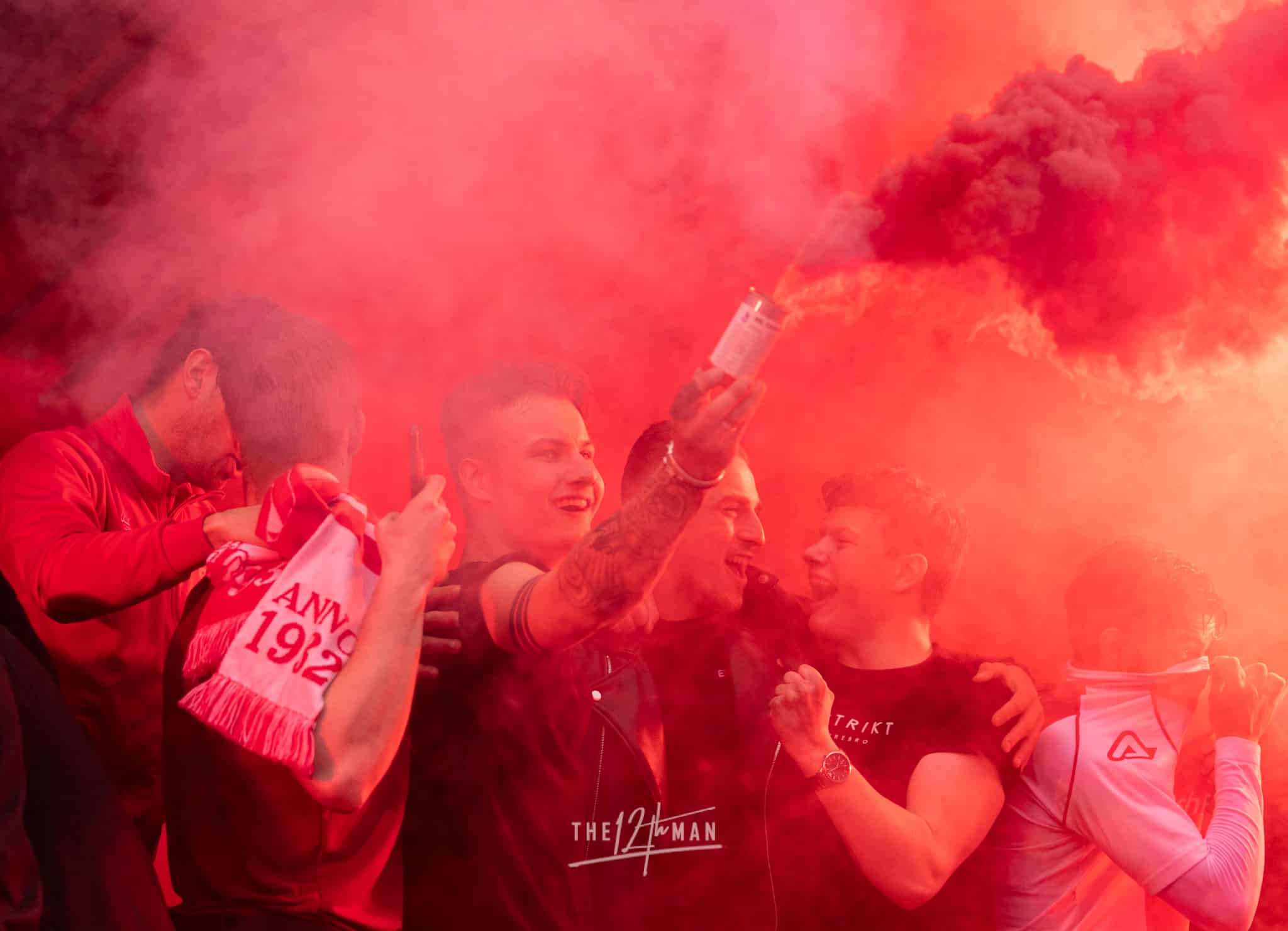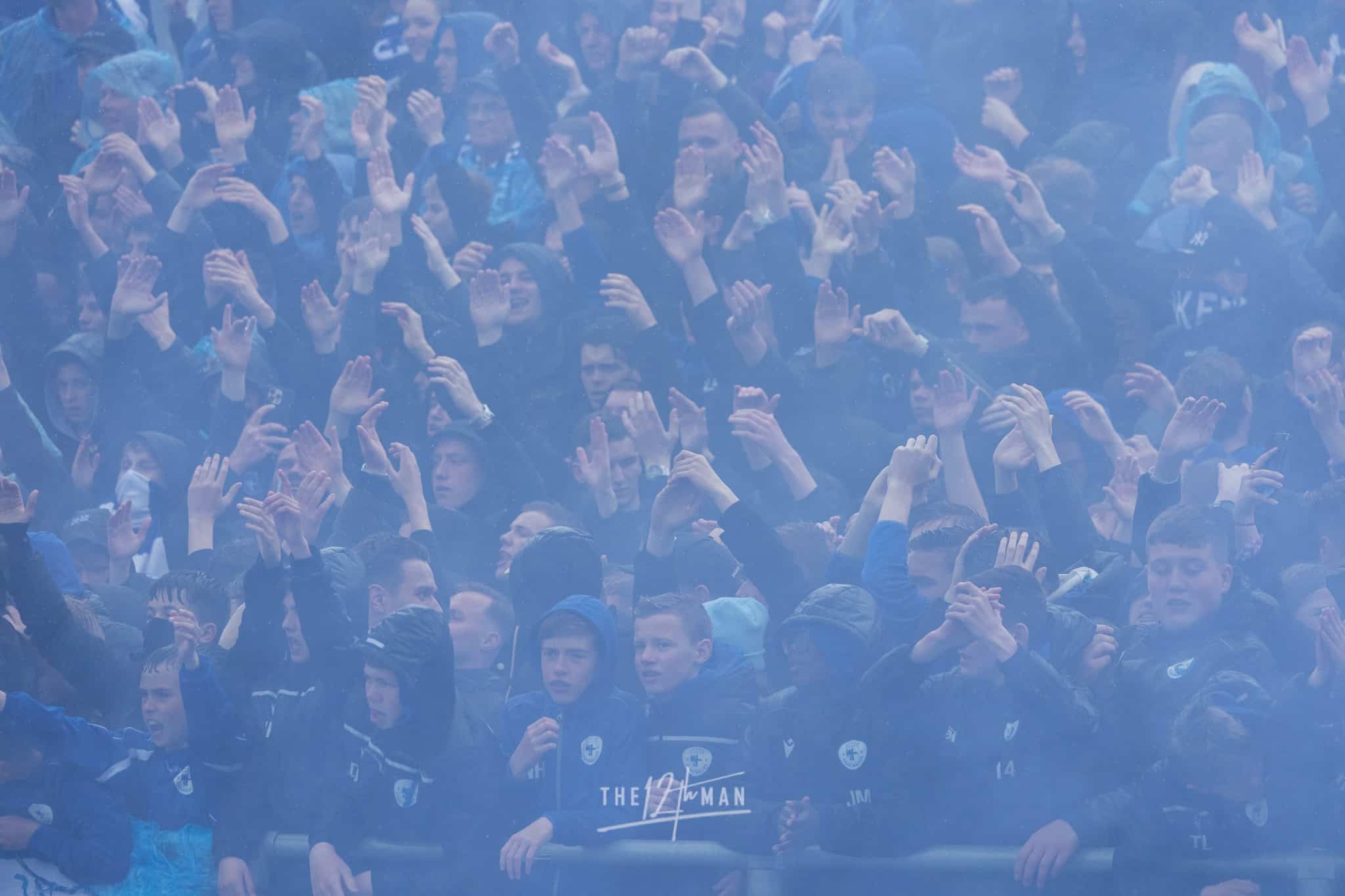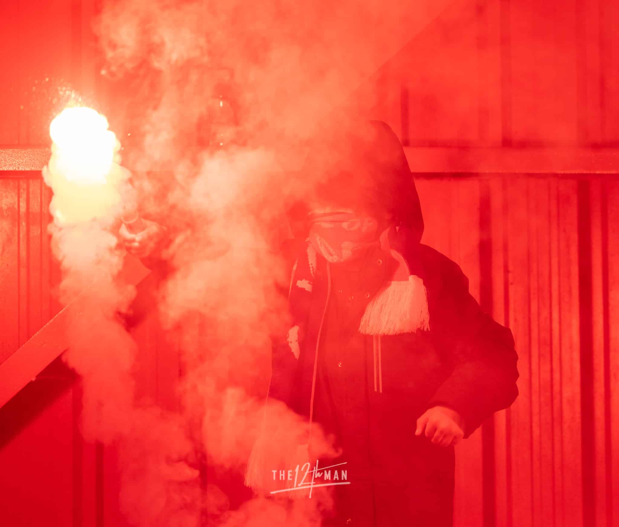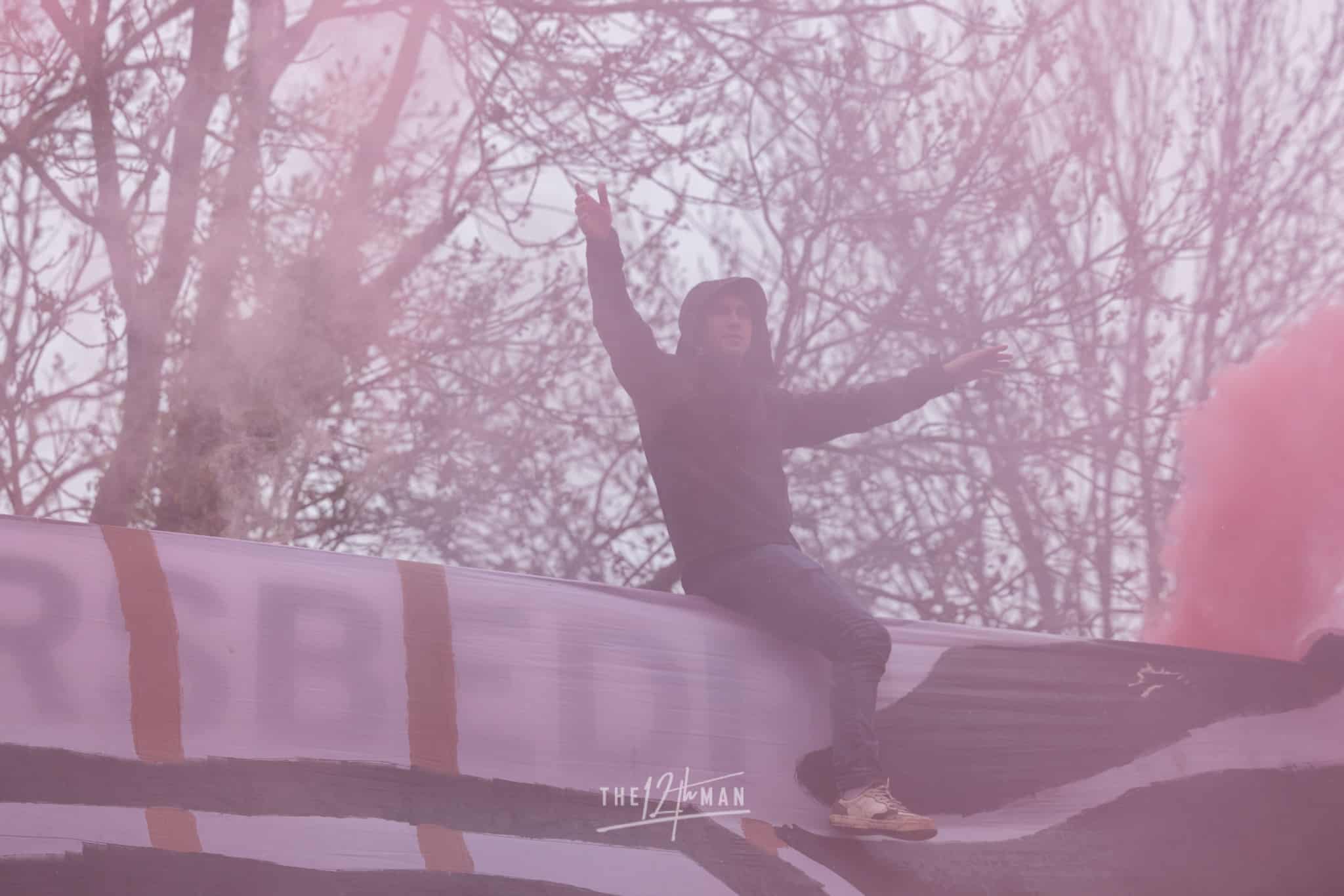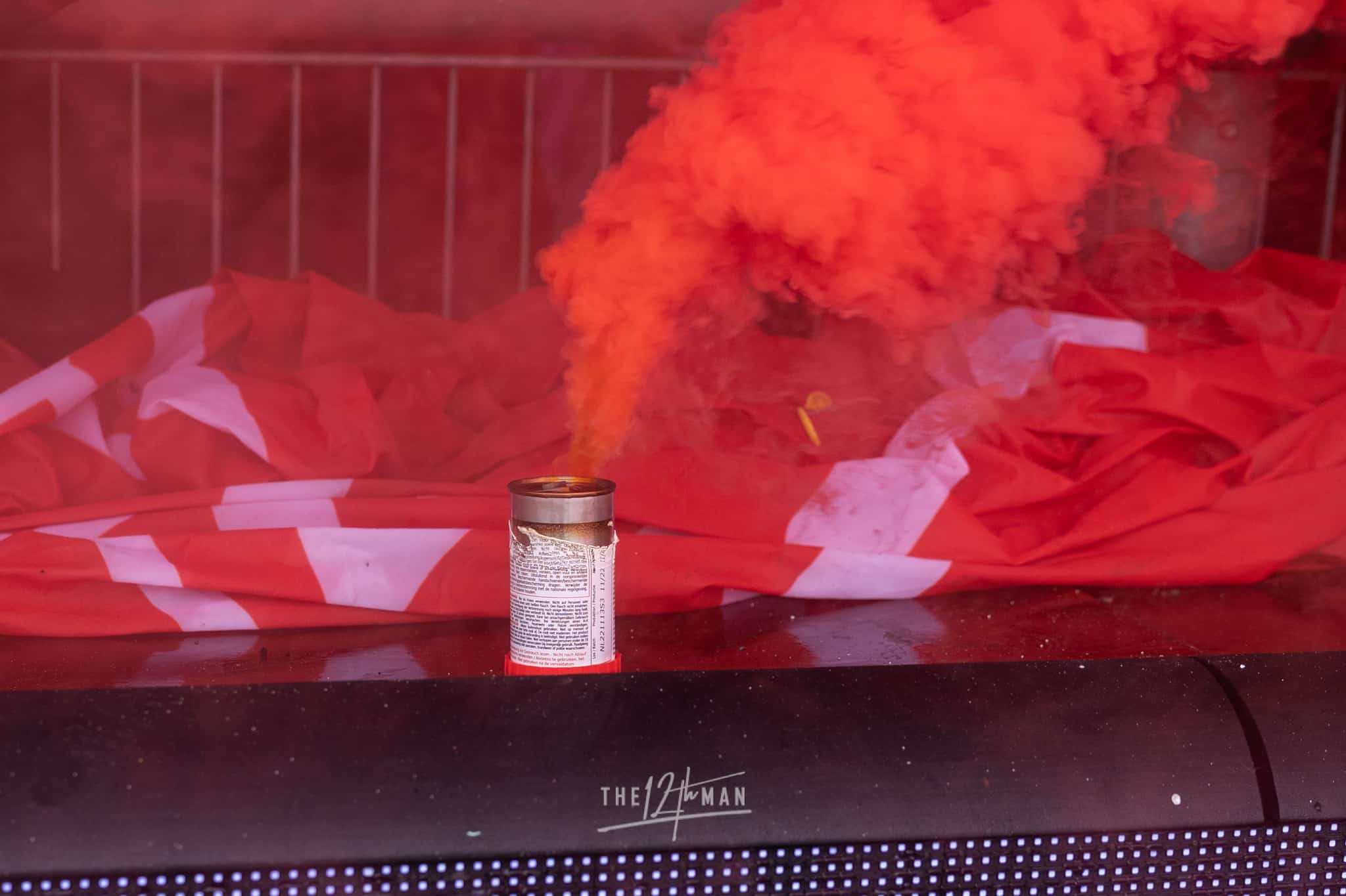 Aan de kant van de Rooien gaan vervolgens ook nog de nodige rookpotten aan. Zowel op de tribune als op het dak van de tribune. Het laatste woord is weer aan de Blauwen die wat vuurwerkpotten met blauwe rook linten afsteken achter de Midden-Noord tribune (supporters Vogels) en achter het doel. De toon is gezet. Een heerlijk begin van deze Spakenburg Derby. Als ze dit doorzetten, krijgen we een fantastische middag.
