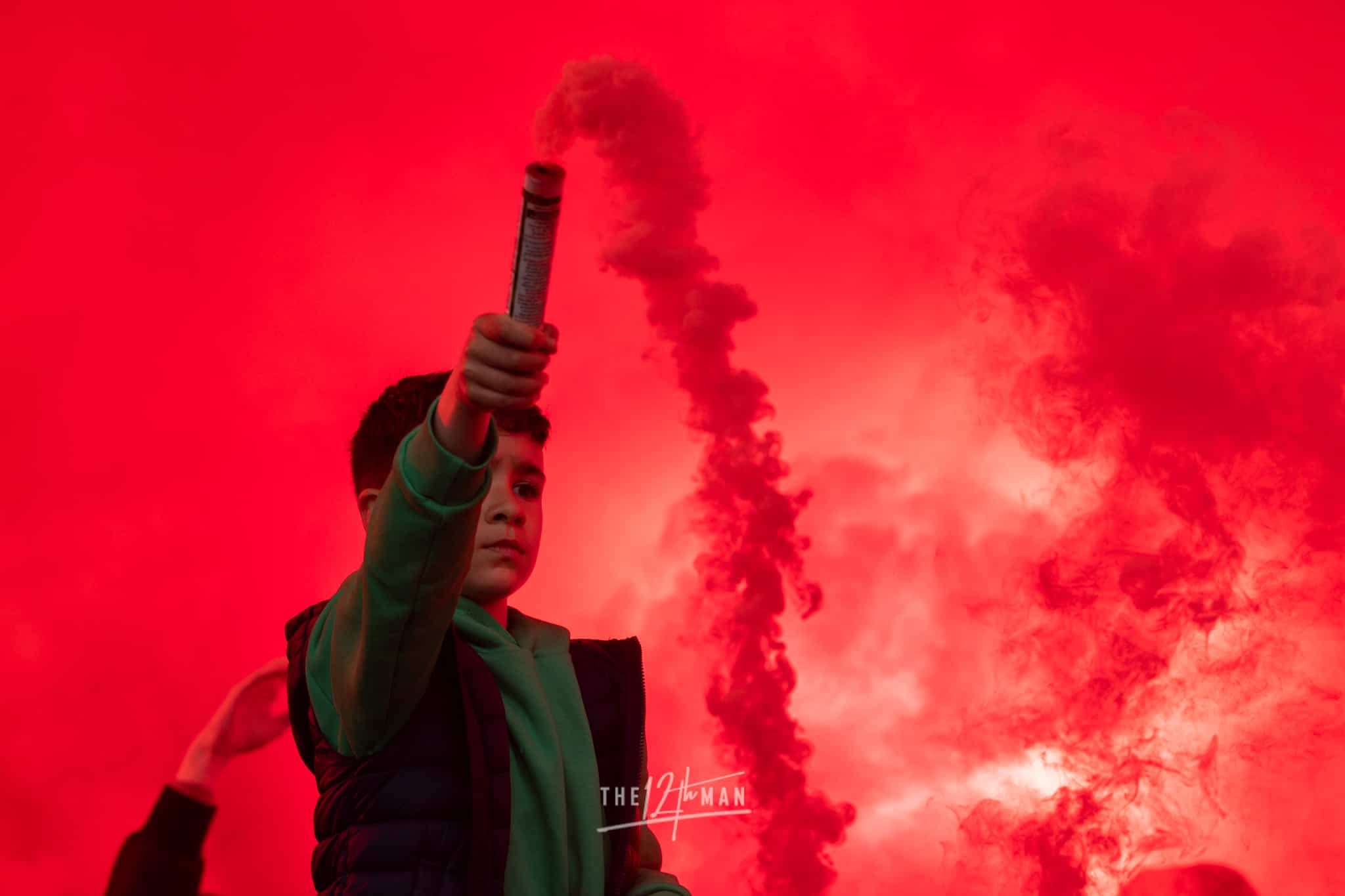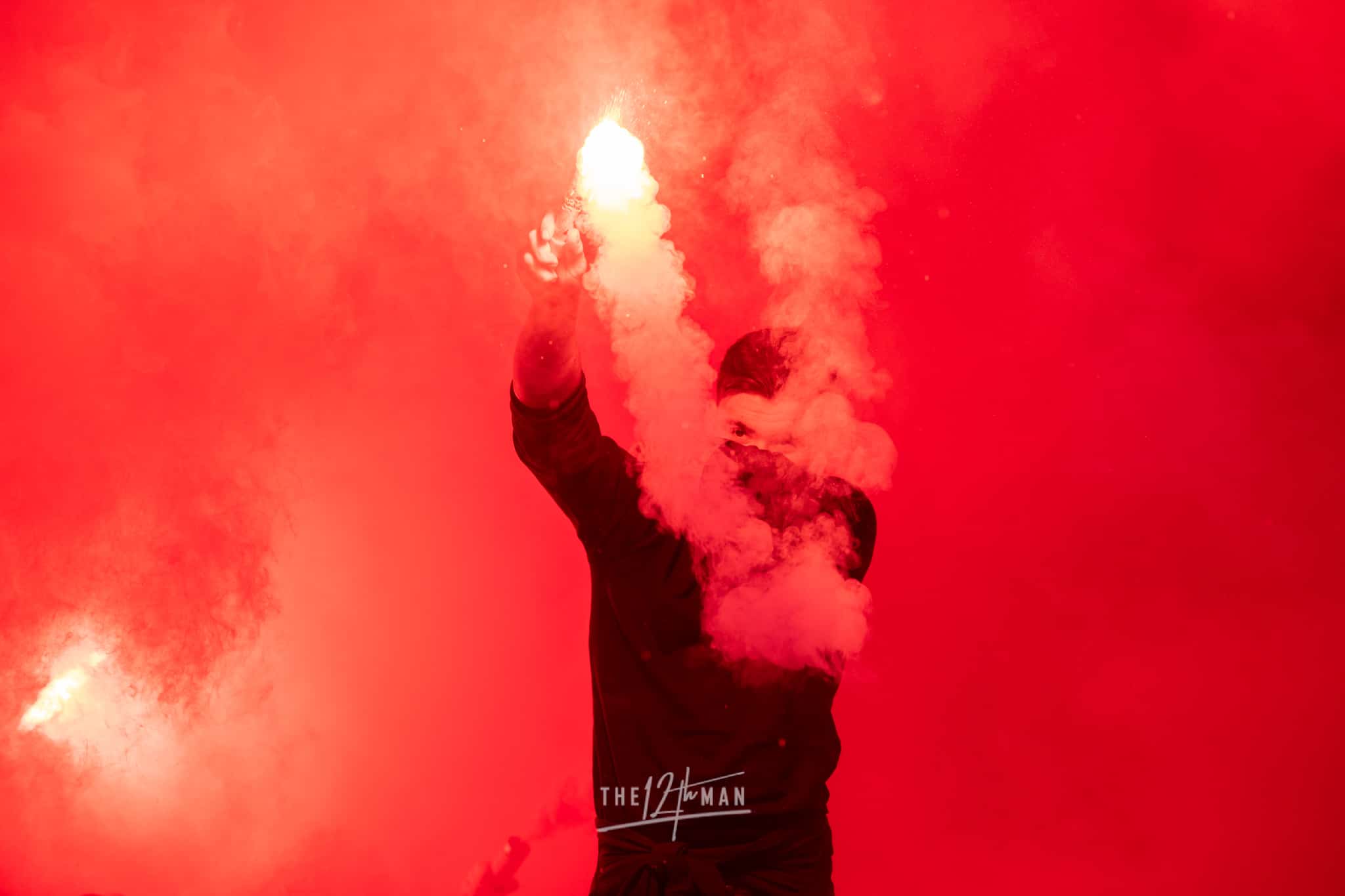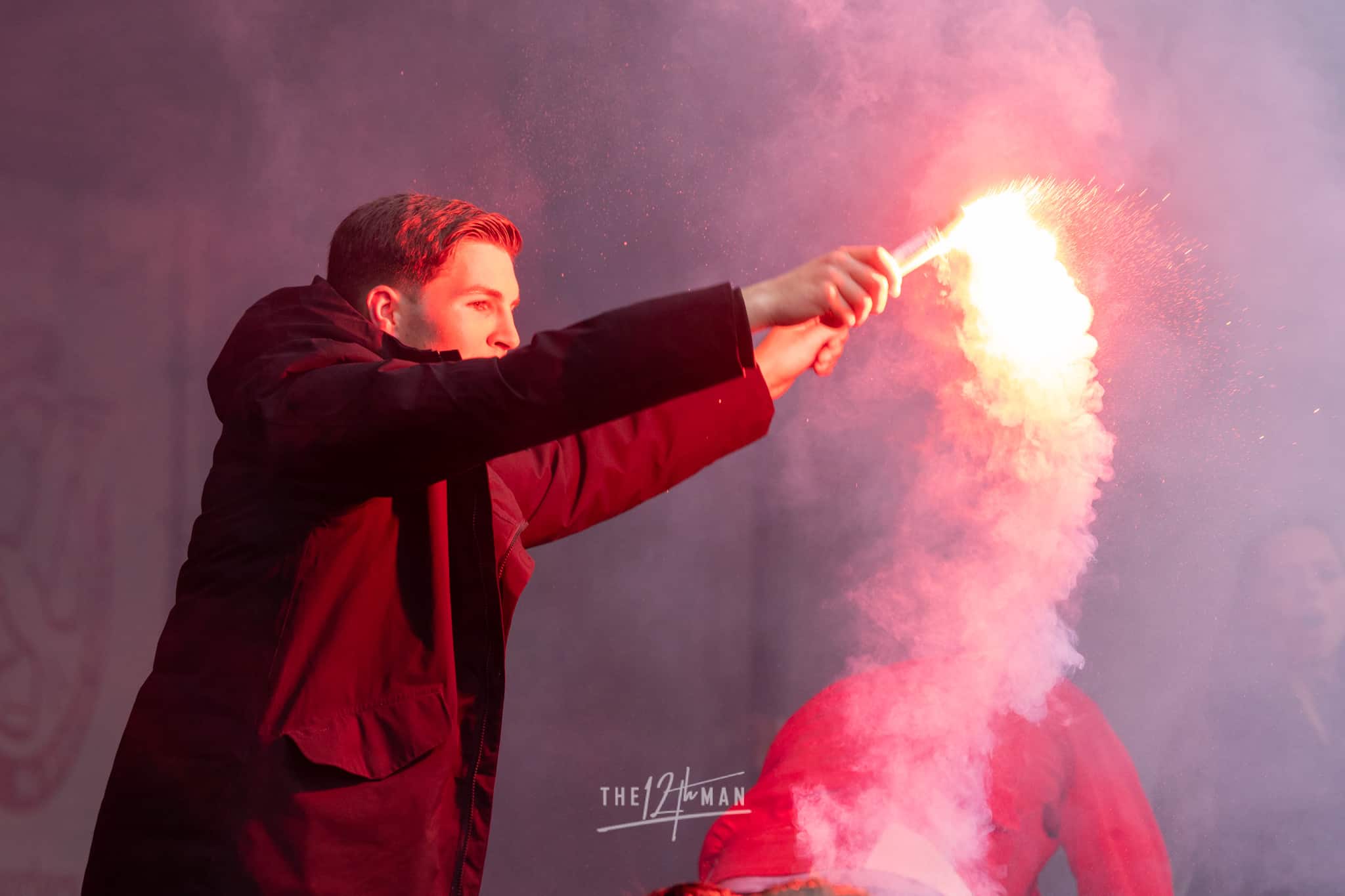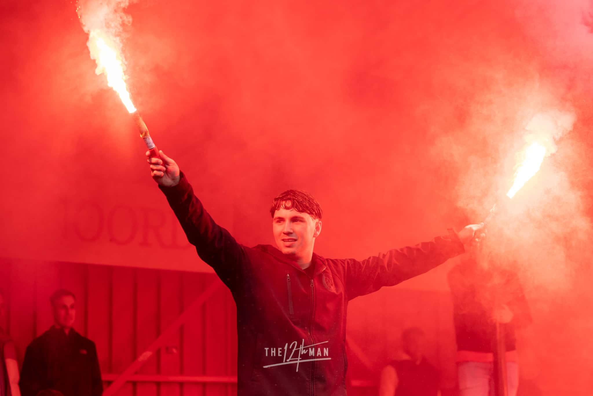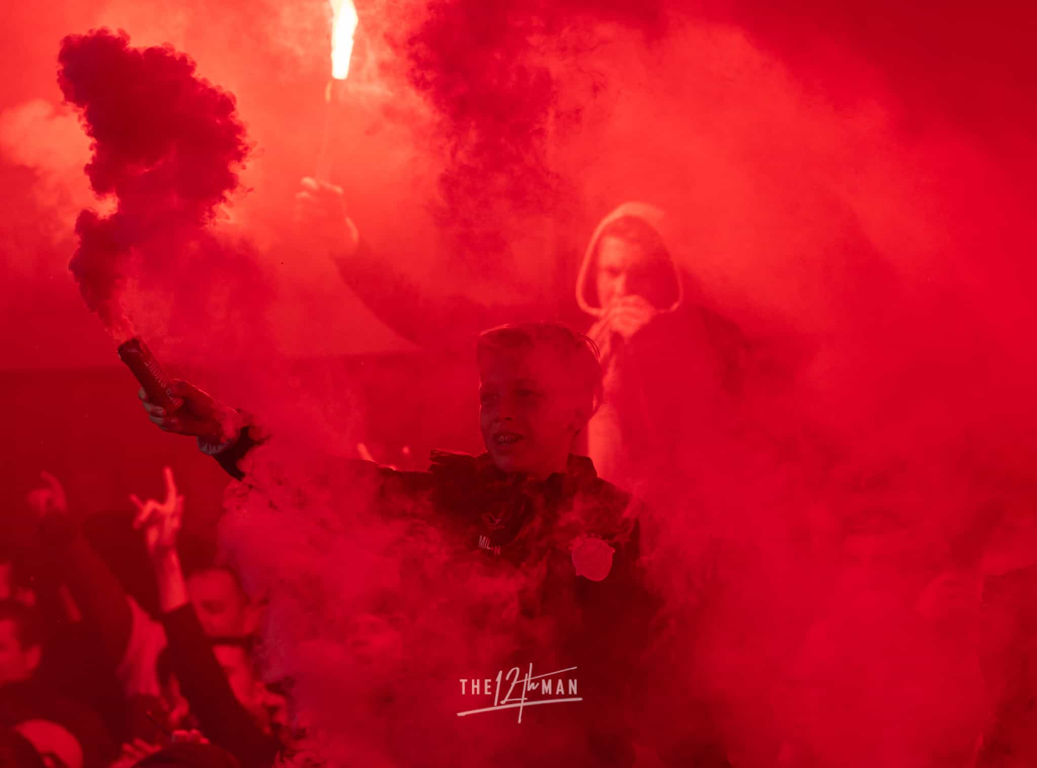 Aan de kant van de Rooien gaan vervolgens ook nog de nodige rookpotten aan. Zowel op de tribune als op het dak van de tribune. Het laatste woord is weer aan de Blauwen die wat vuurwerkpotten met blauwe rook linten afsteken achter de Midden-Noord tribune (supporters Vogels) en achter het doel. De toon is gezet. Een heerlijk begin van deze Spakenburg Derby. Als ze dit doorzetten, krijgen we een fantastische middag.