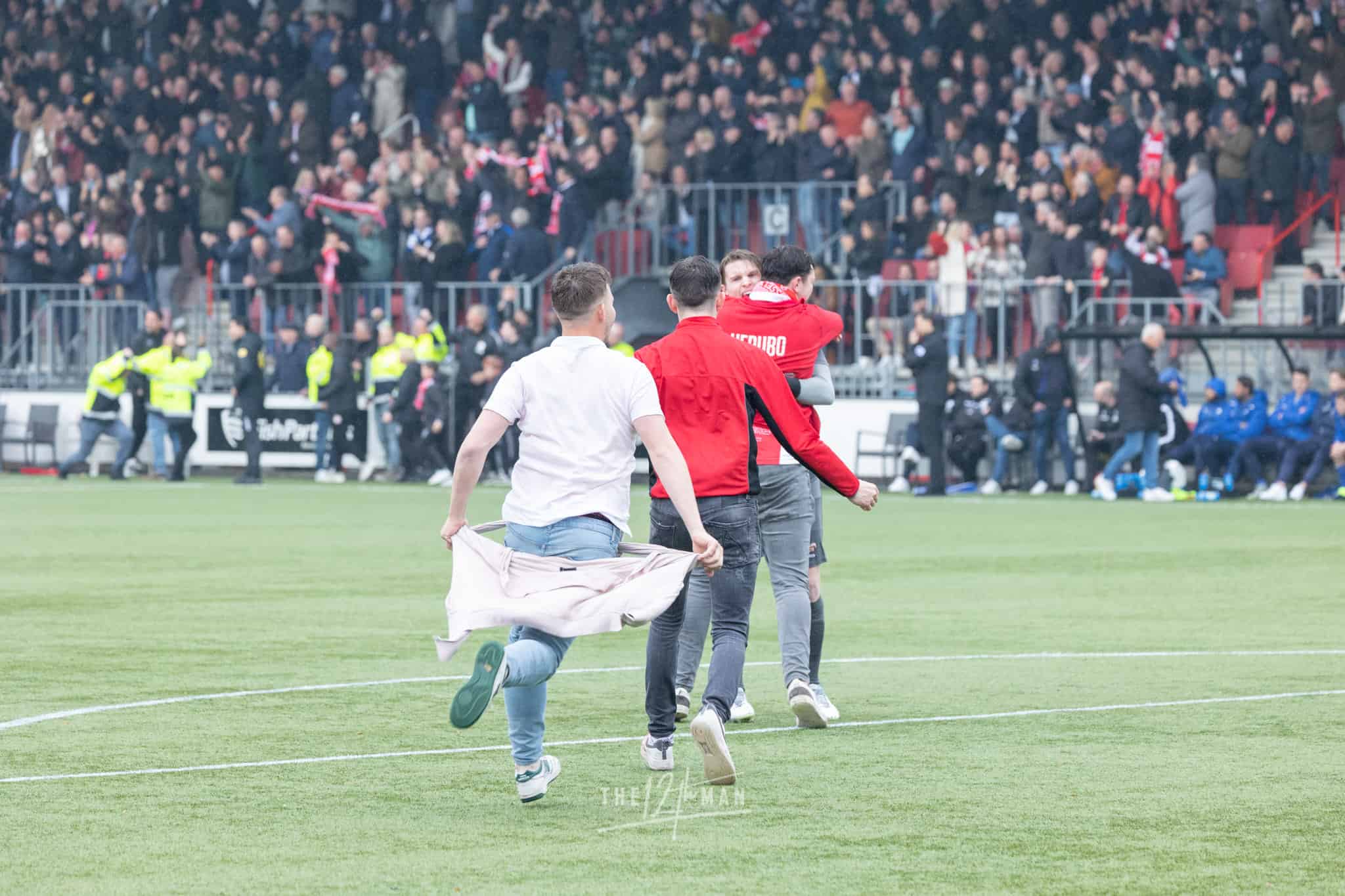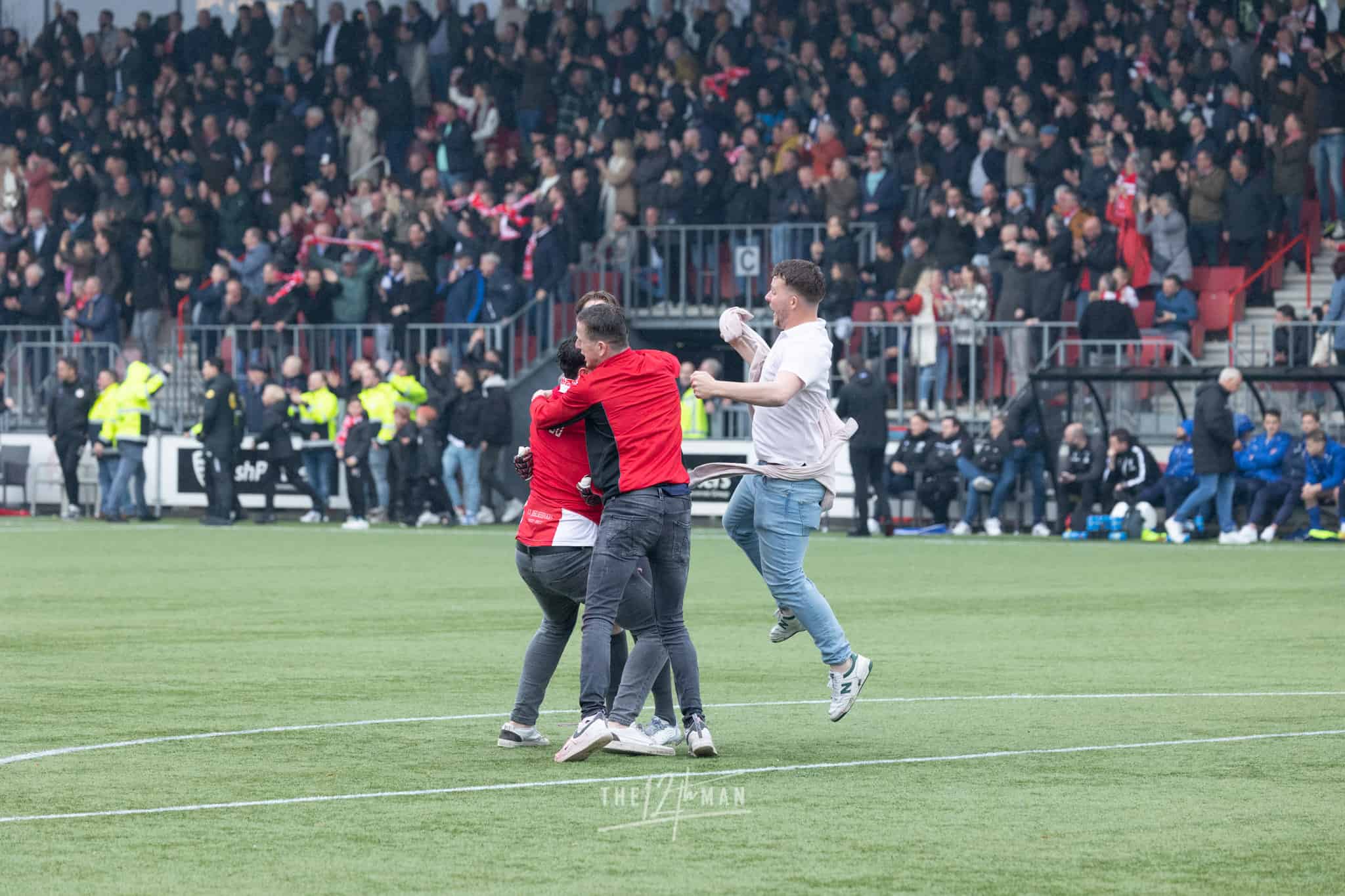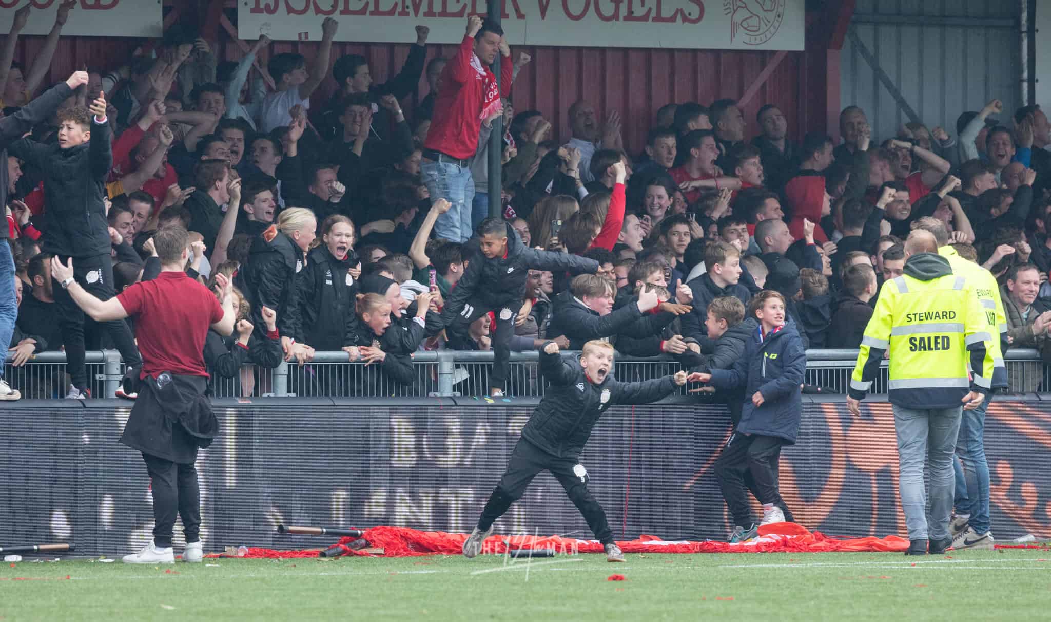 Vandaag wordt het feest nog net iets groter als El Haddouti zijn sterke invalbeurt bekroond met nog een doelpunt in blessuretijd. Nu zijn de supporters van IJsselmeervogels niet meer te houden. Een ware pitch invasion barst los. Van alle tribunes vliegen de supporters het veld op. Voor de scheidsrechter genoeg reden om maar direct af te fluiten, ook al stond er nog een minuut blessuretijd op de klok.