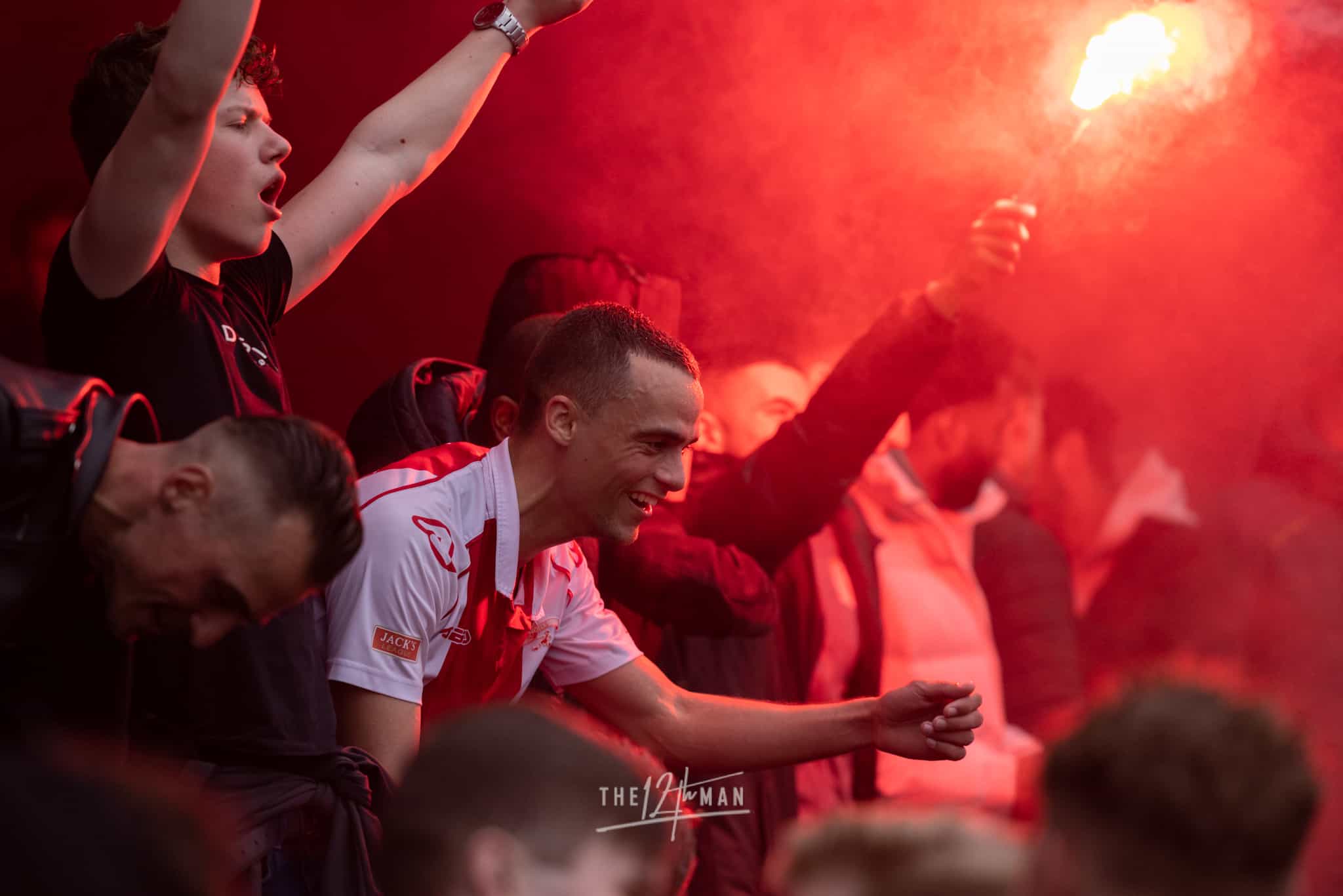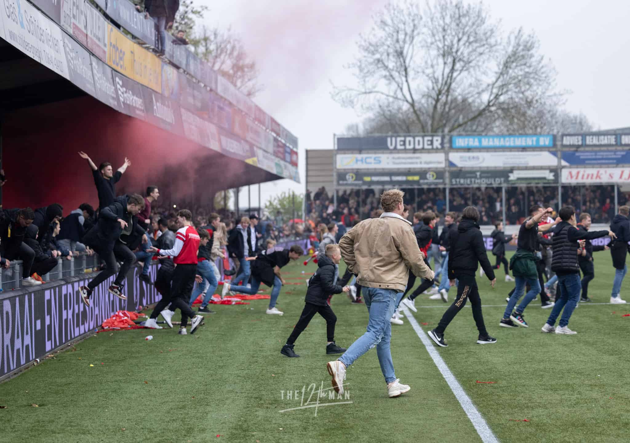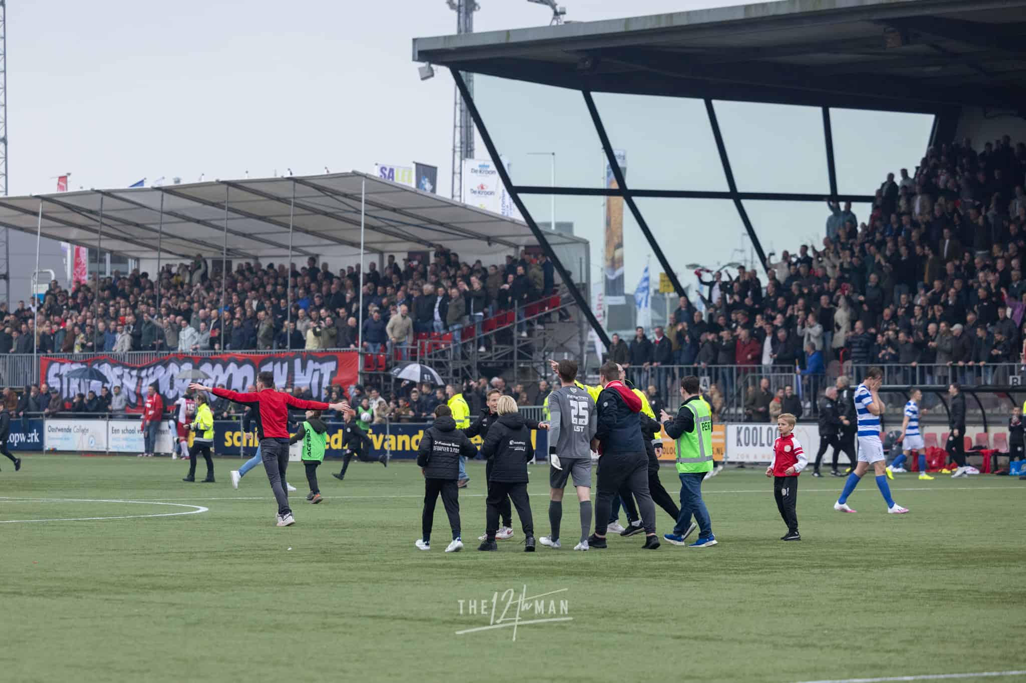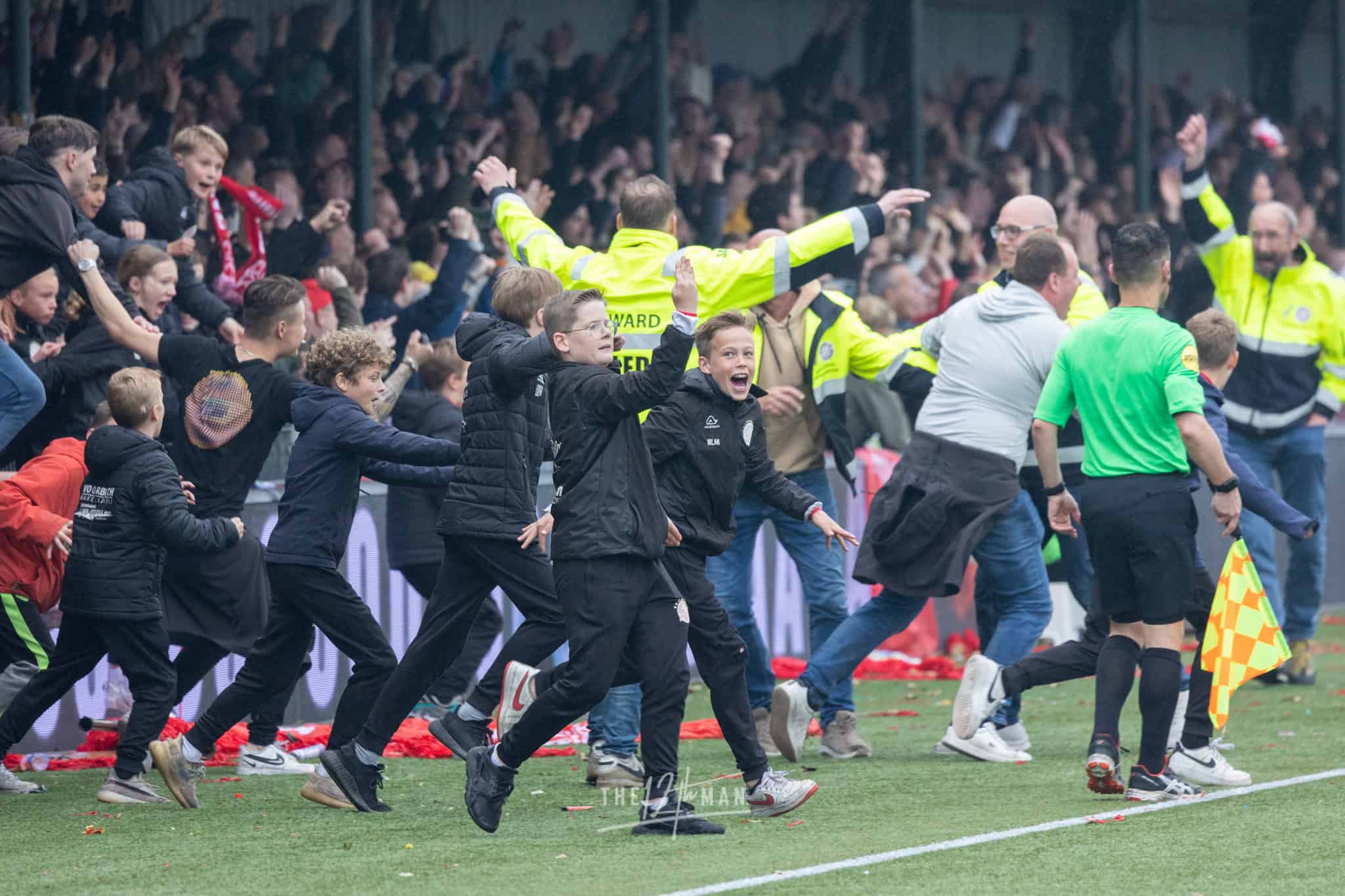 Vandaag wordt het feest nog net iets groter als El Haddouti zijn sterke invalbeurt bekroond met nog een doelpunt in blessuretijd. Nu zijn de supporters van IJsselmeervogels niet meer te houden. Een ware pitch invasion barst los. Van alle tribunes vliegen de supporters het veld op. Voor de scheidsrechter genoeg reden om maar direct af te fluiten, ook al stond er nog een minuut blessuretijd op de klok.