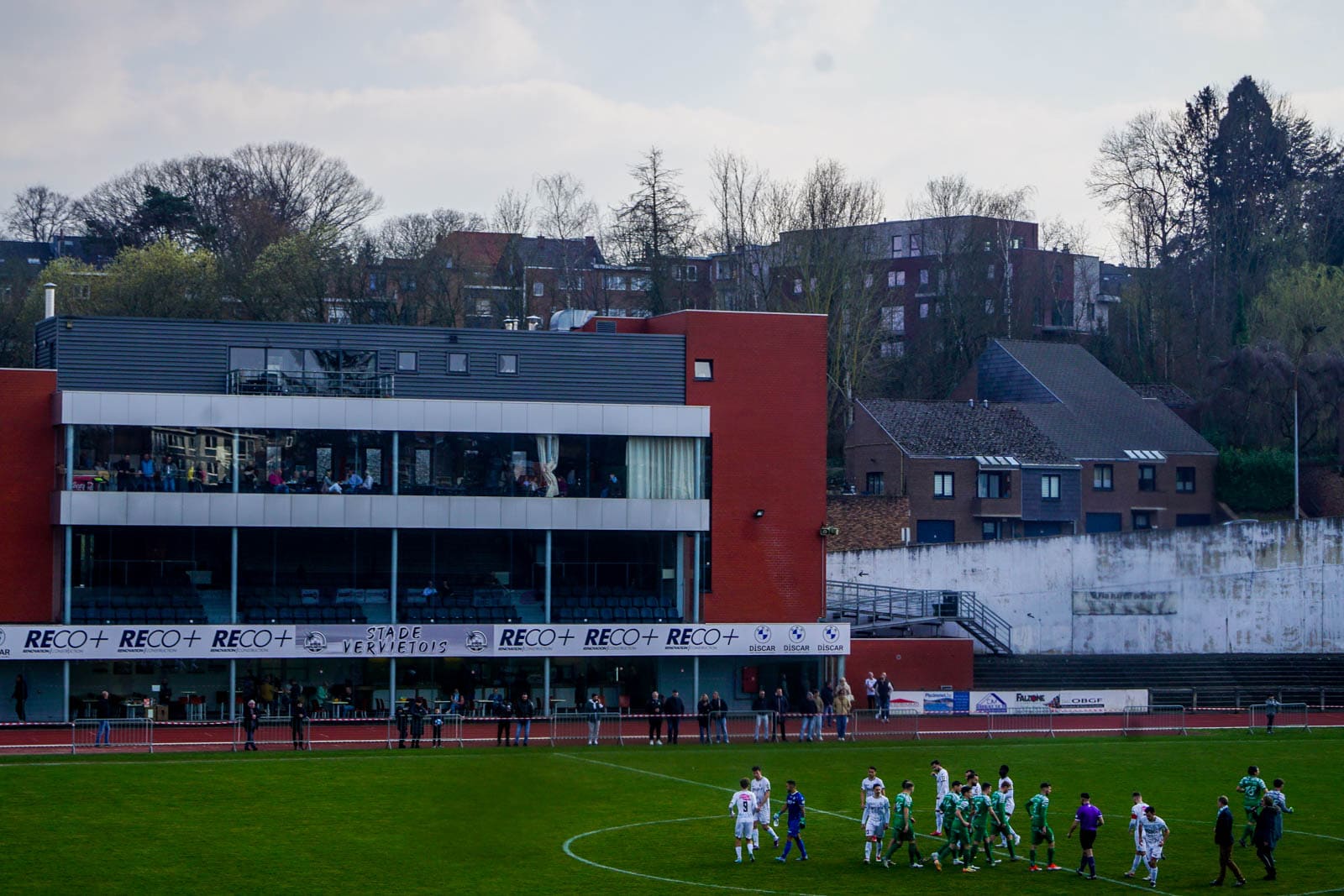 Dit doet de club in het Stade Communal de Bielmont, sinds 1999 ook de thuishaven van het verdwenen RCS Verviétois. Hoewel het niet het stadion is waar de meeste voetbalgeschiedenis ligt (dat is het Stade Panorama) is ook deze thuisbasis een hele interessante voor de stadionliefhebber. Met veel staantribunes, een grote overdekte zittribune en een modern hoofdgebouw is het stadion een soort mix tussen verschillende stijlen. We hadden een stuk slechter terecht kunnen komen deze zondagmiddag, zoveel is wel duidelijk.