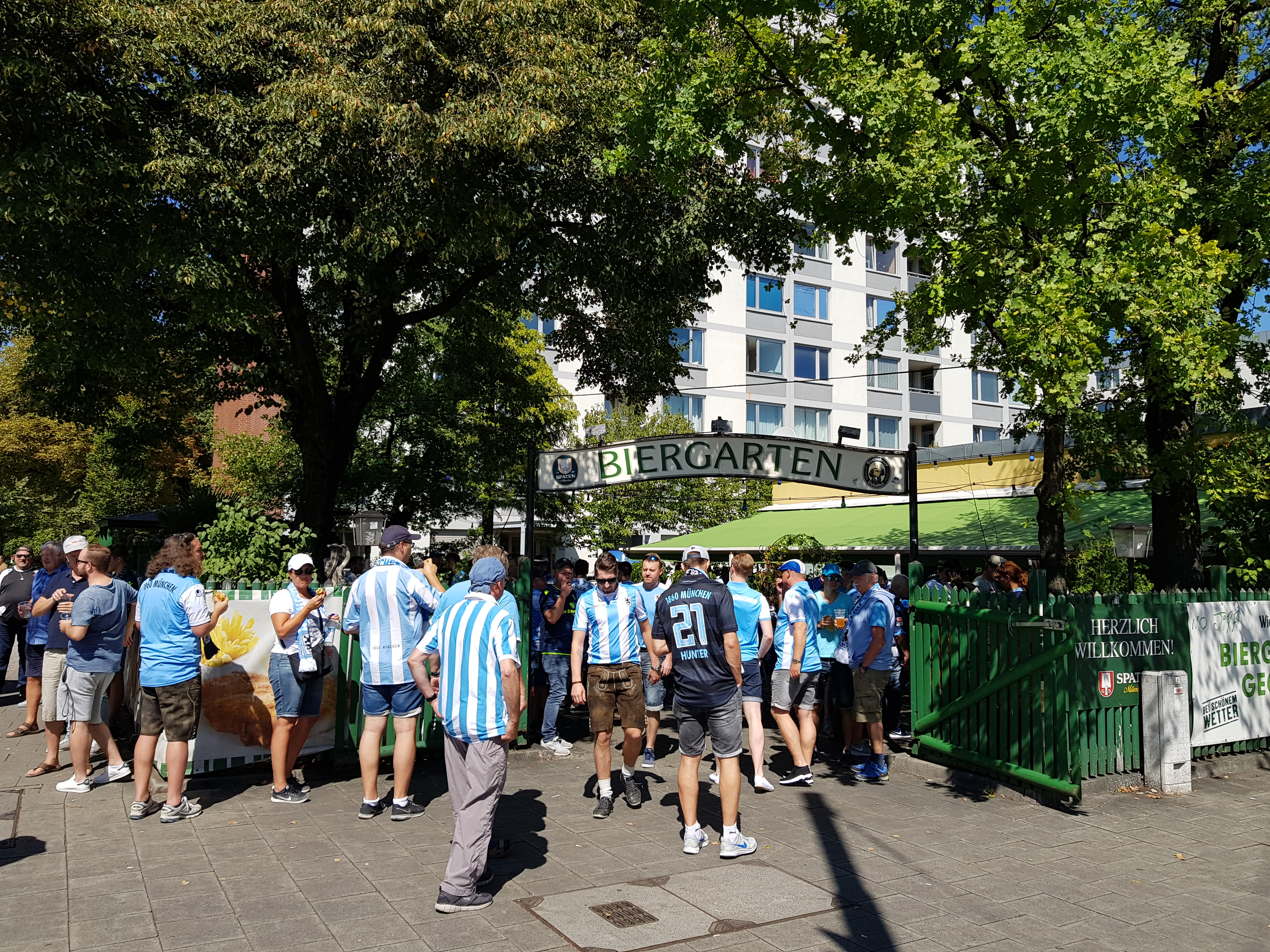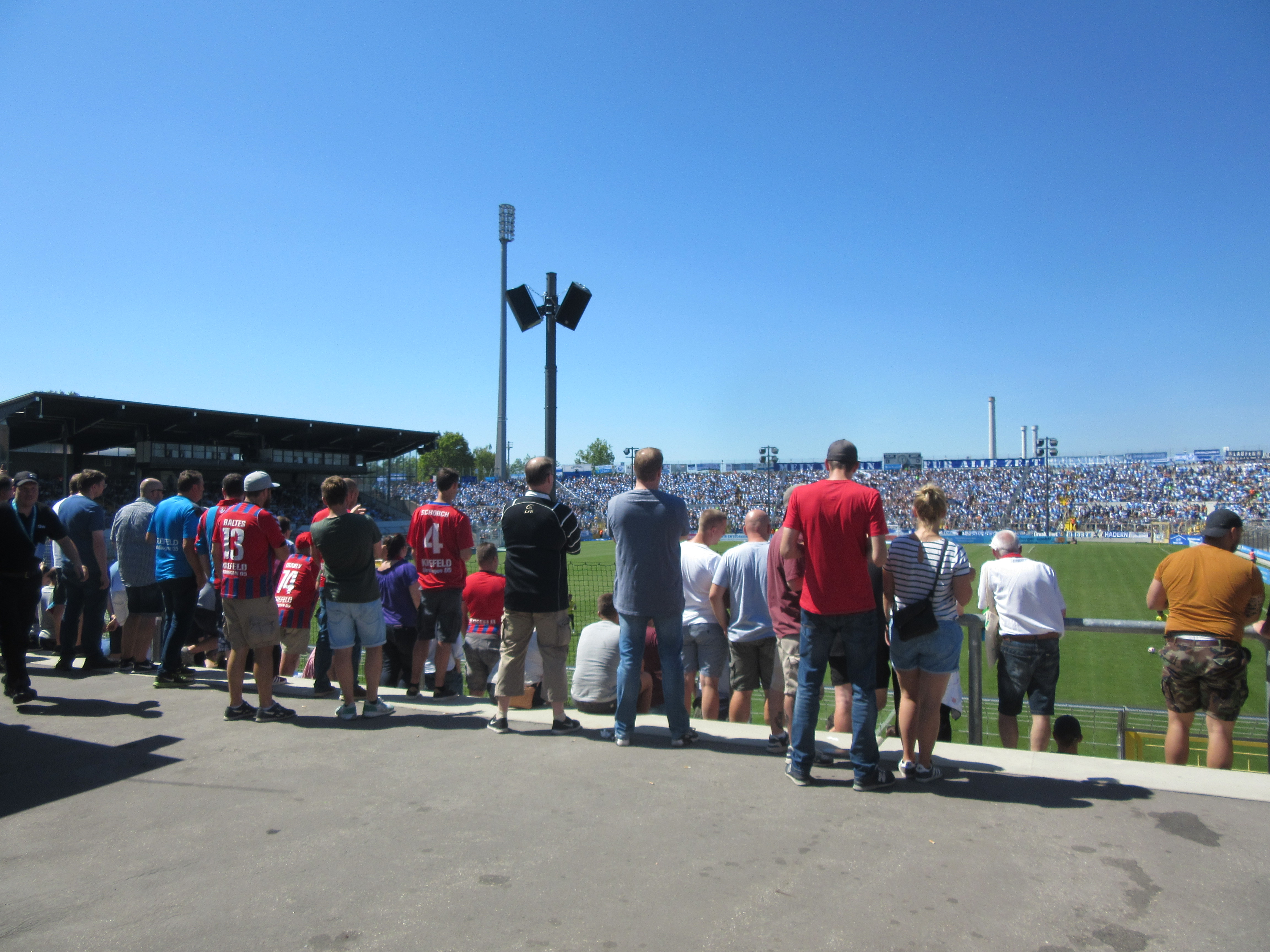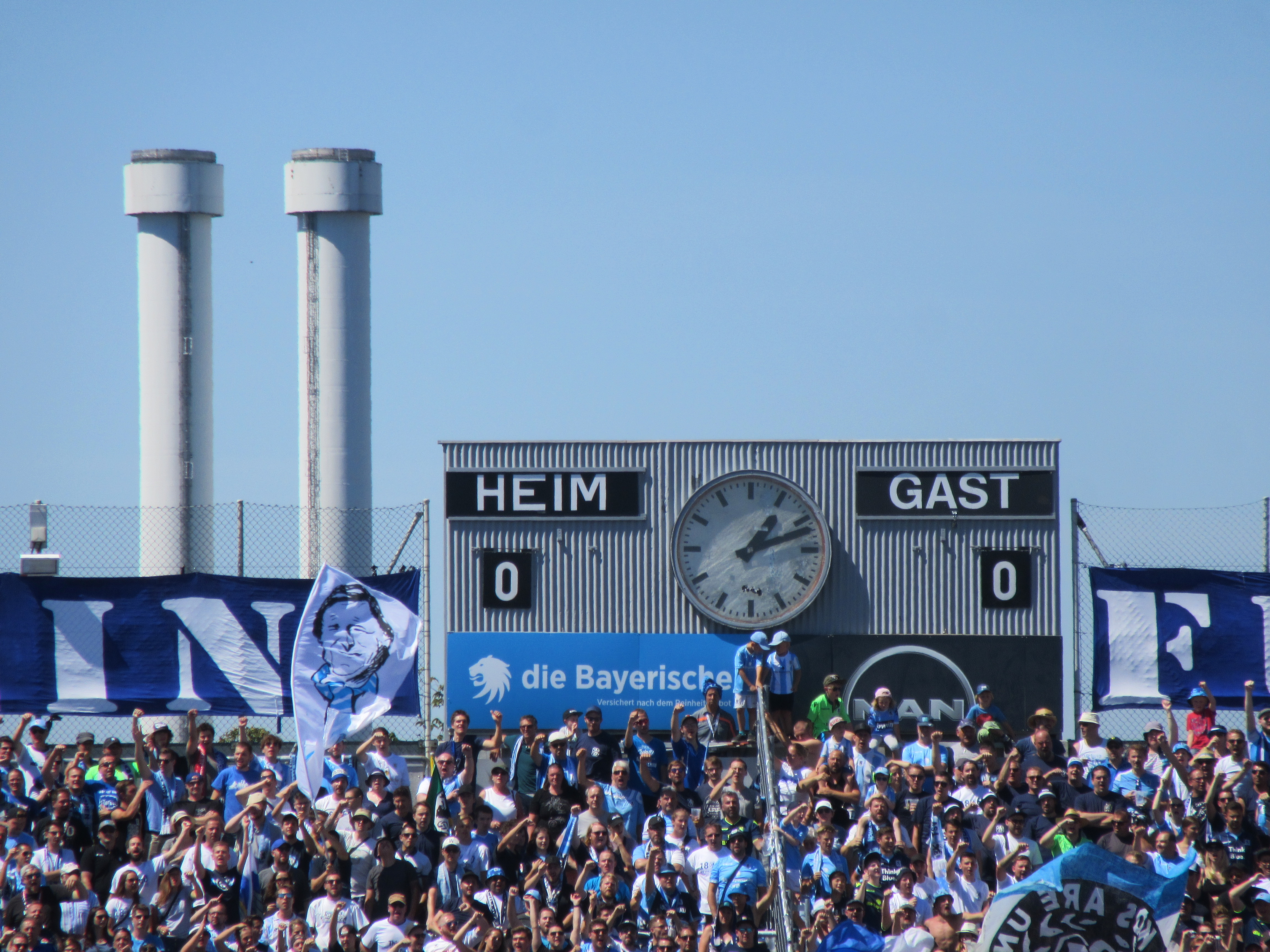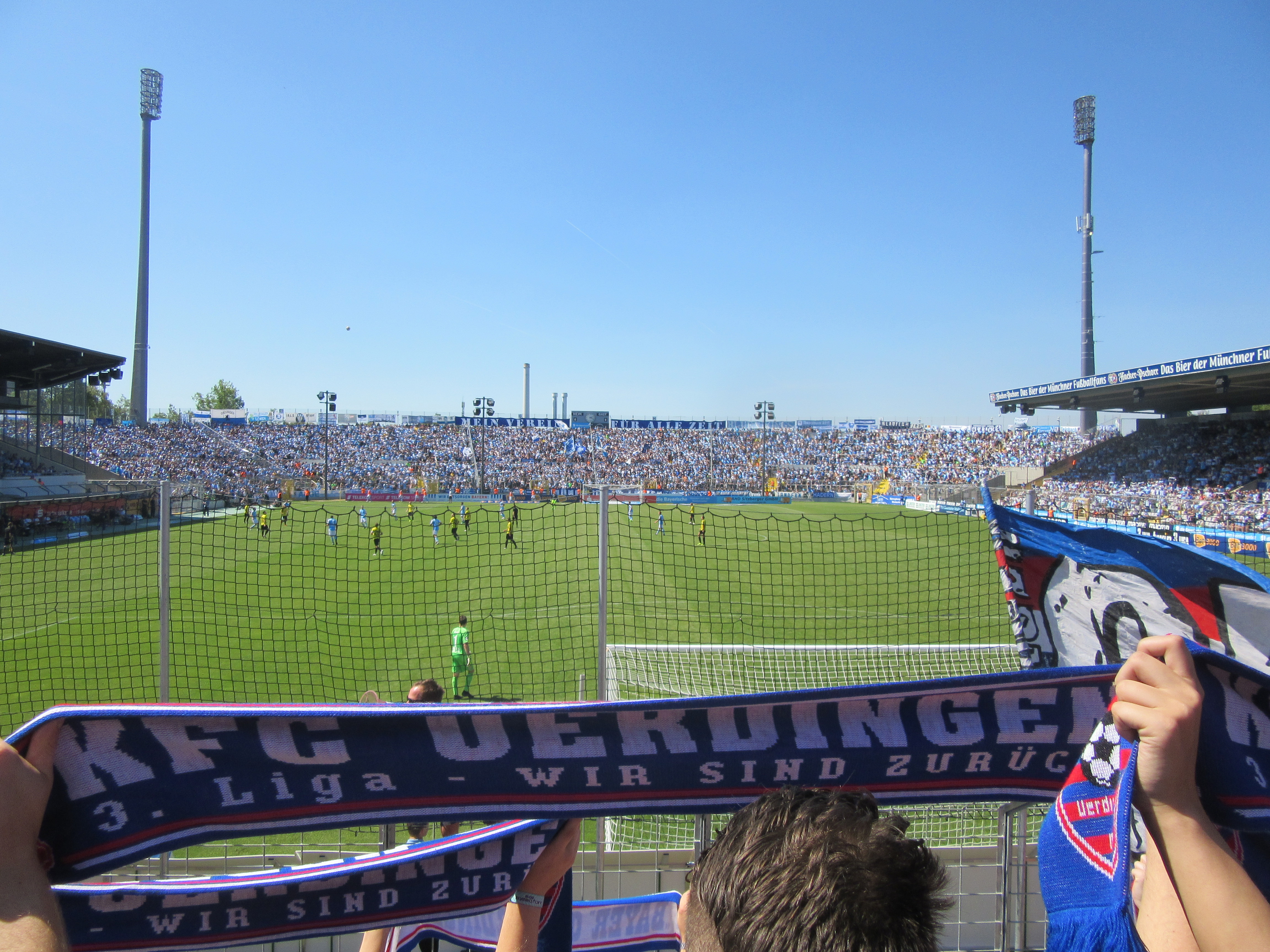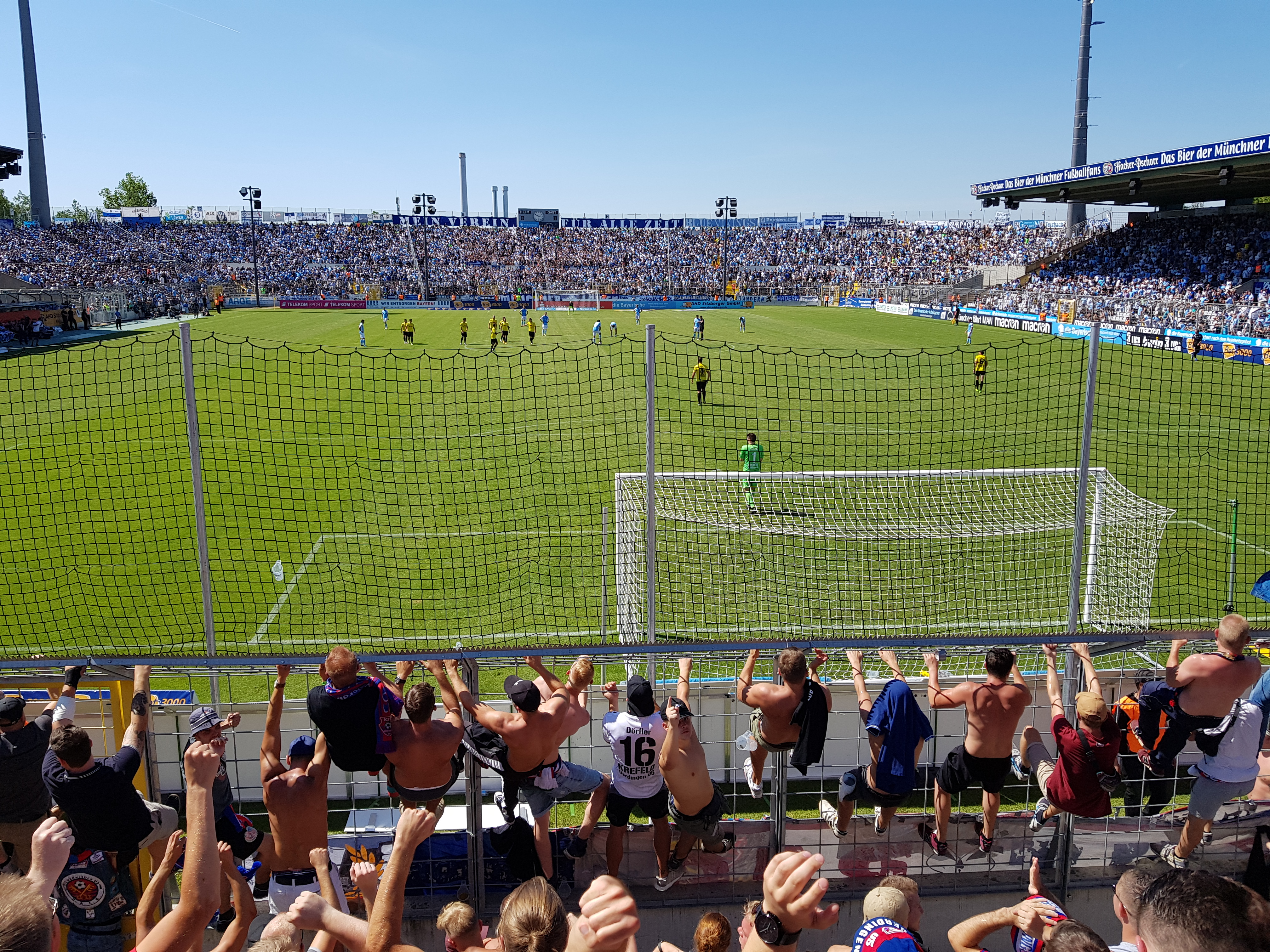 We bezochten de wedstrijd van 1860 München tegen KFC Uerdingen vanuit het uitvak. Zo’n 700 Uerdinger maakte de verre awayday vanuit Krefeld. Beide promovendi investeerde flink in de selecties en worden gezien als outsiders om meteen door te promoveren naar de 2. Bundesliga. In het zonnige Grünwalder Stadion was 1860 vandaag de betere ploeg, maar het wist niet te scoren. Diep in blessuretijd deed KFC Uerdingen dat wel tegen de verhouding in, zodat de Uerdinger toch nog de hekken in konden om een ‘auswärtssieg’ te vieren.