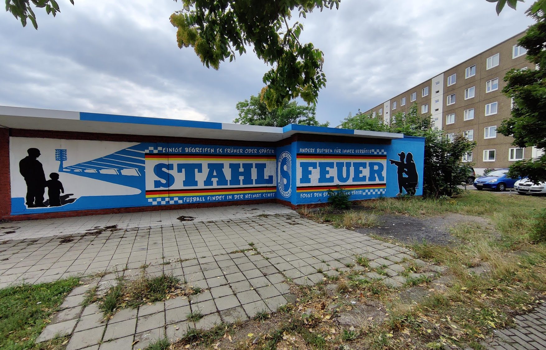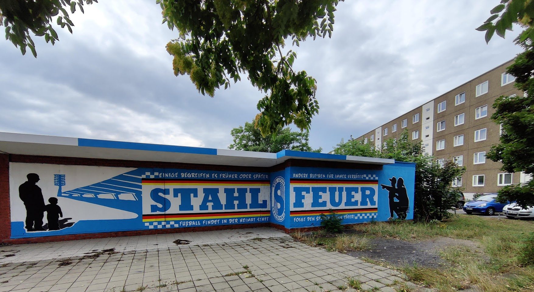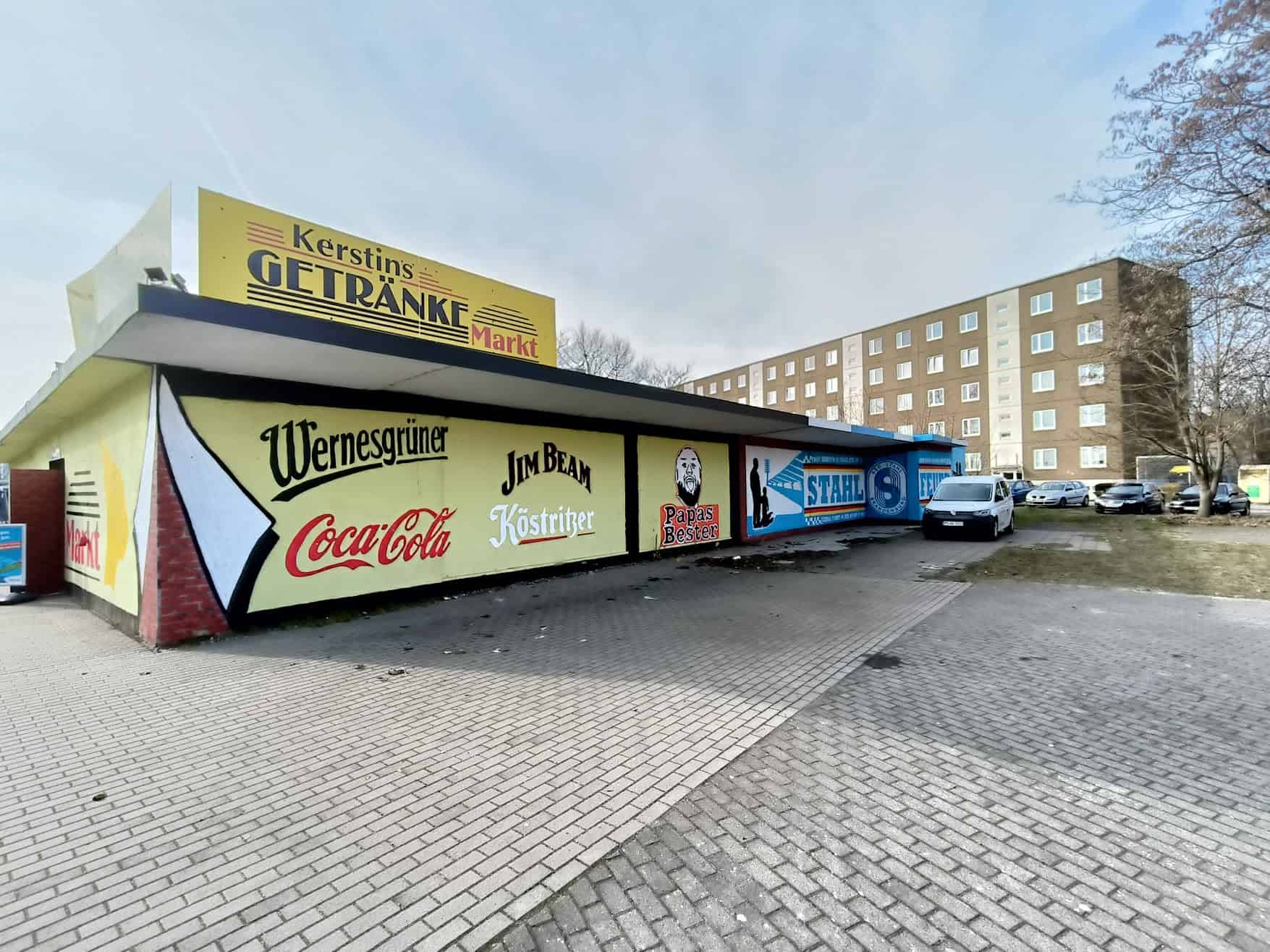 Zaterdagochtend ontbijten we tussen de Hansa-supporters en vertrekken, net als zij, verder oostwaarts. Via Wolfsburg, waar we ook nog even het oude stadion bezoeken, komen we in de buurt van Brandenburg. We leggen nog even een stevige bodem en zetten onderweg een aantal prachtige street art op de gevoelige plaat. Aan alles zie je dat deze club nog leeft in de regio.