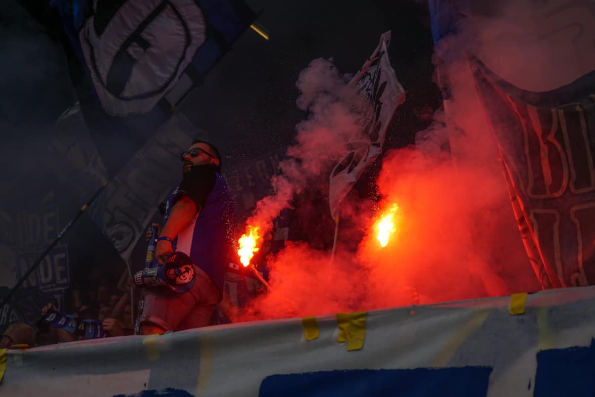 Het is alsof de steun van de supporters ook haar weerga heeft op het veld, want de bezoekers uit Bern worden bij vlagen weggespeeld door Die Leuchten van Luzern. Het is dan ook niet minder dan terecht wanneer Ibrahima Ndiaye de tweede treffer van de thuisploeg binnen schiet: 2-1! De voorsprong brengt de supporters in extase. Het feest is nog groter dan bij het vorige doelpunten. De viering is weer hetzelfde: haal de fakkels maar tevoorschijn! Wederom mogen we genieten van een vuurwerkshow gecombineerd met vele zwaaivlaggen en vocale steun onder leiding van de twee capo’s.