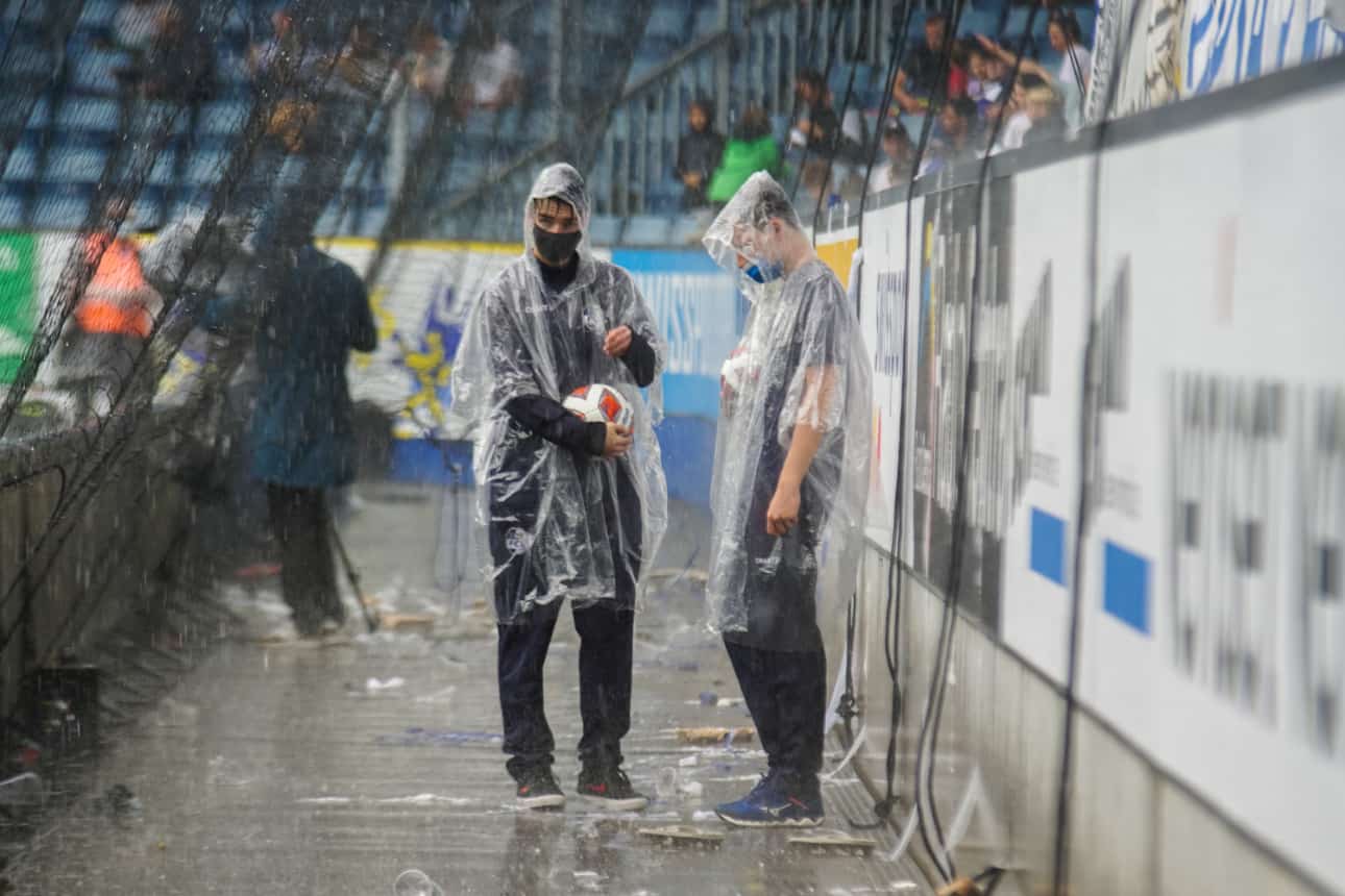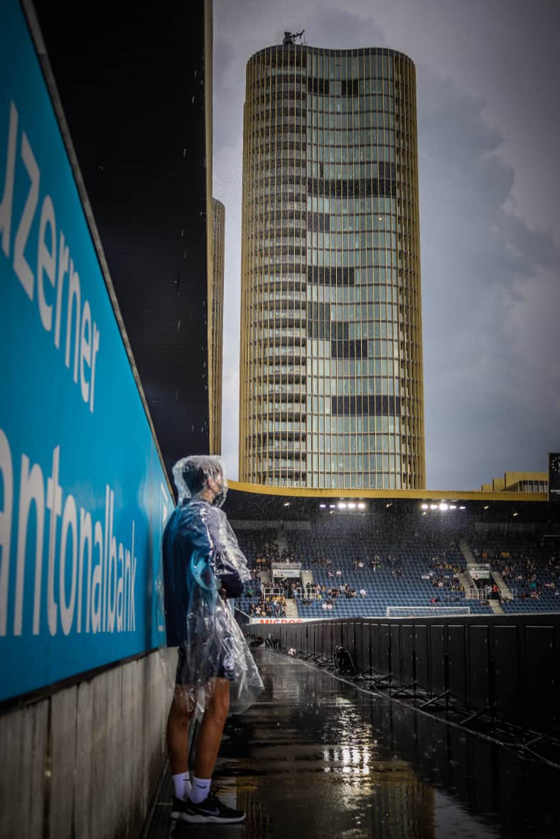 Vlak voor rust breekt een heftige regenbui uit. Het uitzicht op de korte zijde vol springende en zingende ultras zorgt er echter voor dat het ons nauwelijks deert dat we zeiknat worden. Ook als de regen na rust wordt ingeruild voor flinke hagelstenen verandert dit niet. Tijdens de tweede helft wordt de sfeer ronduit uitzinnig wanneer zelfs de 3-1 valt. Het stadion ontploft en de supporters kunnen het bijna niet geloven. Een overwinning tegen de regerend kampioen uit Bern lijkt plotseling bijna een zekerheid. Het moedigt de ultras aan om vocaal nog een tandje bij te schakelen en de spelers naar de overwinning te schreeuwen.