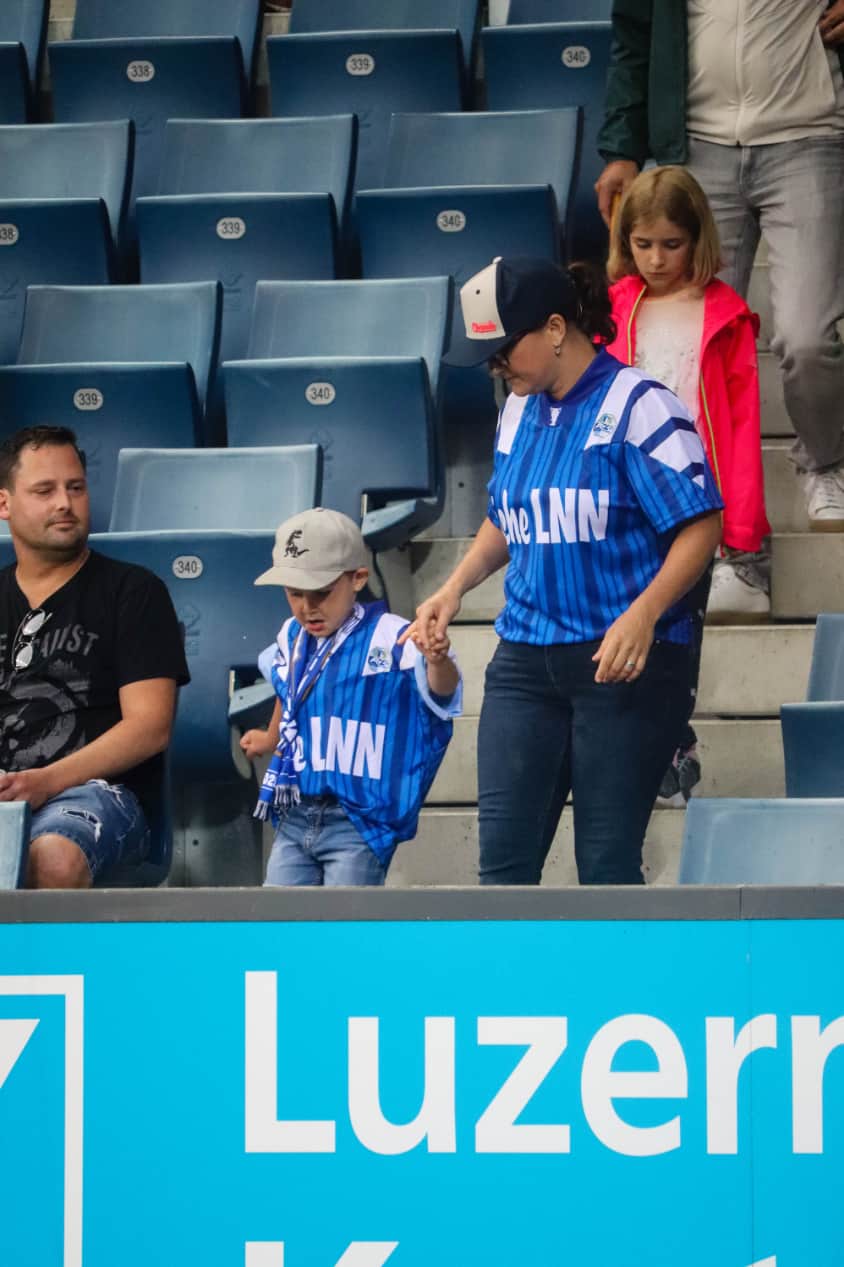 De restricties in Zwitserland zijn inmiddels dusdanig versoepeld dat volledige capaciteit wordt toegestaan. Uiteraard wel met vaccinatiebewijs of negatieve test. Dit is helaas voor veel ultras een reden om de wedstrijden voorlopig te boycotten omdat zij het niet eens zijn met deze vorm van identificatieplicht. De ultras van Young Boys zien we vandaag dus ook niet in het uitvak terug. De USL van FC Luzern heeft, gelukkig voor ons, een andere beslissing genomen en is wel op volle kracht aanwezig. Uiteindelijk zijn er meer dan 13.000 supporters aanwezig bij de eerste wedstrijd van FC Luzern met publiek sinds meer dan 500 dagen. Vaders en zonen, moeders en dochters. Overal zitten supporters te stralen en kijken kinderen vol verwondering naar het veld en de tribunes. Na zo lang geen écht voetbal meer gezien te hebben, geeft het aangezicht van volle tribunes zonder overdrijven kippenvel. Bijna anderhalf jaar wachten is eindelijk over. Het voelt nog wat onwerkelijk aan.