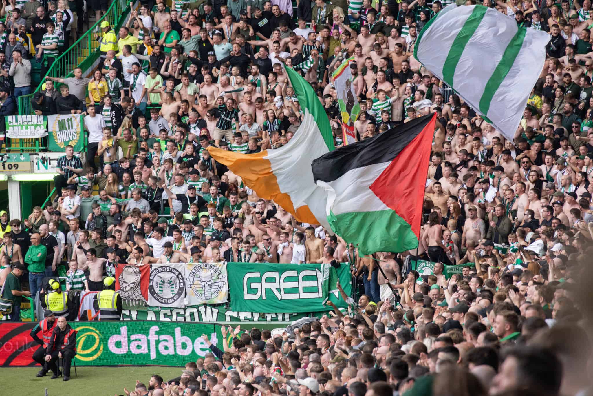 Mijn eerdere Old Firms (3 stuks) waren of voorspelbaar of ontzettend slecht van kwaliteit als het om het voetbal aankwam. Vooraf hoopte ik op eindelijk eens een zinderende pot voetbal. Dat begon al met de sfeeractie van Green Brigade. Groen witte vellen en een groot doek van Paddy Coyle. Het doek verwijst naar de Battle of the Bogside in Derry in 1969. De toen 13-jarige Paddy was gefotografeerd met een WW2 gasmasker op en een brandbom in zijn handen. Een iconische foto binnen The Troubles, de decennialange strijd tussen de Katholieken en Protestanten op het Ierse eiland. Iets wat natuurlijk ook een grondslag heeft in de rivaliteit tussen Celtic FC en Rangers FC.