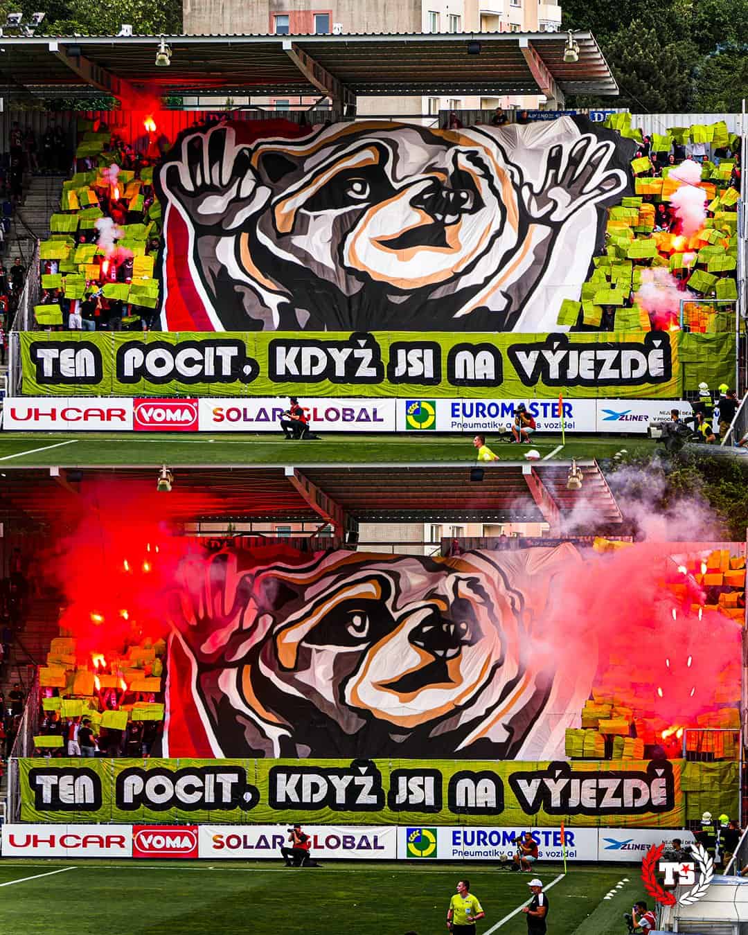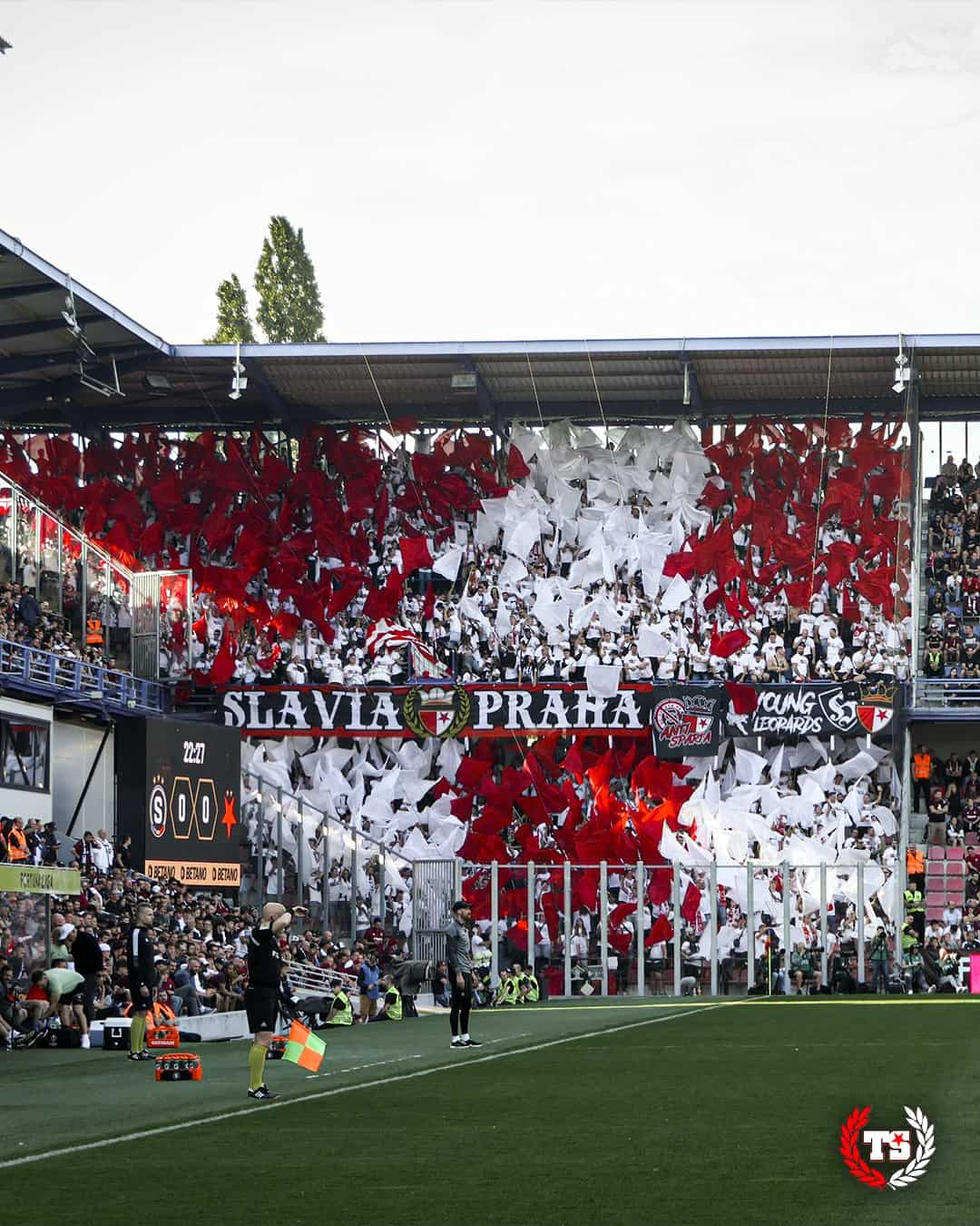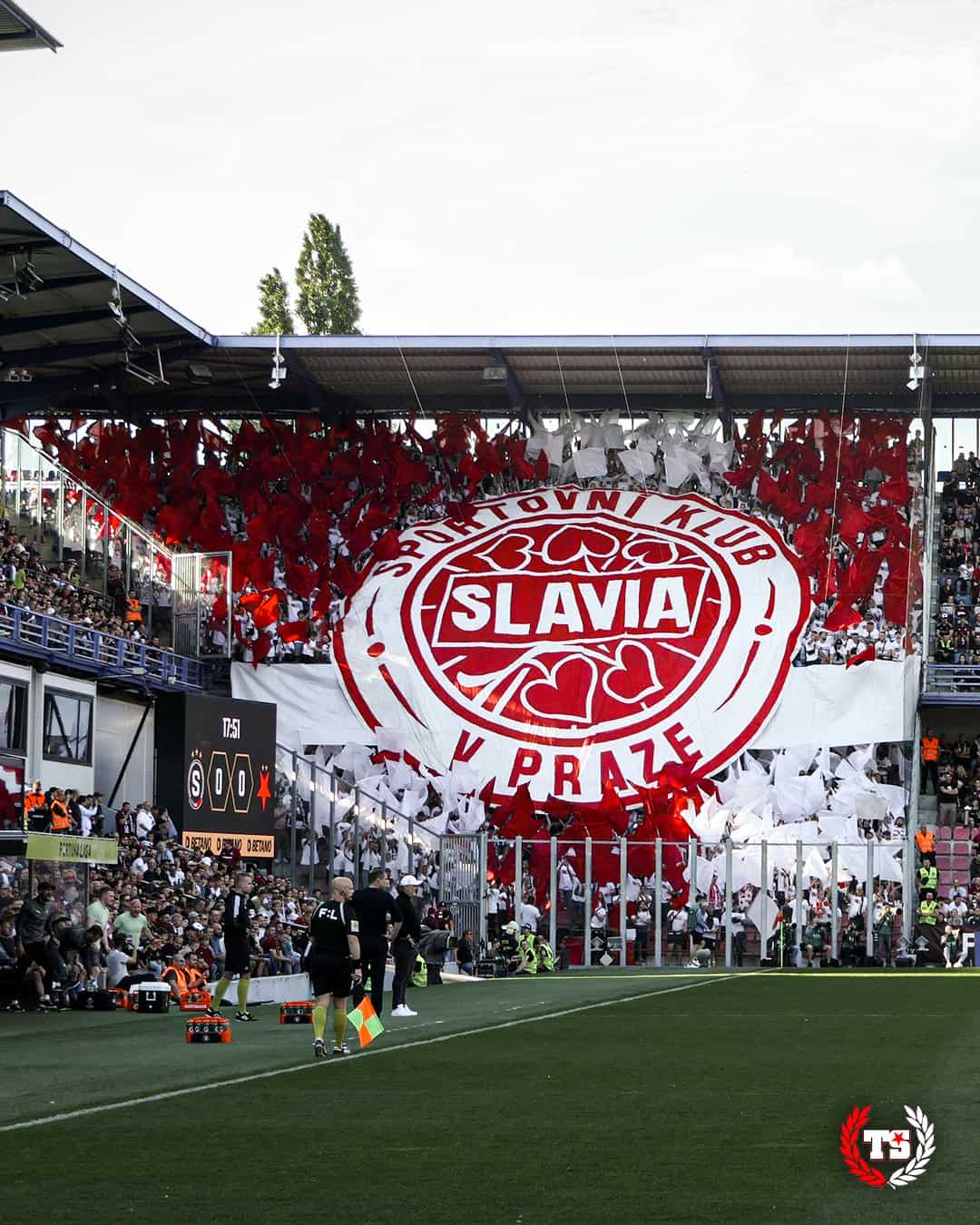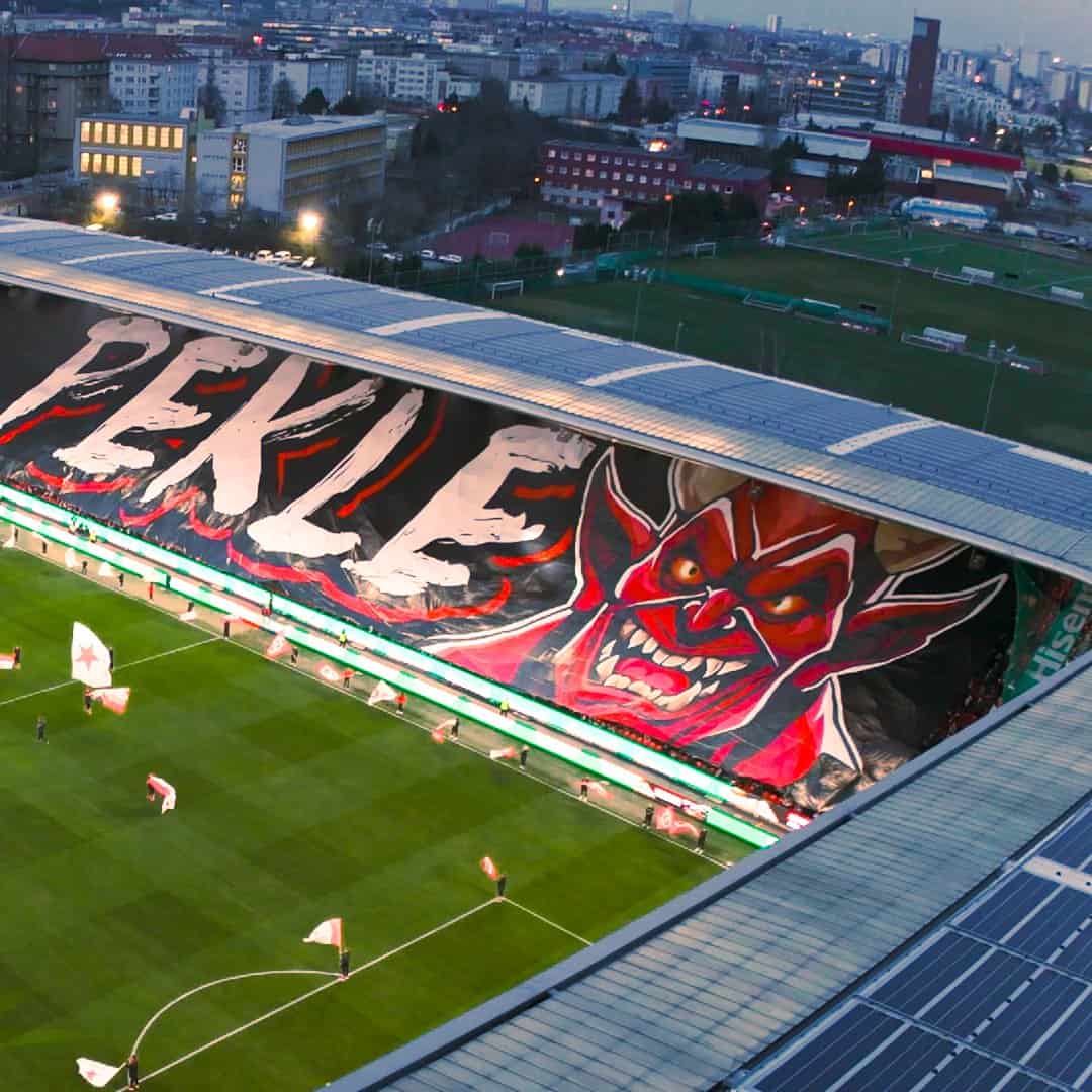 Tegen Banik Ostrava 1,5 week later komt Tribuna Sever met het grootste spandoek in de geschiedenis van het Tsjechische voetbal. Twee zijdes worden volledig bedekt door de “Slavia tegen iedereen” tifo. Ook een pyroshow kan niet ontbreken.