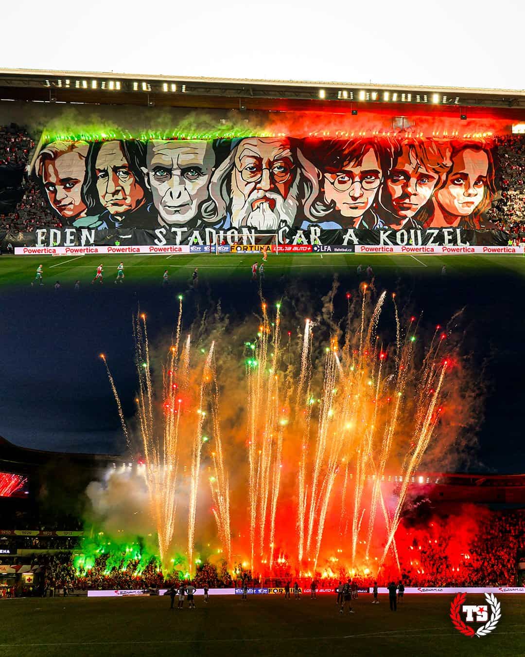 Voor de kleinere stadsderby tegen Bohemians Praag volgt wat wellicht de beste pyroshow van Europa is dit seizoen. Eerst is er wederom een extreem gedetailleerd doek – ditmaal een Harry Potter tifo – met rode en groene fakkels er boven. Erna vormen fakkels over de hele tribune en tientallen shooters op de eerste rij een ongekende pyroshow. Zelfs de spelers kunnen niks anders doen dan zwaar onder de indruk toekijken.