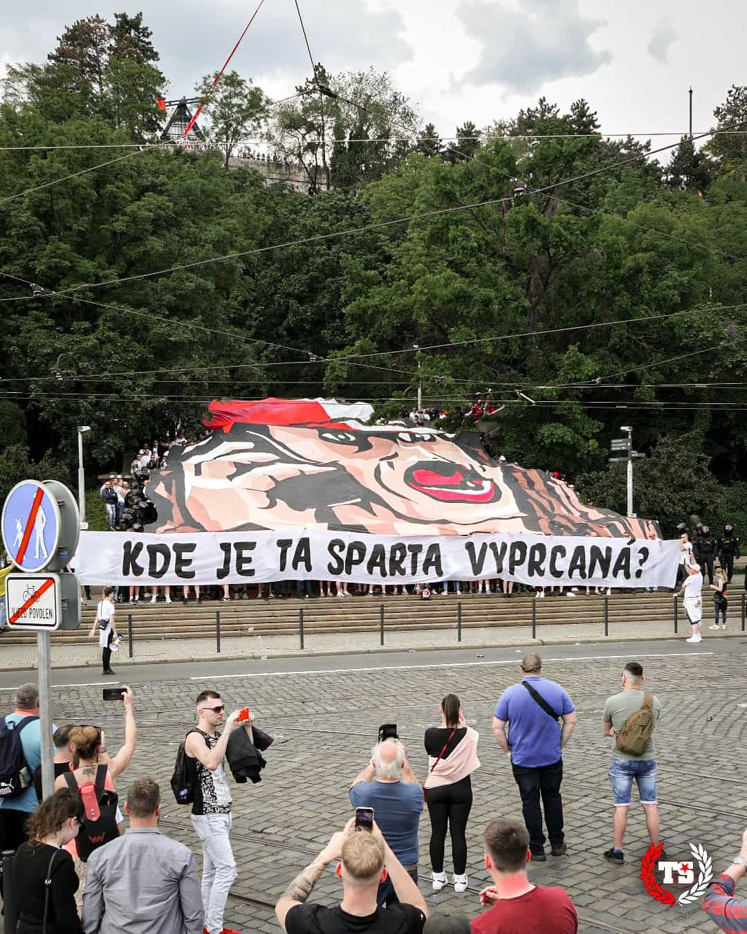 Het begin van de kampioenspoule (bestaande uit vijf wedstrijden) tegen Banik Ostrava is reden voor Tribuna Sever om uit te pakken met drie grote tifo’s. Te beginnen met een “elke juiste man haat Banik” met meerdere van Hollywood’s bekendste ‘echte mannen’. Dan volgt nog een tifo om de vriendschap met de hooligans van Zaglebie Sosnowiec te vieren. Aan het einde van de wedstrijd volgt nog een tifo met boodschap voor de naderende derby.