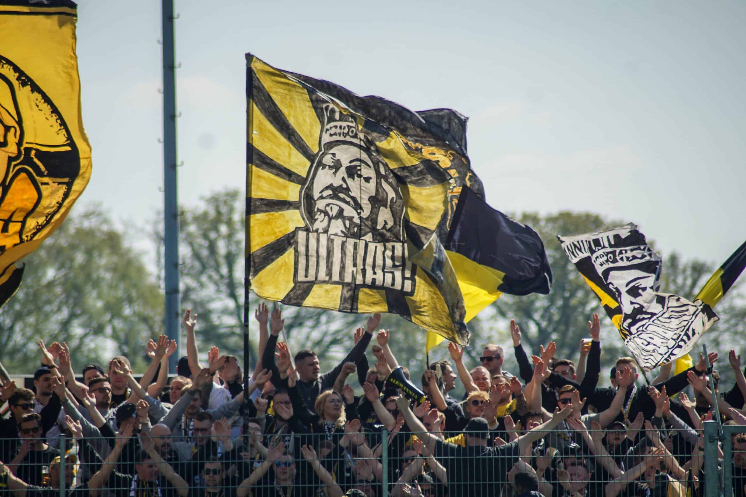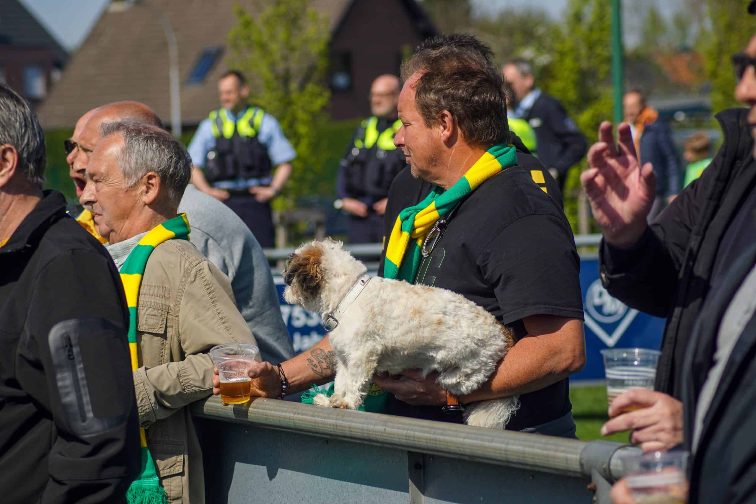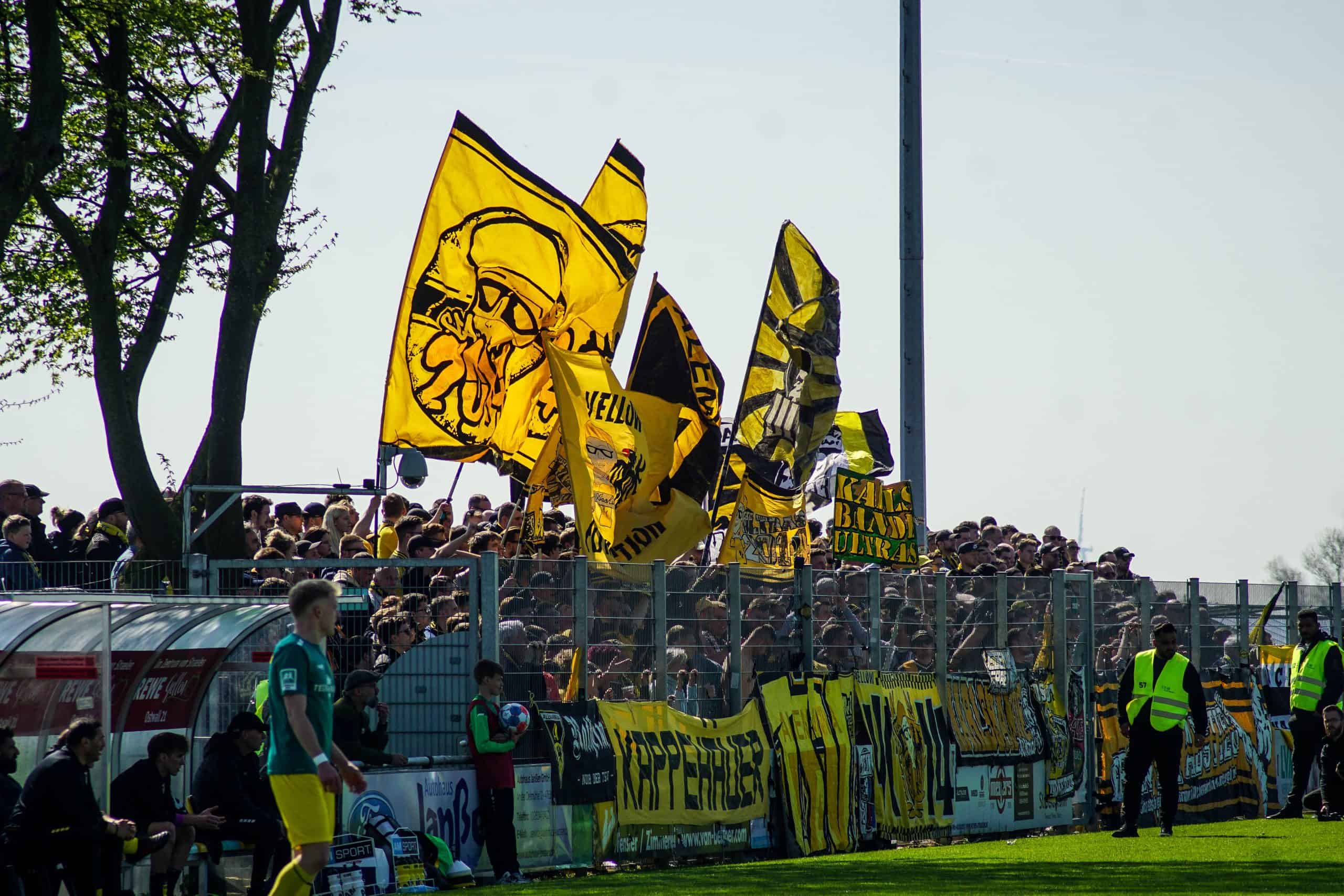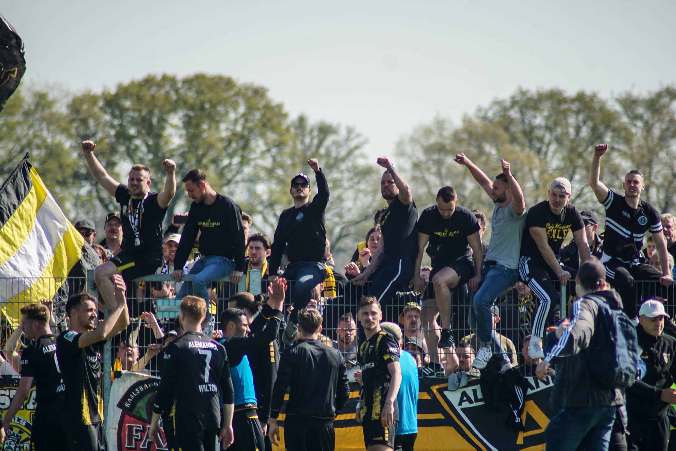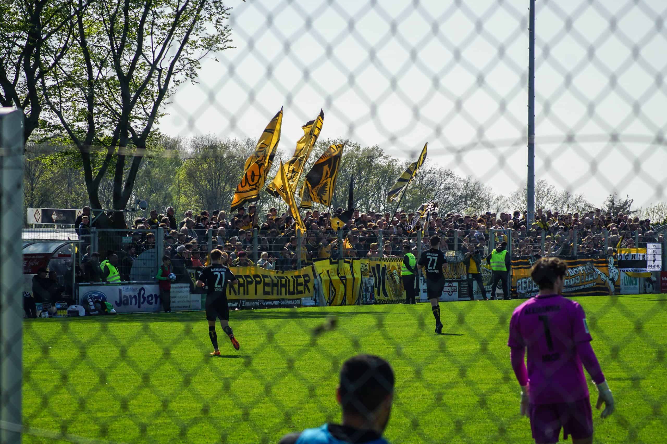 Aan het einde wordt het nog wel even spannend, maar de mannen in geel-zwart geven het niet meer uit handen en trekken met hangen en wurgen de belangrijke punten over de streep. Het is reden voor groot feest in het uitvak, dat op deze manier lijfsbehoud weer een stapje dichterbij ziet komen. De ultras gaan massaal de hekken in. Onder leiding van de capo wordt vervolgens nog minutenlang een feestje met de spelers gevierd. Springen, klappen, juichen, inhaken. Alle klassiekers komen voorbij op het sportpark in Straelen. Laten we hopen dat deze mooie Duitse voetbalmiddag het keerpunt gaat zijn voor de prachtige club Alemannia Aachen. Deze supporters verdienen namelijk vele malen meer dan een degradatiestrijd op het vierde niveau…