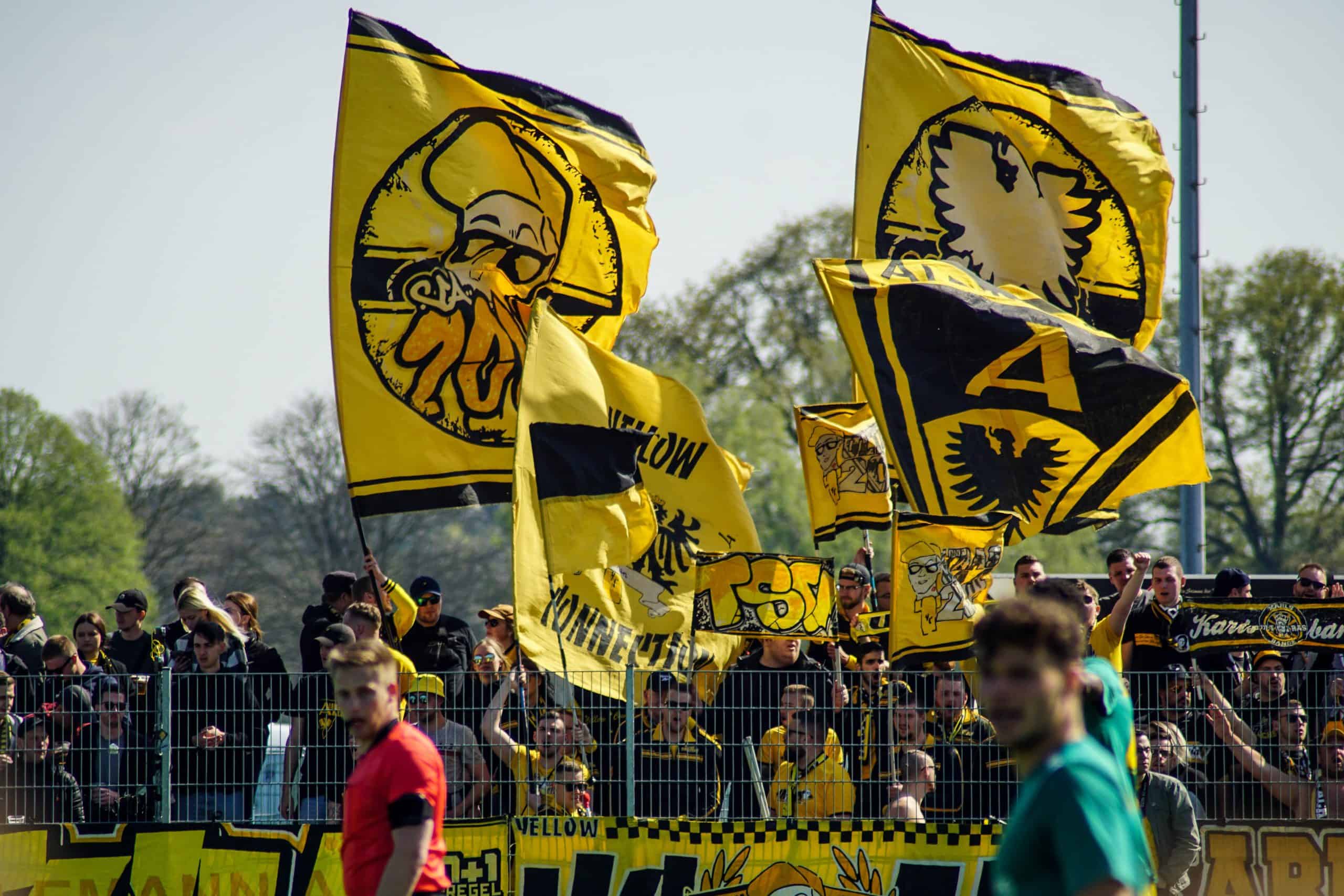 Het is er sinds ons laatste bezoek namelijk allesbehalve beter op geworden in Aachen. Waar we toen nog schreven over de jarenlange vruchteloze jacht op promotie naar de 3. Liga van Alemannia, is er vandaag de dag sprake van een realistische kans op degradatie naar de Oberliga. Het zogeheten rock bottom leek al jaren geleden bereikt met het spelen in de Regionalliga, maar de club weet zichzelf in negatieve zin opnieuw te overtreffen. Voorafgaand aan de naderende wedstrijd tegen SV Straelen staat de club op een plaats die goed is voor play-offs tegen degradatie. Er zijn weliswaar nog een paar wedstrijden minder gespeeld, maar het is duidelijk dat er vanmiddag gewonnen moet worden. Zeker omdat tegenstander SV Straelen zich in dezelfde contreien bevindt. Er staat vandaag een onvervalste degradatiekraker op het programma. Straelen kan zich voorbereiden op een geel-zwarte invasie.