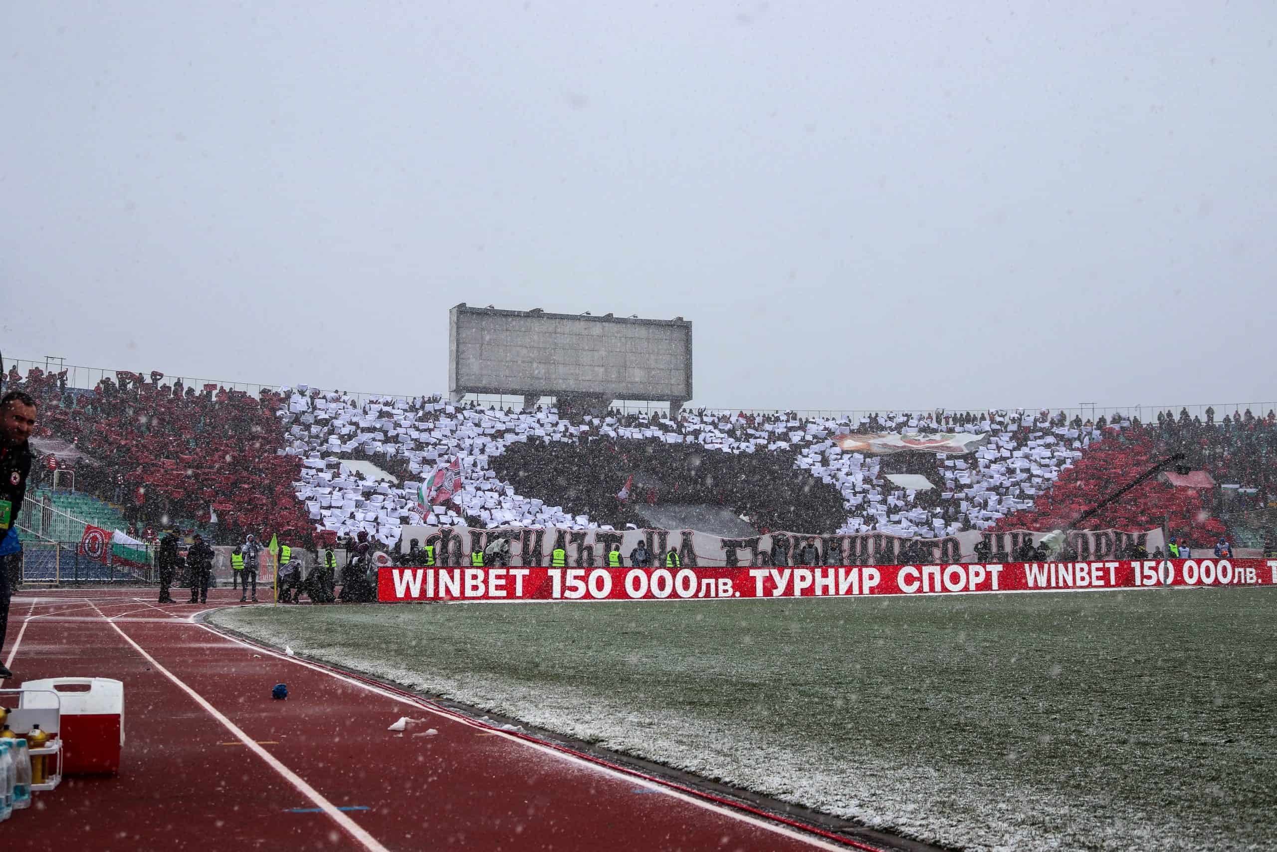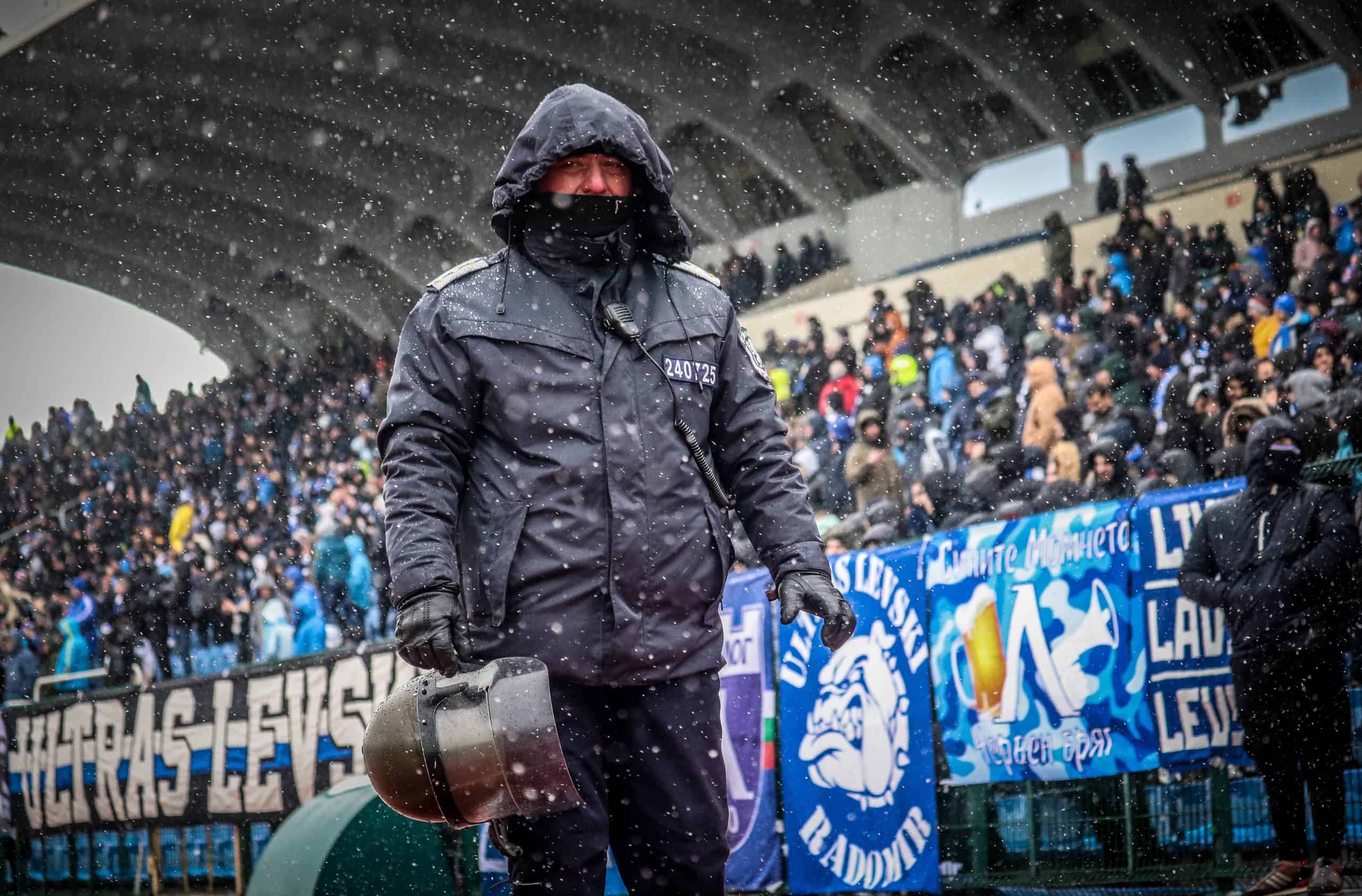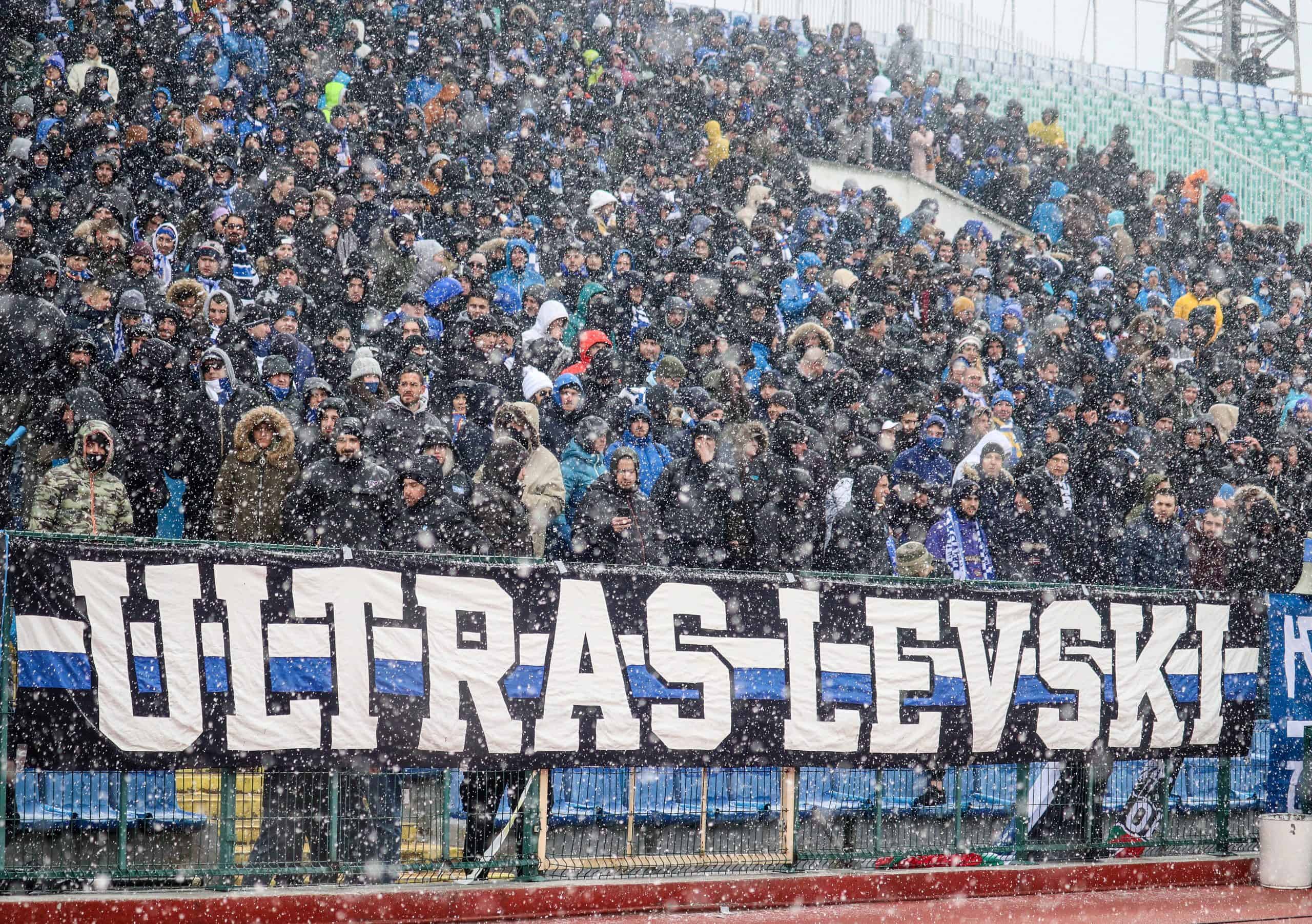 Zo gezegd, zo gedaan. Enkele uren voor de aftrap zijn we weer terug in Sofia. De weersvoorspellingen logen er niet om. Enkele dagen voor aankomst in Bulgarije werd al sneeuw voorspeld op matchday. En hoe! Vrijwel de hele zondag bleven de vlokken uit de lucht komen om vervolgens op vele plekken te blijven liggen. De overbodige spullen worden snel in het appartement gedropt om daarna lopend (!) naar het stadion te gaan. Op papier speelt Levski een thuiswedstrijd tegen CSKA. De derby wordt echter consequent afgewerkt in het Vasil Levski Nationaal Stadion, vernoemd naar een revolutionaire, nationale held van Bulgarije. Door middel van zijn revolutionaire beweging werd Bulgarije bevrijd van de Ottomaanse heerschappij. De fanatieke groeperingen van beide clubs hebben zodanig veel respect voor het stadion, dat de meest pikante wedstrijd van het seizoen hier altijd ‘veilig’ wordt gespeeld.