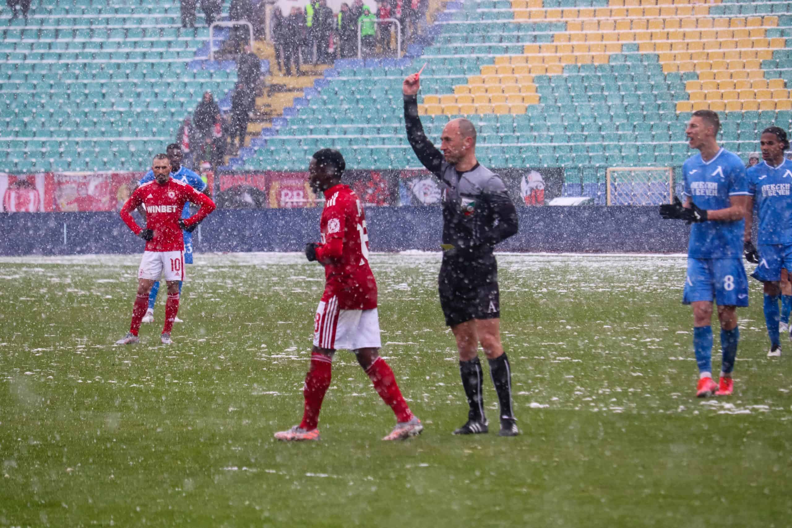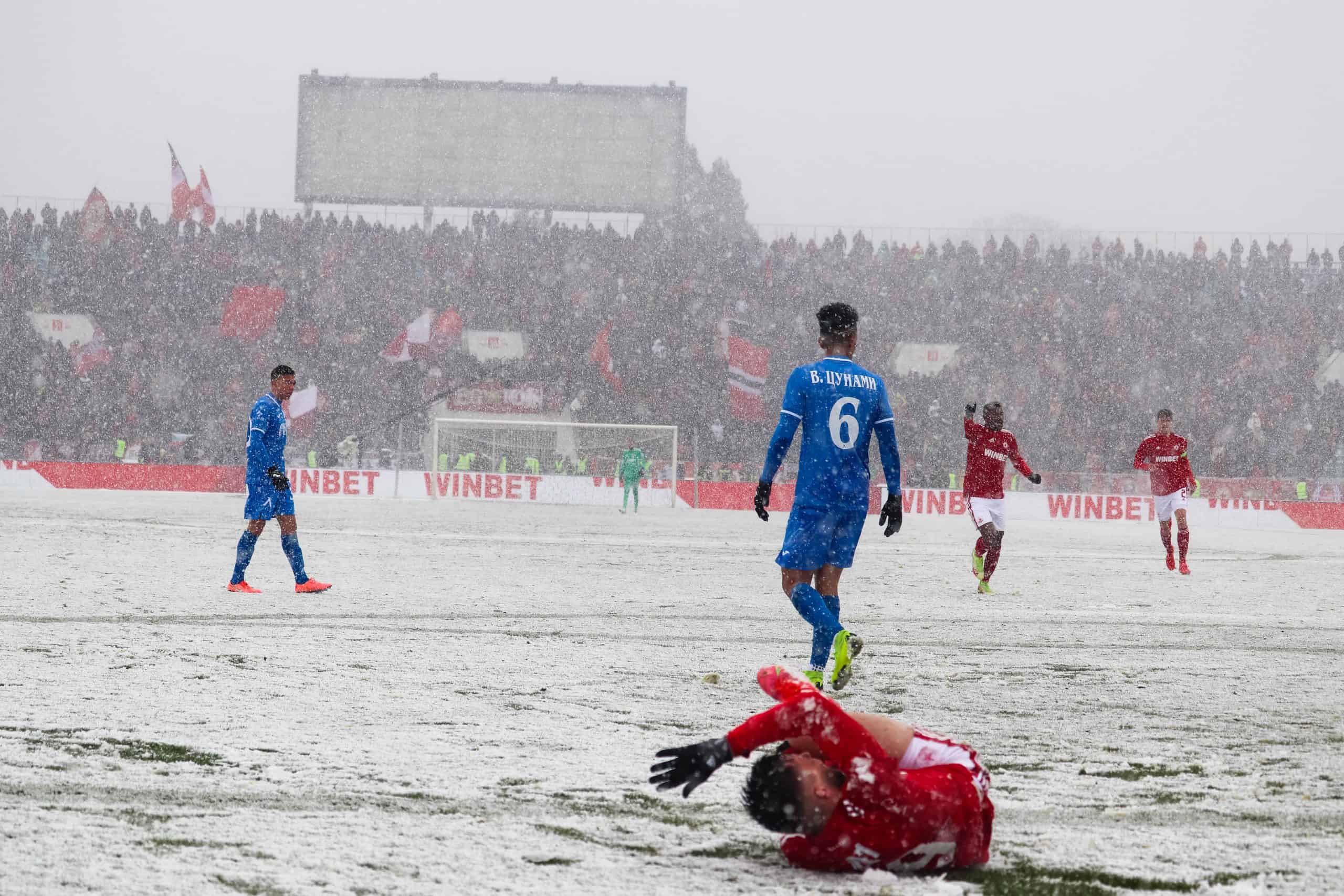 De wedstrijd begint en het lijkt steeds harder te sneeuwen. De keeper van Levski – tevens oud-doelman van FC Twente – Michajlov, geeft aan last te hebben van het weer en soms zelfs niks te zien. Tijdens een onderbreking van tien minuten lijkt de scheidsrechter te overwegen om de wedstrijd te stoppen. In dit tijdsbestek wordt het veld een soort van sneeuwvrij gemaakt. In ieder geval in en rondom het strafschopgebied. Het spel lijkt na de hervatting logischerwijs nog steeds nergens op. De bal rolt amper en de wedstrijd is vooral fysiek. Het hoogtepunt van de wedstrijd is wanneer één van de spelers de sneeuwschuiver van een knecht overneemt omdat dit klaarblijkelijk te lang duurt. Ook zijn opruimkunsten mogen niet baten. De rest van de wedstrijd is niet goed, spannend blijft het echter wel.