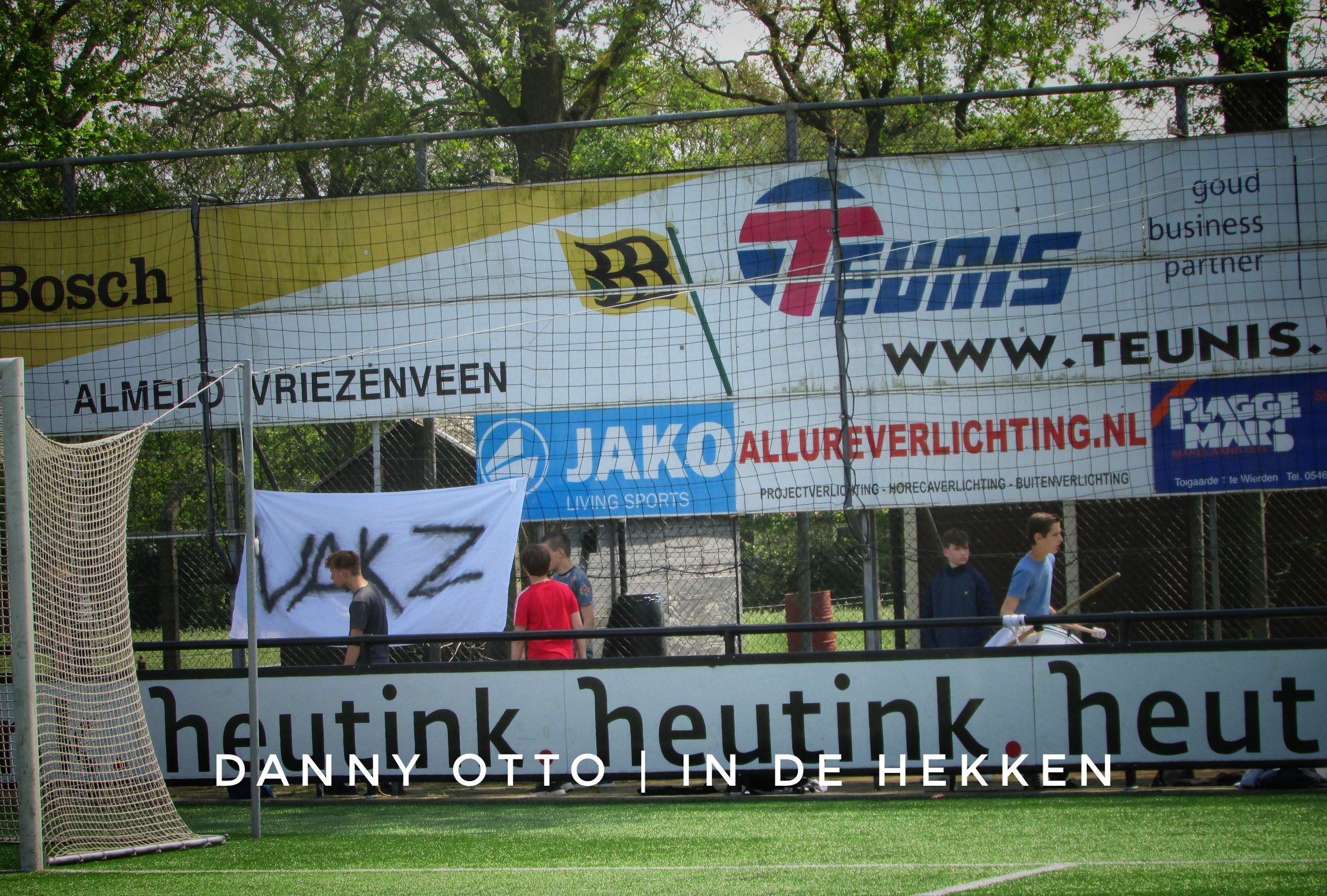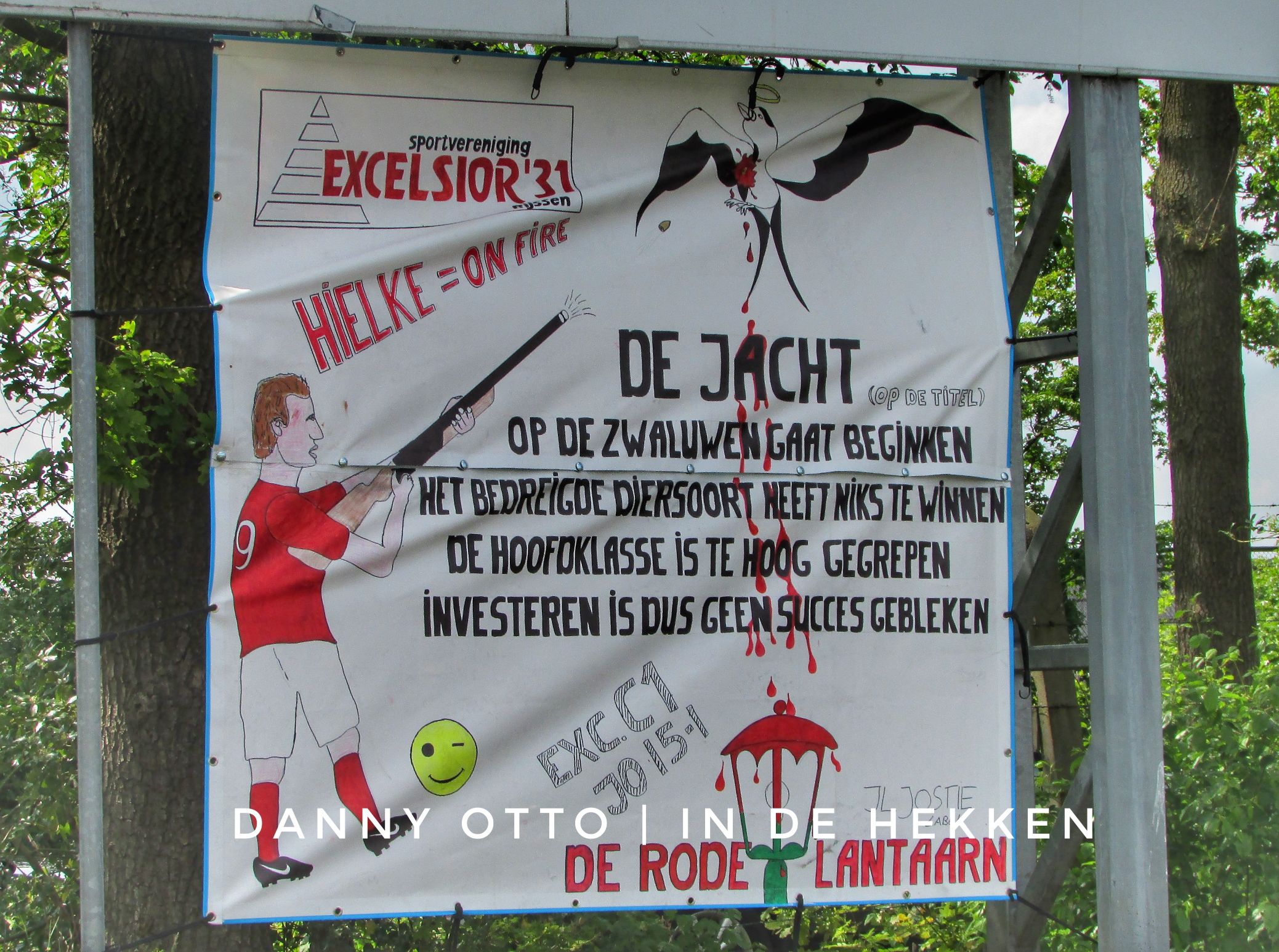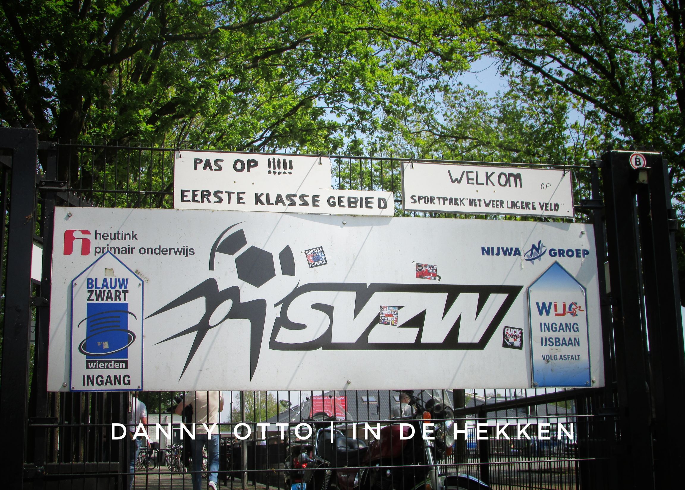 18 mei, 14:30. Dat is het nadeel van een middagpot op zaterdag. Veel jongens moeten zelf voetballen die dag, waardoor zij zich moeten haasten om hun club aan te moedigen. De gasten van Excelsior’31 komen per fiets naar Sportpark Het Lageveld, een fietstochtje van 30 minuten. Bij aankomst, dik een half uur voor de aftrap, zie ik al uitdagende borden aan de poort hangen, iets wat bij een gezonde ‘burenruzie’ hoort. ‘Pas op, eerste klasse gebied!’ en ‘Welkom op sportpark het weer lagere veld’ zijn zulke stekende zinnen die op het hek van SVZW staan. Het is duidelijk dat de meeste supporters van de uitploeg al aanwezig zijn.