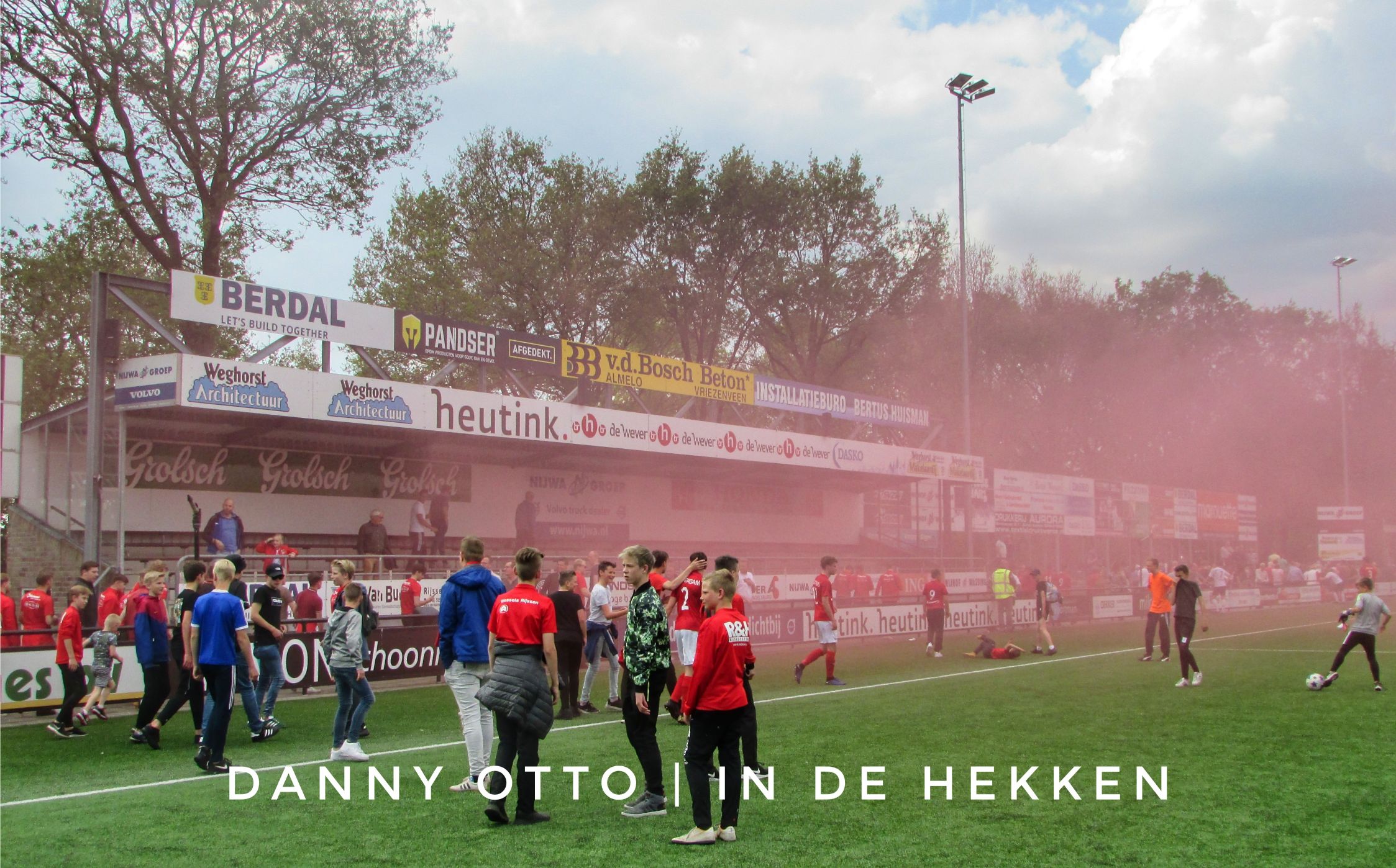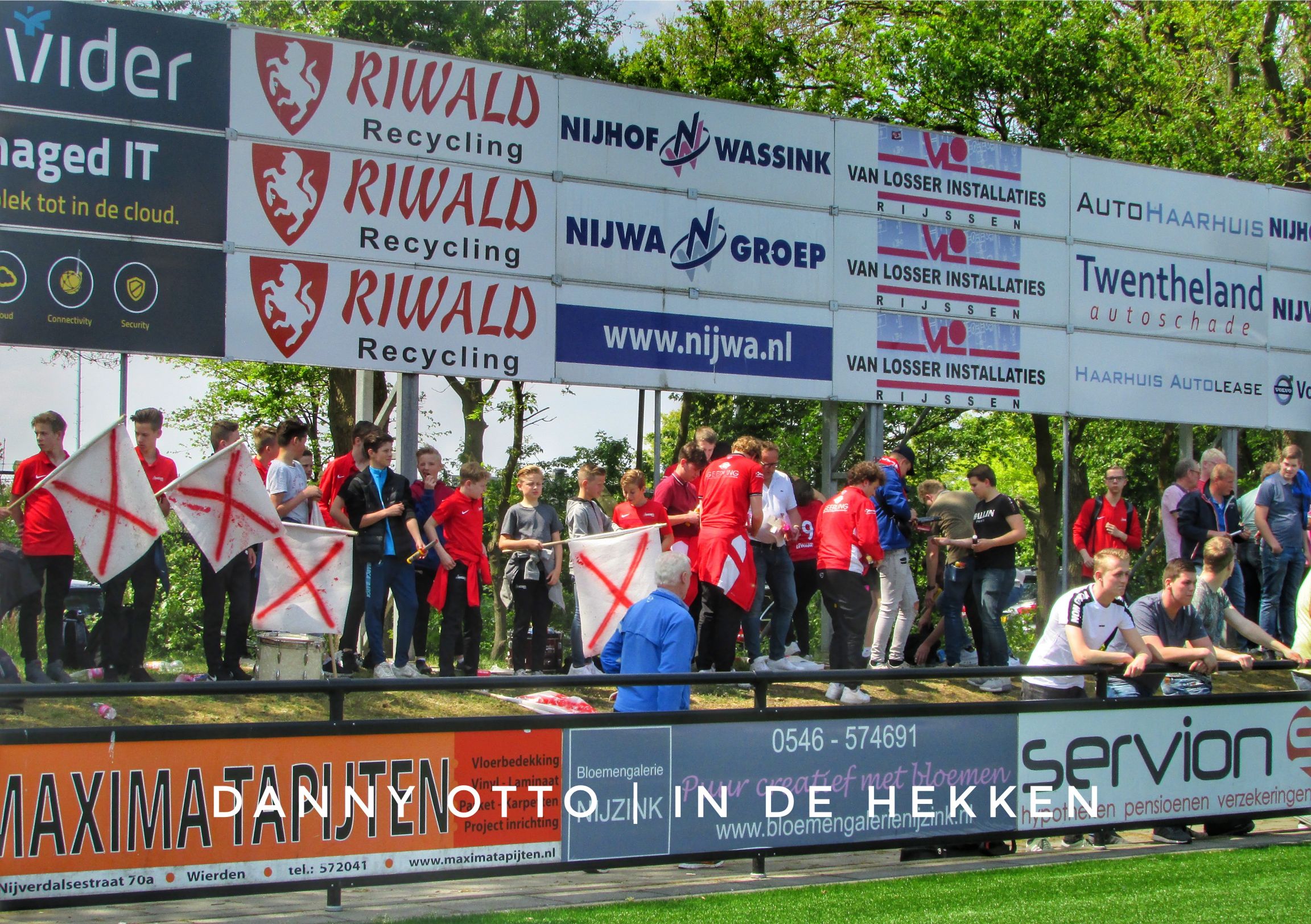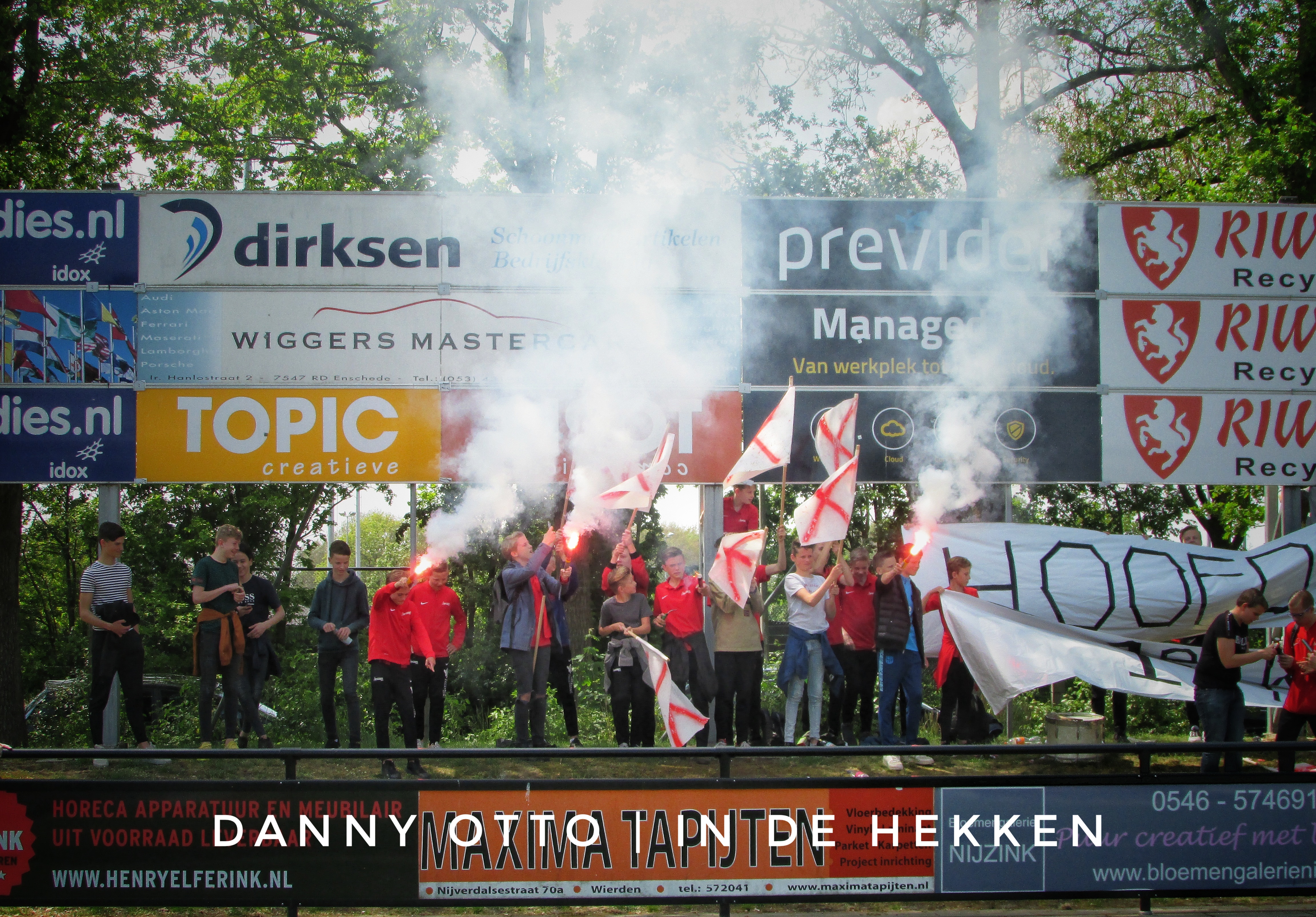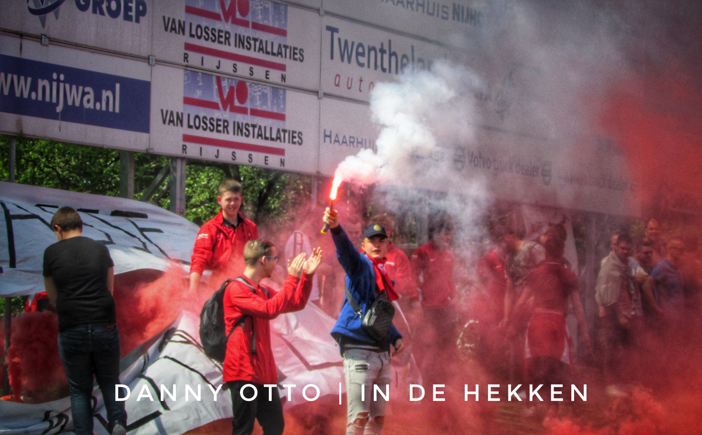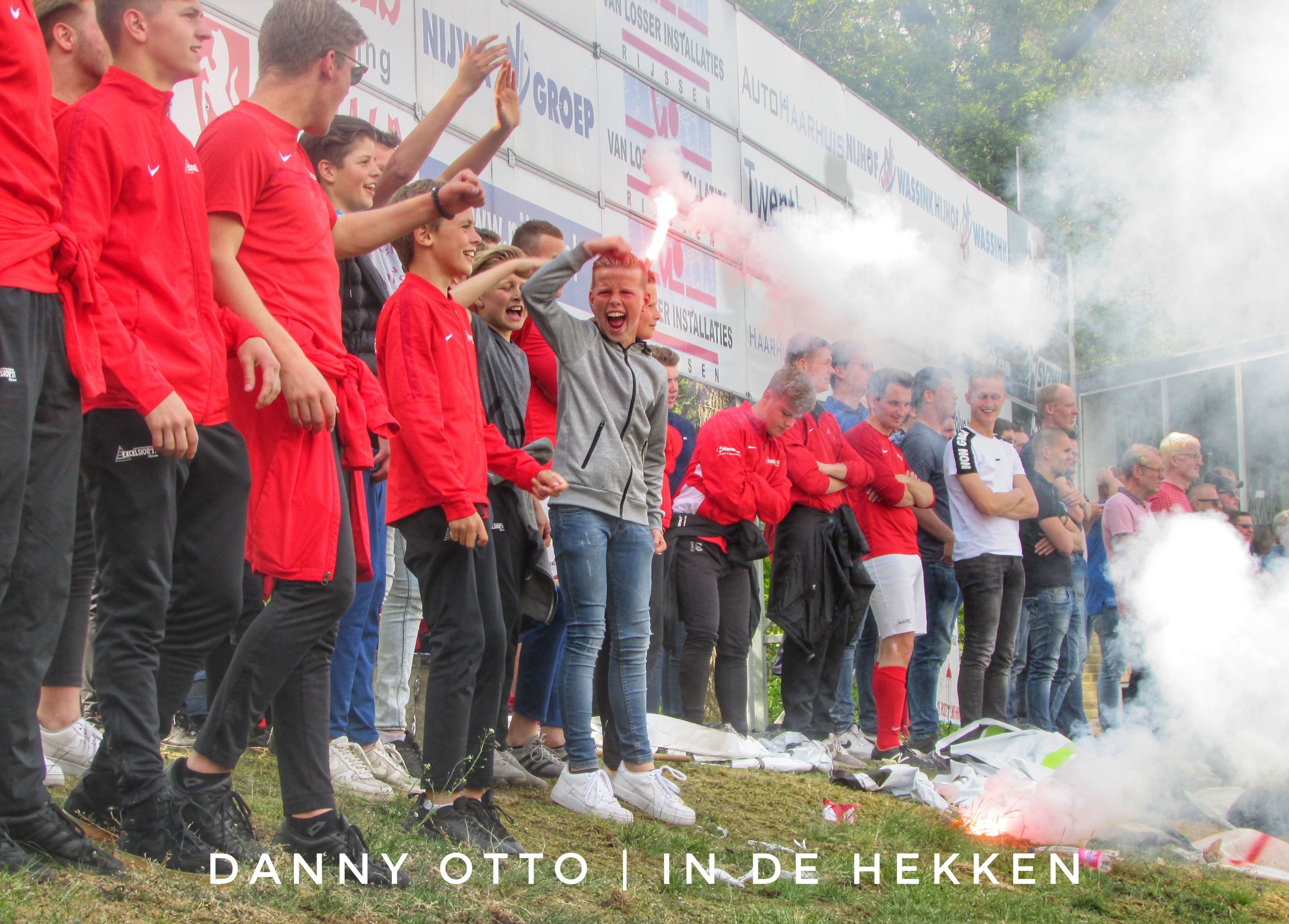 Totdat de spits van de Rijssenaren twee keer op de juiste plek staat. In de 70e en 74e minuut tikt hij op exact dezelfde wijze simpel de bal binnen. Bij de 1-2 stormen de spelers richting de ‘meegereisde’ supporters om de goal te vieren. Weer worden er rookpotten en -fakkels afgestoken. Een supporter op leeftijd vindt het nu wel mooi geweest en loopt richting een rookfakkel die in de grond is geplant. Hij neemt een flinke aanloop en trapt de fakkel de weg op die aan het sportpark grenst. Een puntertje, a la Luis Suarez.