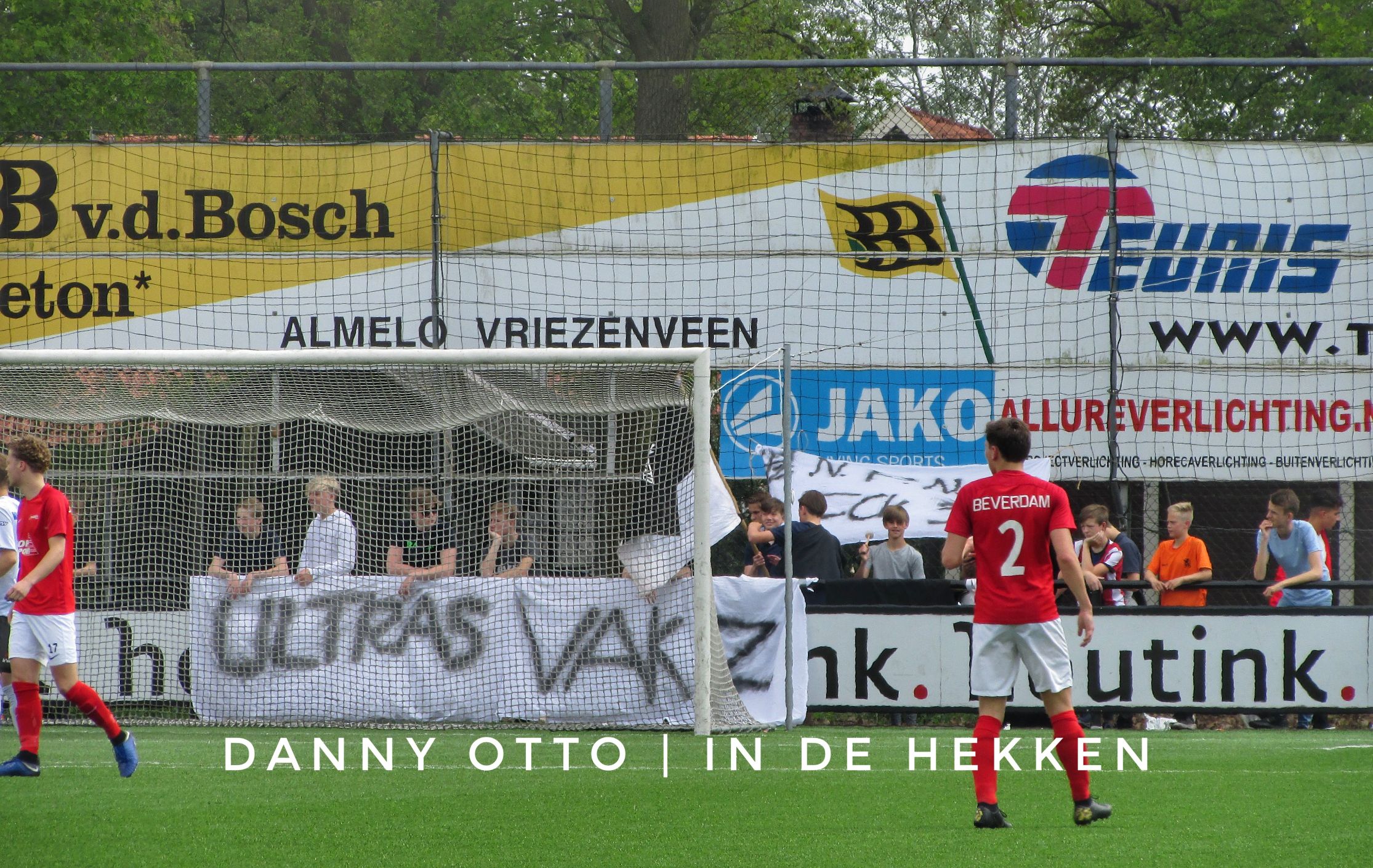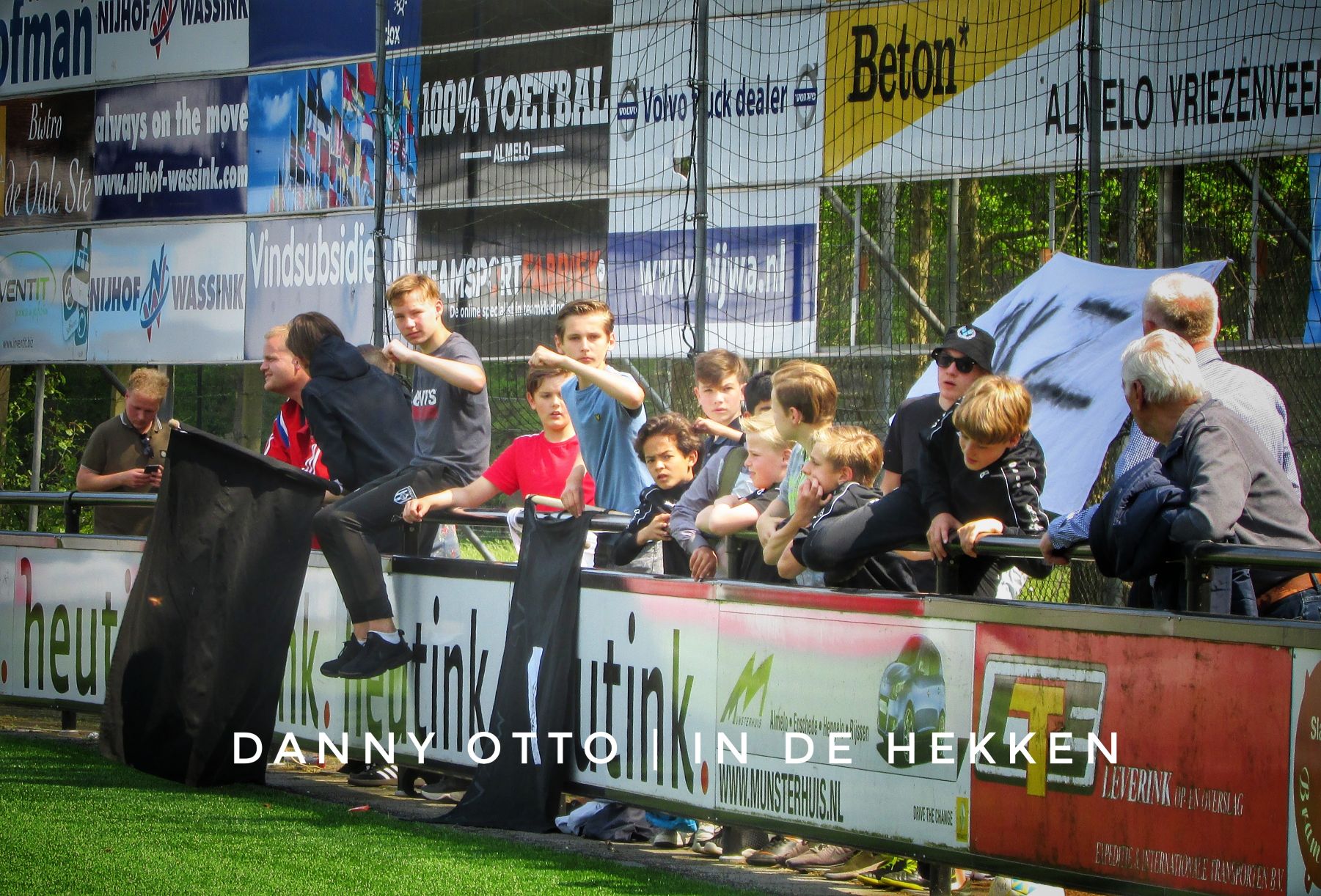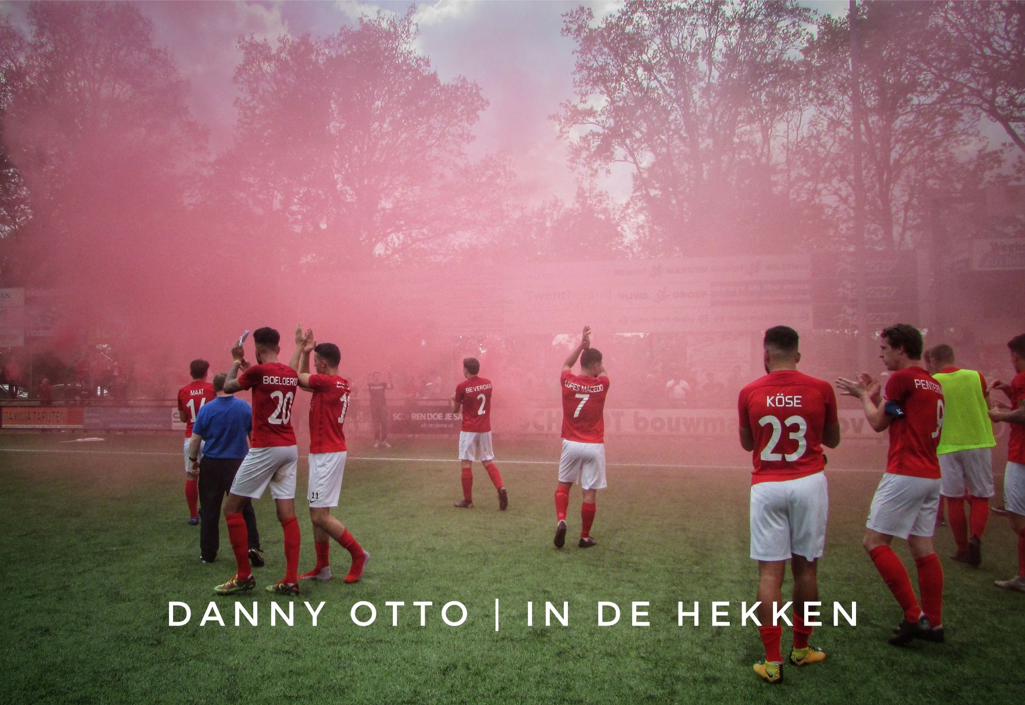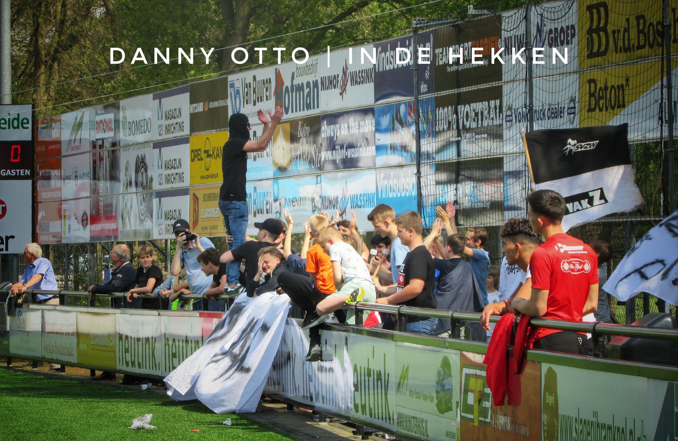 Totdat de spits van de Rijssenaren twee keer op de juiste plek staat. In de 70e en 74e minuut tikt hij op exact dezelfde wijze simpel de bal binnen. Bij de 1-2 stormen de spelers richting de ‘meegereisde’ supporters om de goal te vieren. Weer worden er rookpotten en -fakkels afgestoken. Een supporter op leeftijd vindt het nu wel mooi geweest en loopt richting een rookfakkel die in de grond is geplant. Hij neemt een flinke aanloop en trapt de fakkel de weg op die aan het sportpark grenst. Een puntertje, a la Luis Suarez.