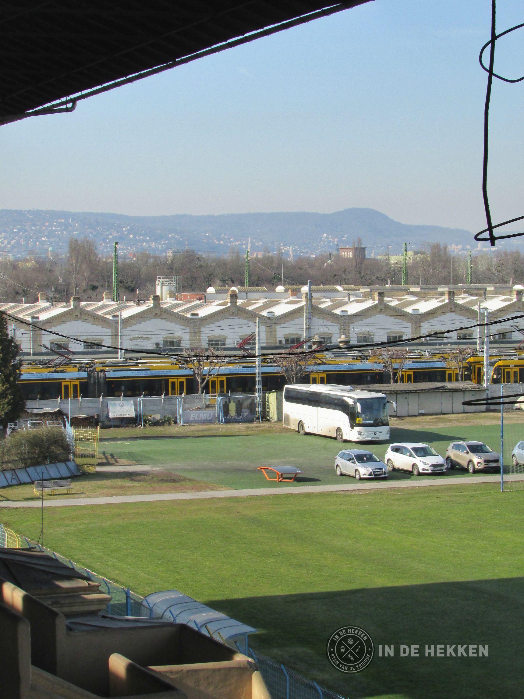 Ook de tribune zelf ademt nostalgie. Eenmaal op die tribune heb je op een paar meter hoogte een prachtig uitzicht op het hoofdveld, de bijvelden en de back-drop. In de verte is namelijk het nationale stadion van Hongarije te zien: Puskás Aréna. Verder is het afglijden van de club bijna te voelen. Stilte en verpaupering zijn de restanten van het verleden. Des te indrukwekkender is de aanschouwing van het ‘stadion’. Een gepland kort bezoekje draait juist uit op een minutenlange bewondering. Tijdens het maken van de foto’s lijkt de tijd stil te staan. Jammer dat deze club niet meer op het hoogste niveau acteert. Een volgepakte, nostalgische tribune zou magisch zijn. Maar niks is onmogelijk. Als enkele initiatiefnemers van een trammaatschappij een club kunnen oprichten en successen kunnen boeken, dan lijkt alles mogelijk.