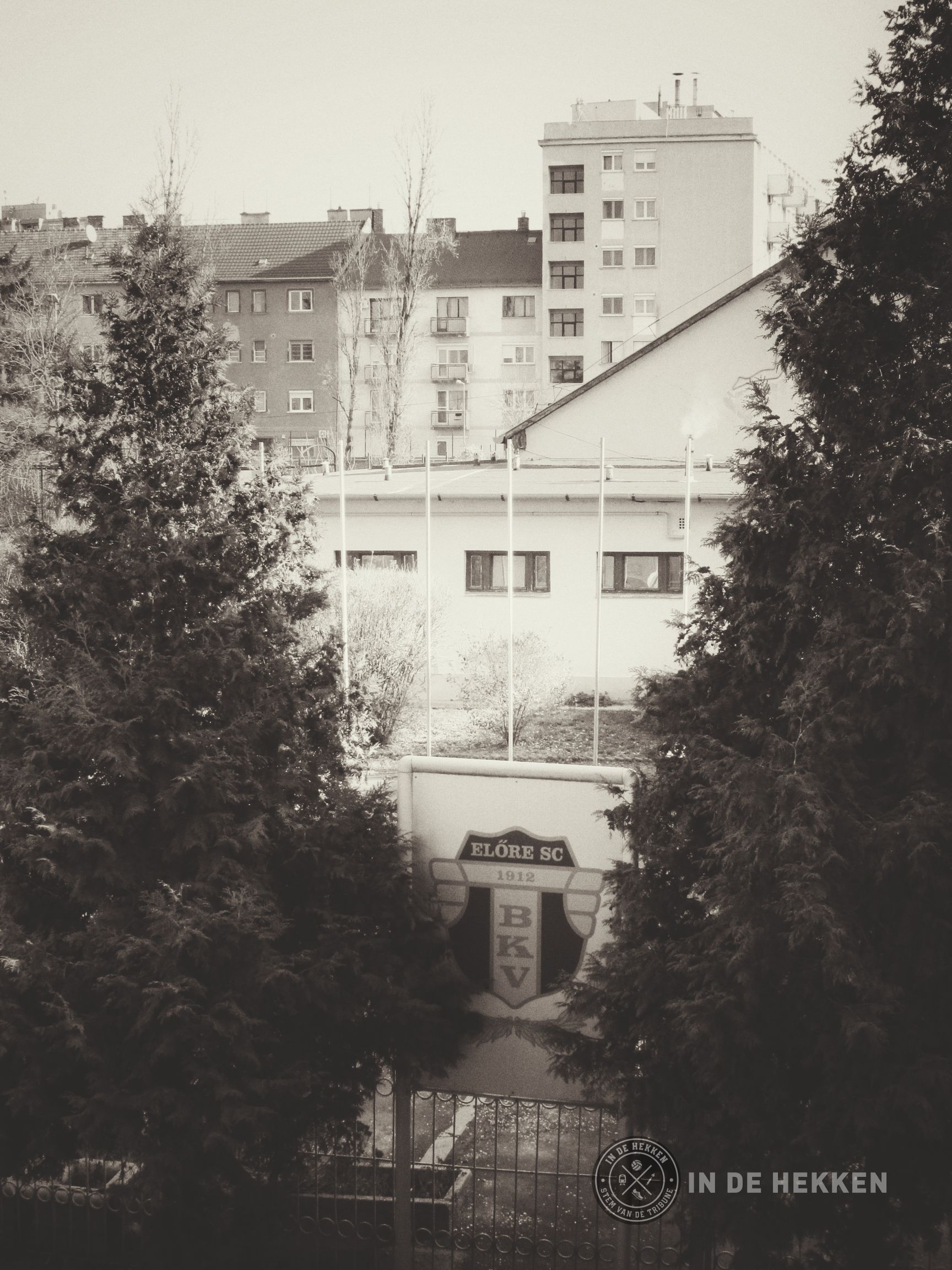 In het tweede weekend van februari dit jaar is het voor een deel van de redactie tijd om de prachtige tribune van BKV Előre SC met eigen ogen te aanschouwen. Bij aankomst valt het bouwwerk al op. De locatie is ligt namelijk lijnrecht tegenover het (spuuglelijke) stadion van MTK Boedapest. Die club is de op één na succesvolste club van Hongarije, in het spoor Ferencváros. Een ander saillant detail is dat de historische invloeden nog zichtbaar zijn in de omgeving. Aan het einde van de straat is namelijk nog steeds een tramremise aanwezig, Hungária kocsiszín. Hier kunnen trams worden opgeslagen, of door middel van een ”lusbaan worden gekeerd.