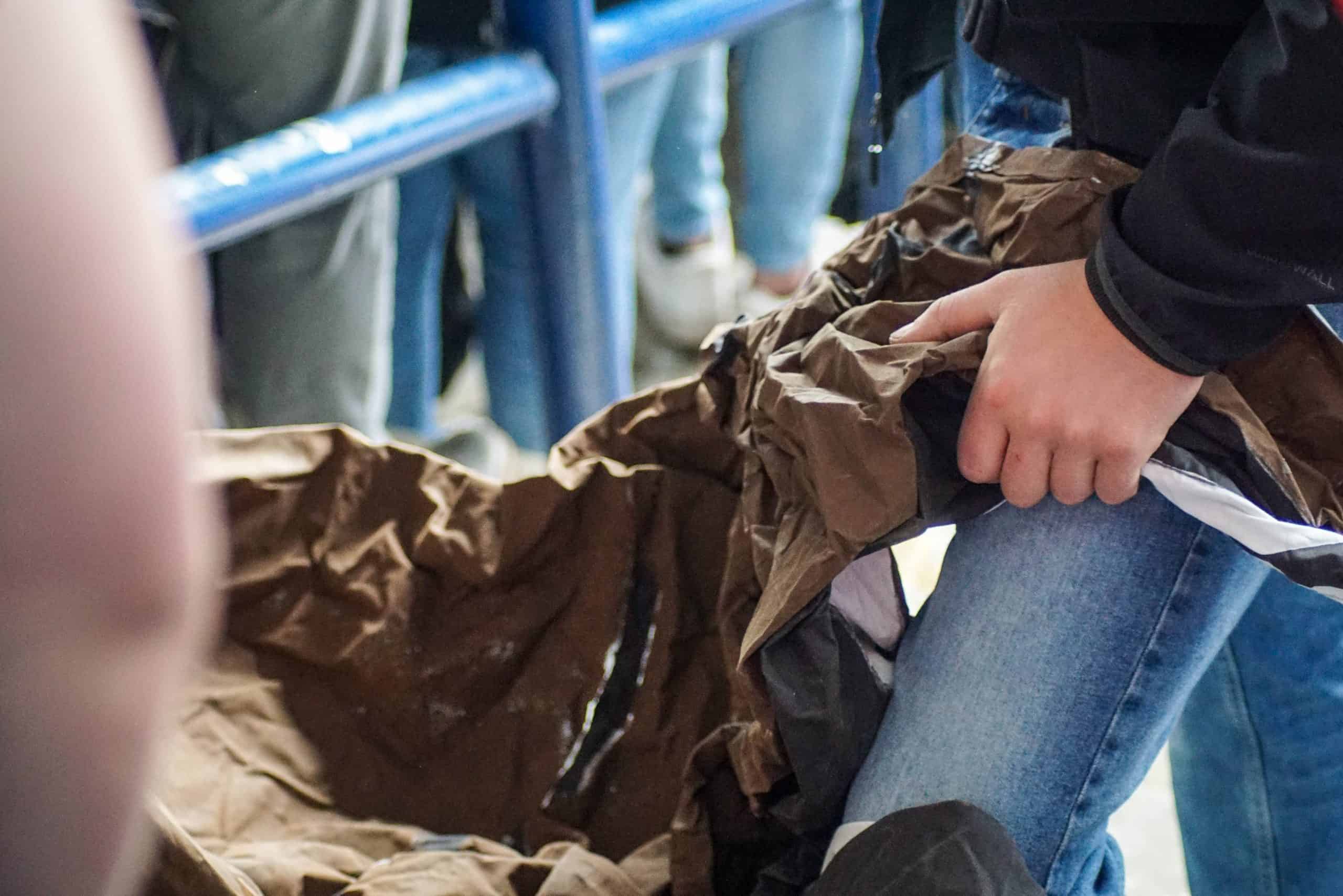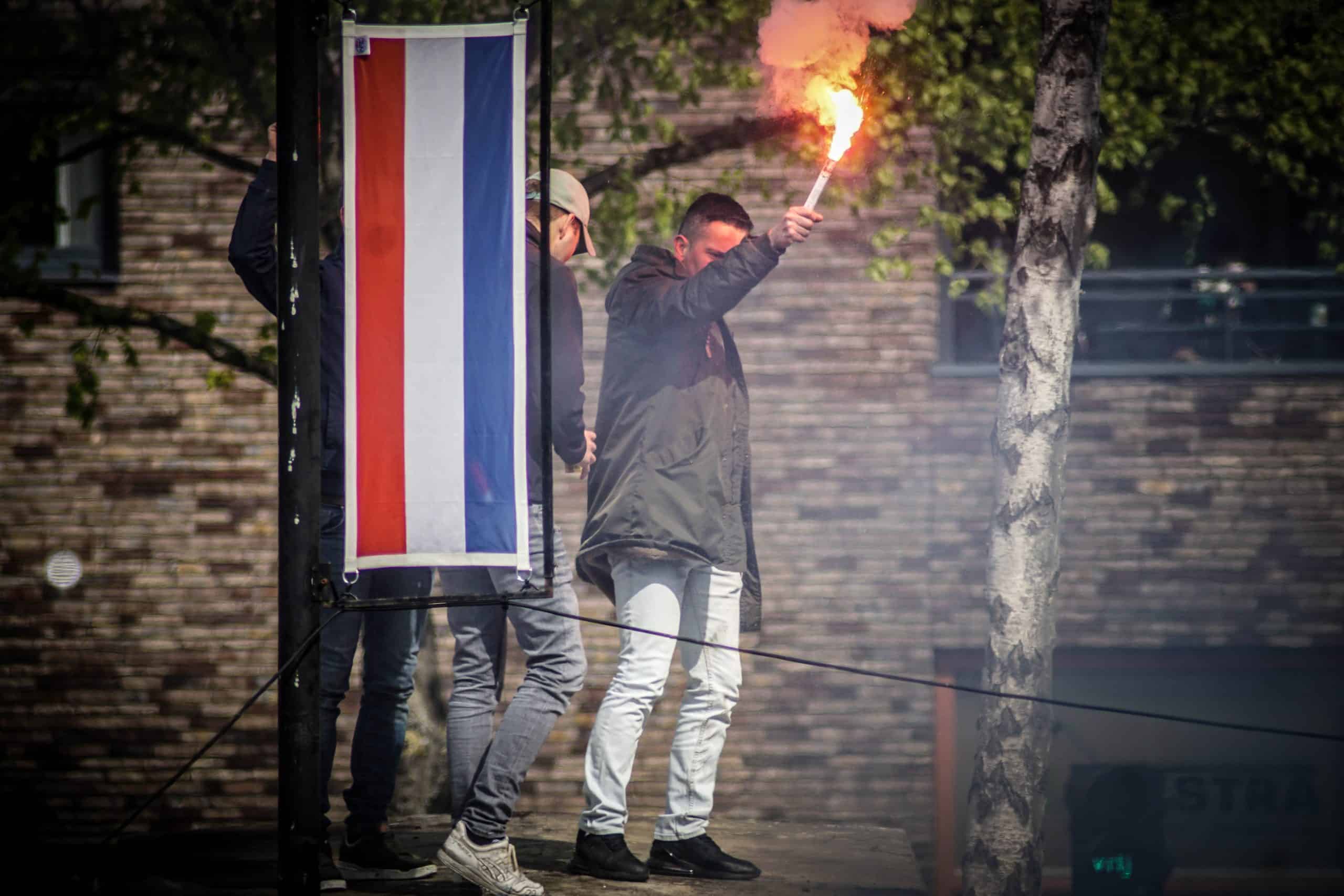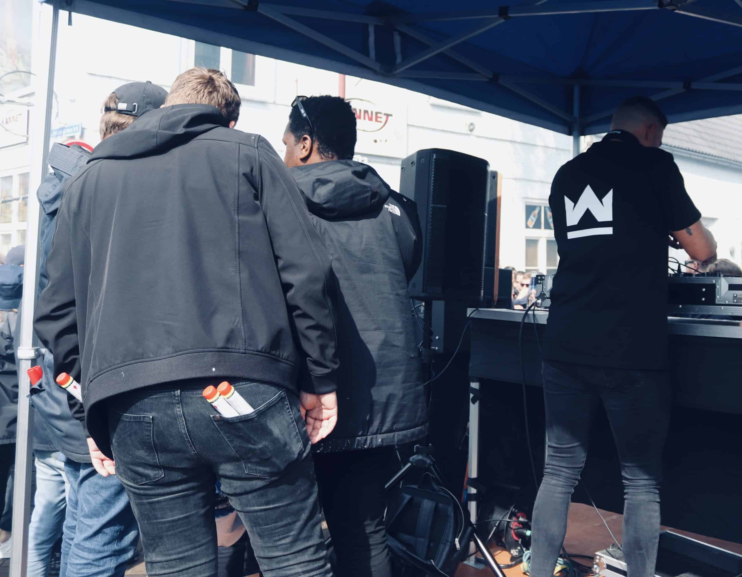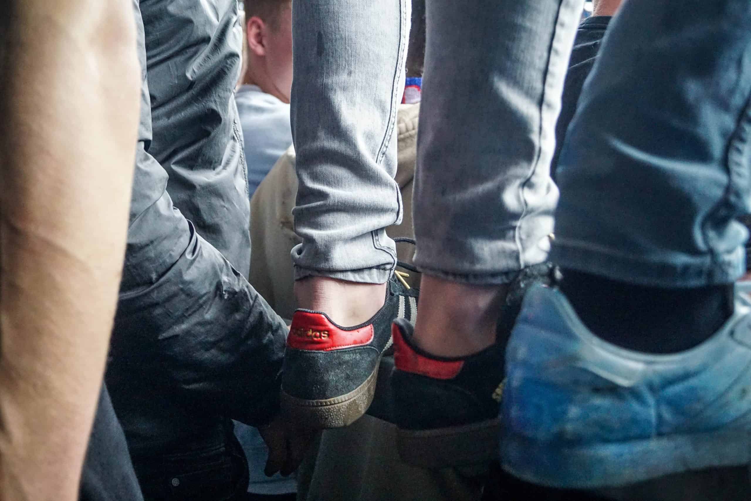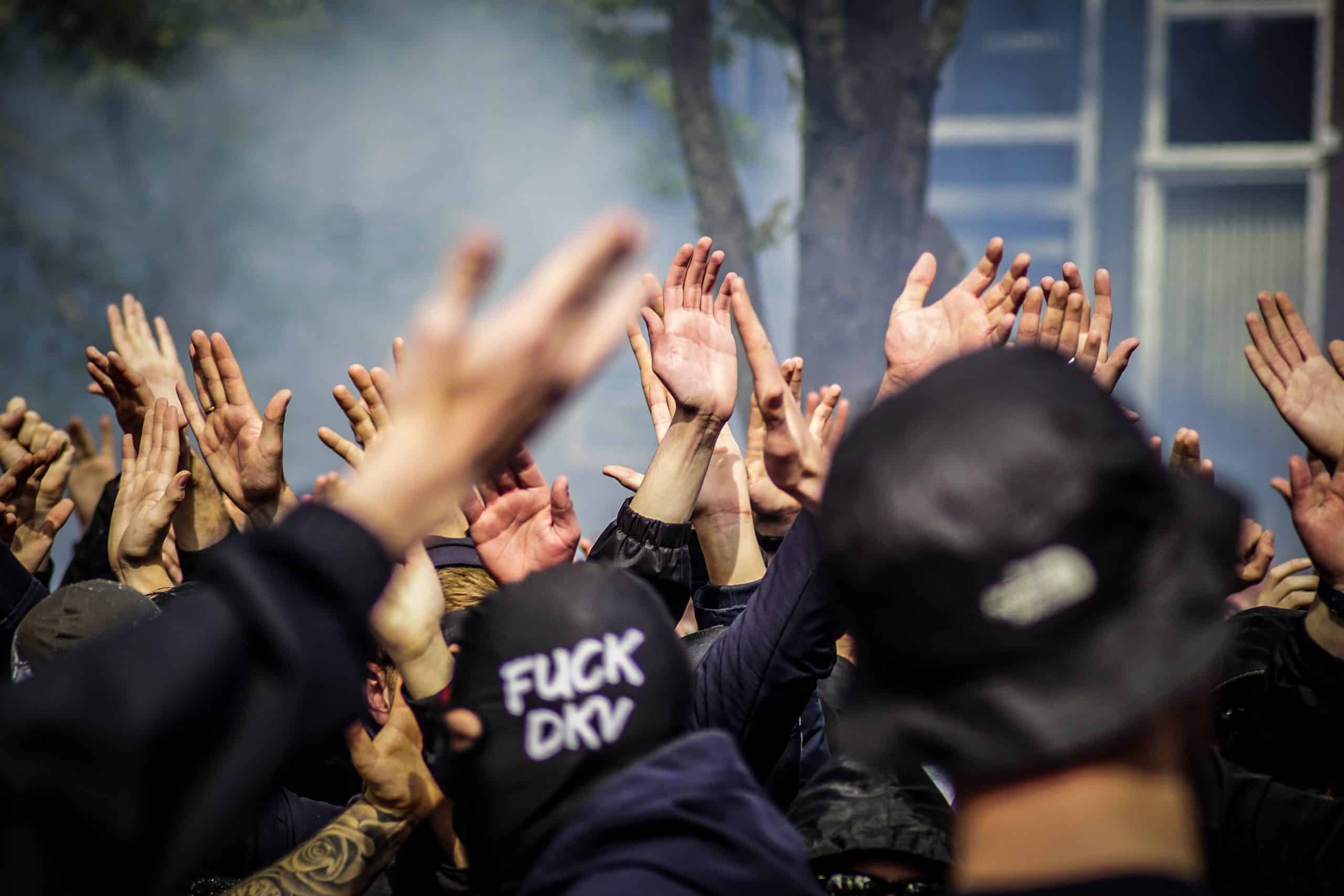 Dan is het tijd voor de hele stoet om in beweging te komen en de wandeling van, op papier, ongeveer een kwartiertje richting het Abe Lenstra stadion af te leggen. Natuurlijk duurt de corteo een heel stuk langer. Op meerdere momenten wordt er halt gehouden voor nog een massale pyroshow of wat anticambuur-liedjes. Het regent bijna de hele tijd as. De hele partij van honderden mensen wordt opgezweept door een capo met megafoon en een grote trommel. Op balkonnetjes en vanuit voordeuren kijken de inwoners van Heerenveen toe hoe de anders zo rustige stad op zijn kop wordt gezet vanwege de naderende derbyday.