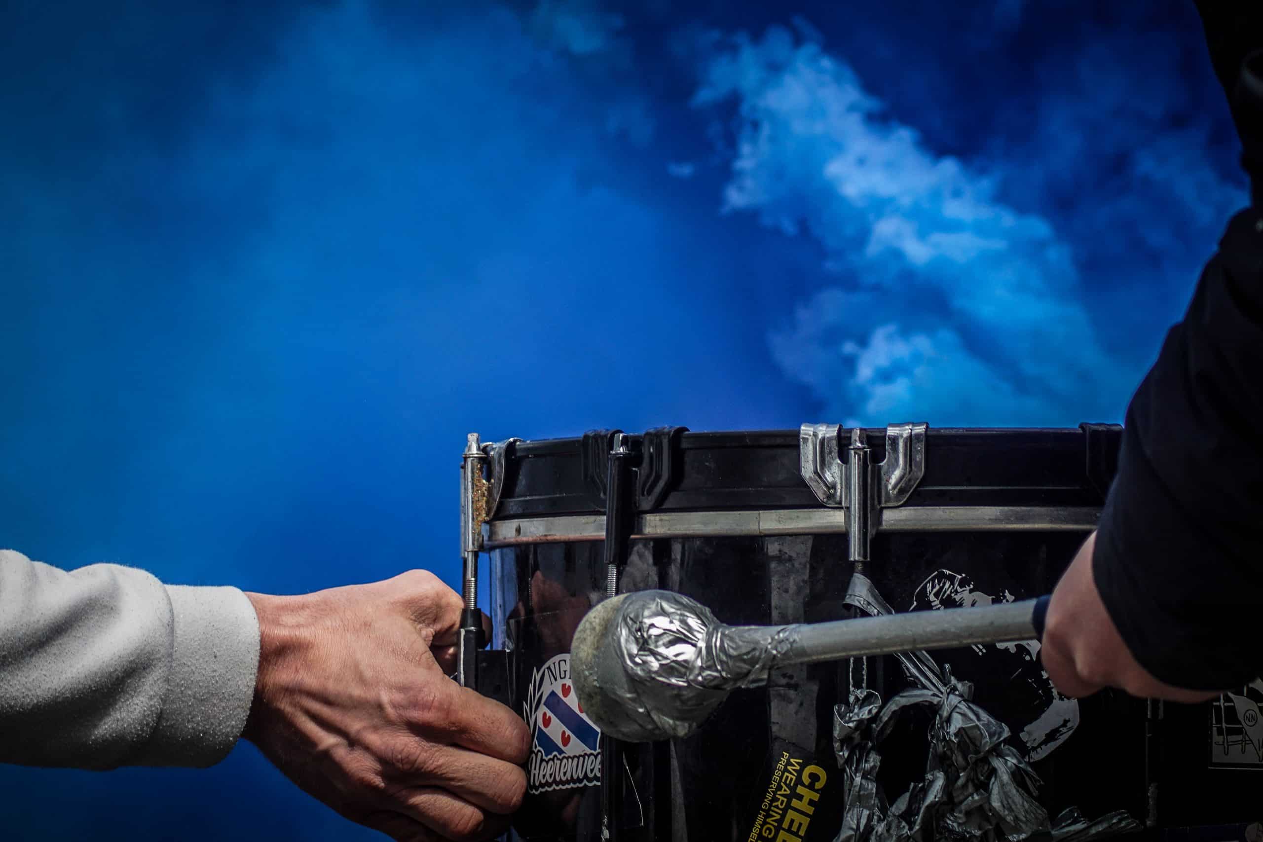 Zowel tijdens de eerste als de tweede helft is de sfeer in het stadion erg goed. Vanuit Heerenveenkant is het duidelijk dat de aanwezigheid van een capo flink helpt. Regelmatig wordt er massaal meegedaan door het aanwezige publiek. Behalve liedjes voor de eigen club, zijn het ook heel veel anti-cambuurteksten die voorbij komen. Het regent middelvingers in de richting van het uitvak. De sfeer vanuit Cambuurzijde is voor ons lastig te peilen doordat we op zo’n anderhalve meter van de trommel staan, maar puur op basis van wat we zien, kunnen we wel met zekerheid zeggen dat het ook aan die kant goed los gaat.