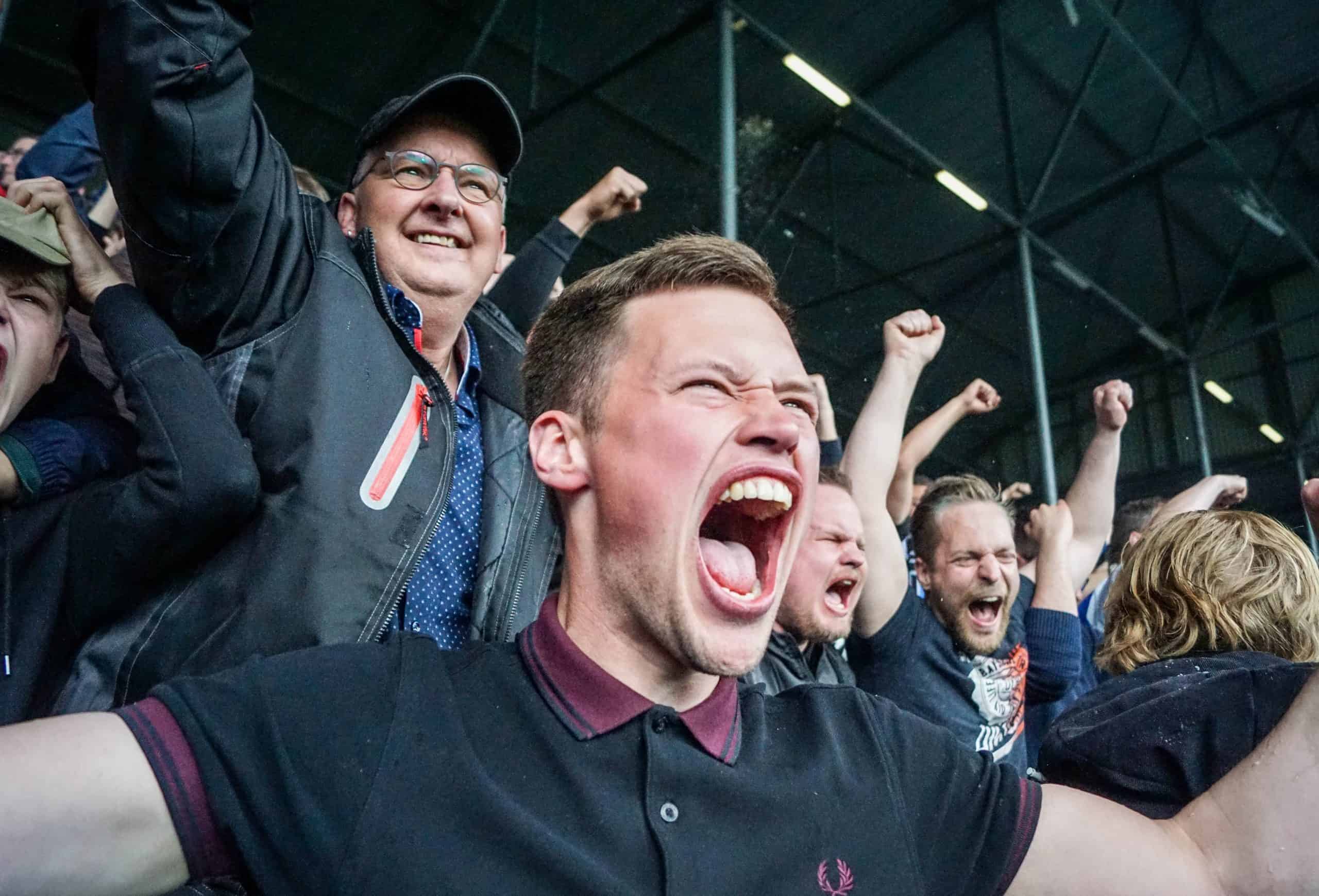Nadat de spelers zijn uitgejuicht, is er nog één minuut blessuretijd uit te spelen. Sommige mensen verlaten het stadion al en de hoop lijkt opgegeven. Tot de allerlaatste kans van de wedstrijd in de 96e minuut. Een ingooi wordt weggewerkt tot de rand van de 16. Als Joost van Aken vervolgens een mislukt schot tot doelpunt weet te promoveren, is de ontlading compleet. Mensen weten van gekkigheid niet meer wat ze moeten doen. Het is een van de meest bizarre ontknopingen die een derby maar kan hebben. Het kippenvel staat ons op de armen en het is een bijzonder einde van een van Nederlands meest felle derby’s met zowel op als naast het veld genoeg te genieten.