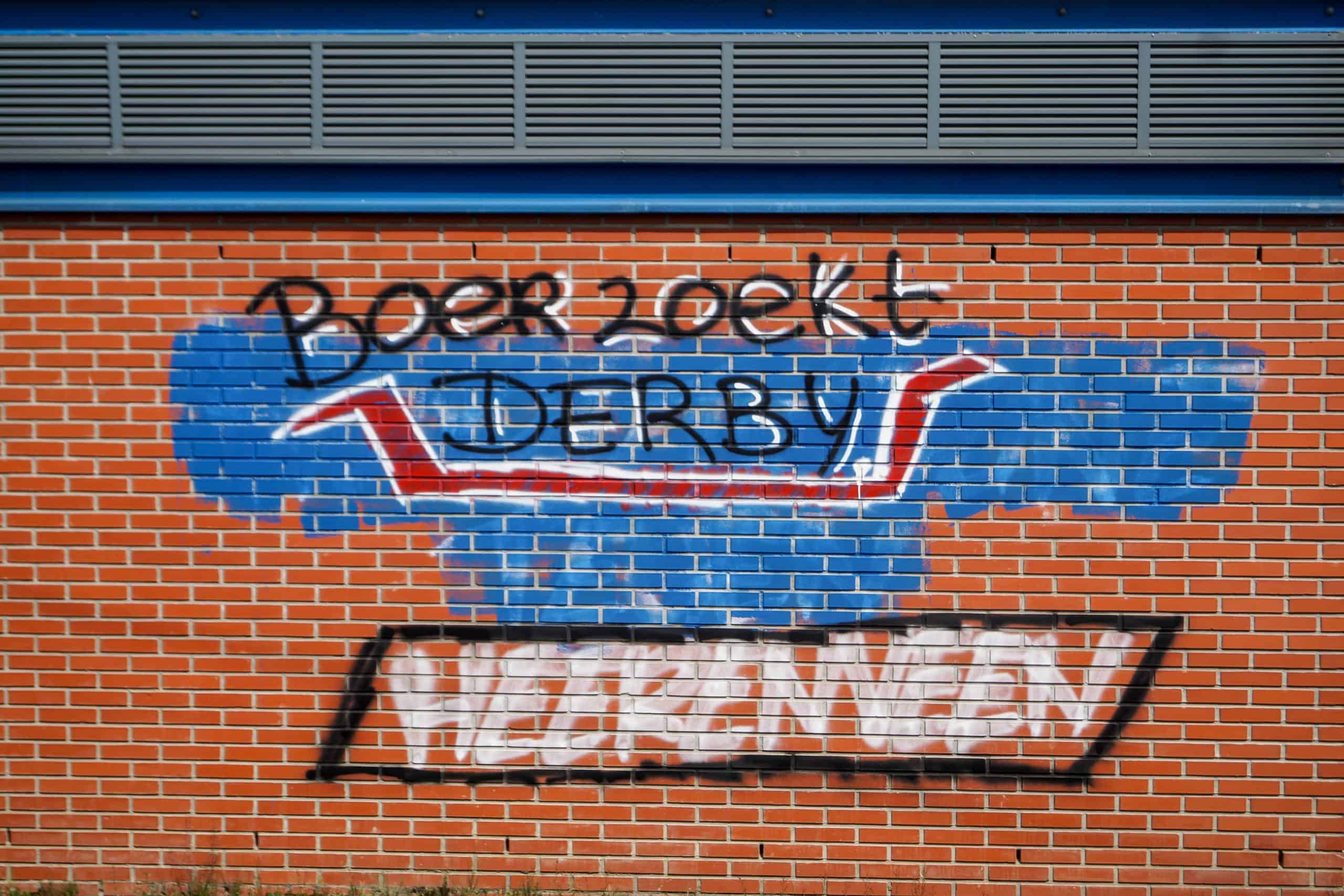 Dat is de wedstrijd tegen Cambuur, of Dertig Kilometer Verderop (DKV) zoals ze de rivaal noemen, wel degelijk. Dat is aan alles te merken. In het hele dorp hangt het vol met anti-cambuur stickers. En in de week voorafgaand aan de derby bracht een groepje supporters van Heerenveen een bezoekje aan het Cambuurstadion om daar een hertenkop (de verwijzing moge duidelijk zijn) achter te laten. In Leeuwarden was er dan vooral weer hilariteit over het filmpje dat opdook van vlak na de foto, waarin je de supporters van Heerenveen in looppas naar de auto’s ziet verdwijnen. Kortom, er is al weer genoeg gebeurd om de boel op scherp te zetten!
