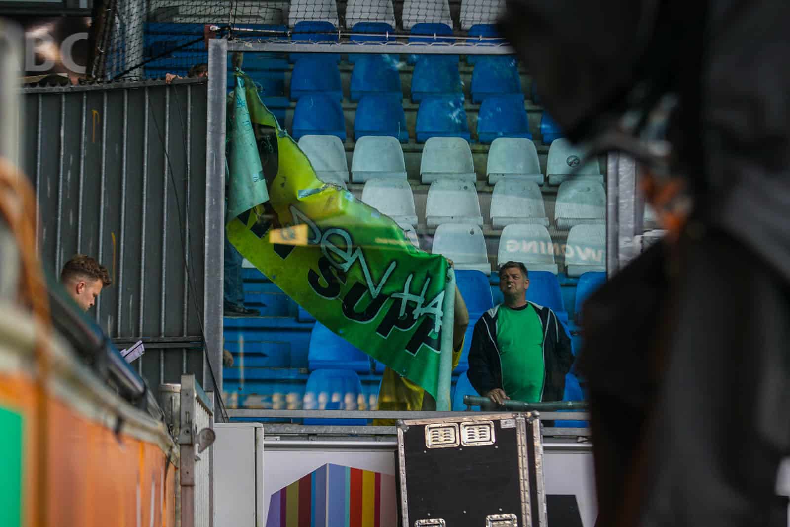 Als de wedstrijd nog geen tien minuten bezig is in de tweede helft doet er zich een incident voor waardoor iedereen weer even beseft wat echt belangrijk is. Er ontstaat rumoer op de Spinside, vanwege een supporter die onwel is geworden. Meteen wordt er ruimte gemaakt voor de medici en zodra het uitvak van Den Haag doorheeft wat er gaande is valt het ook hier doodstil. De ultras geven gelijk de vlaggen door naar boven zodat het medisch personeel ongezien haar werk kan doen.