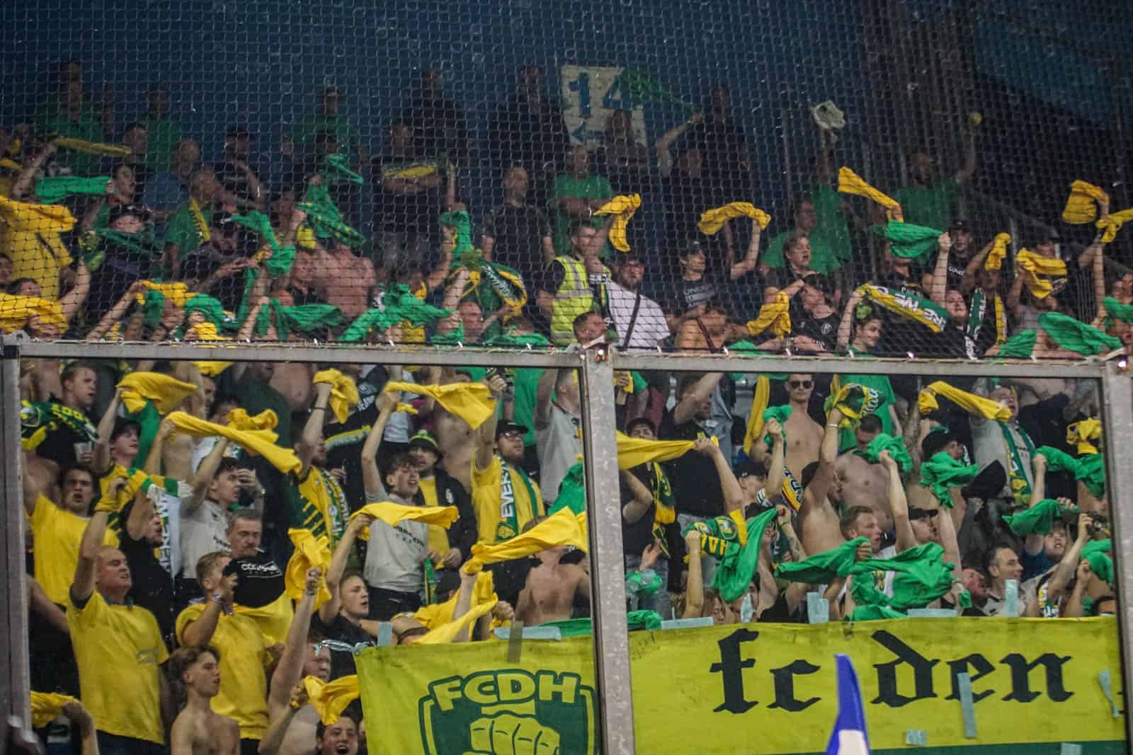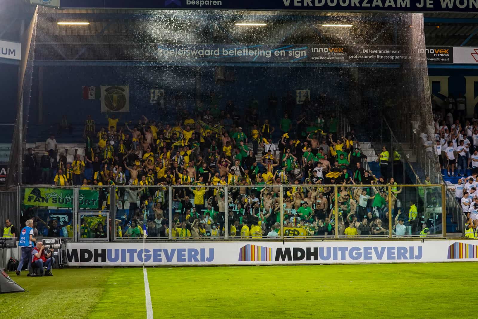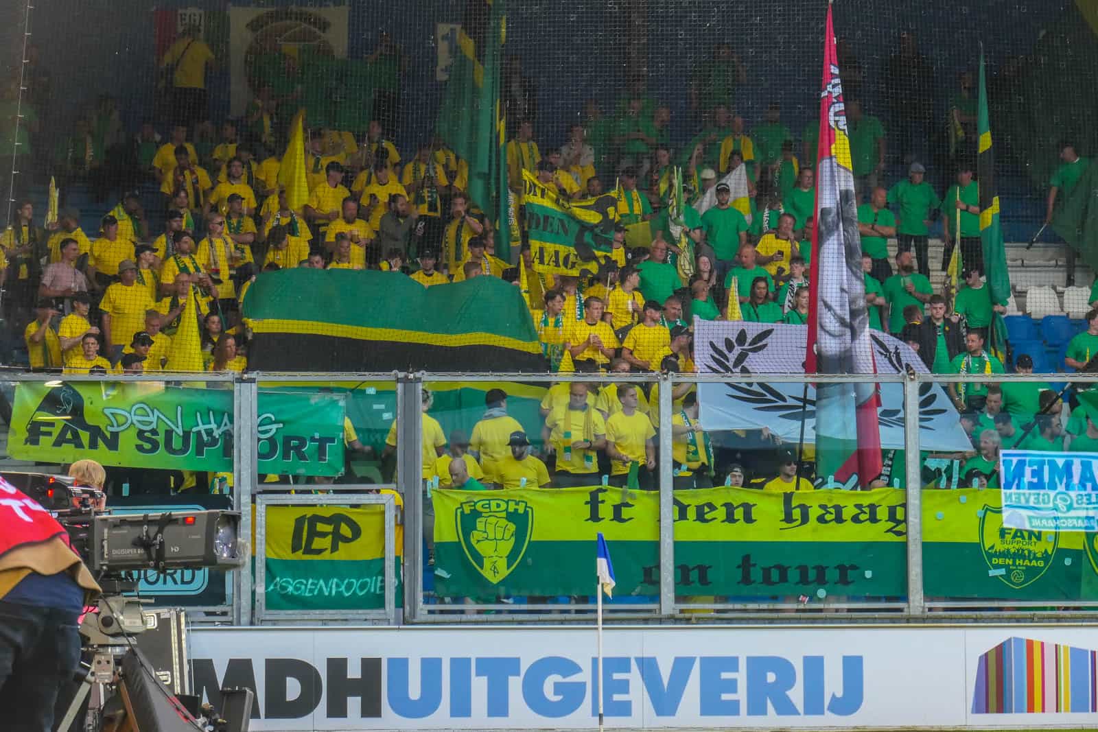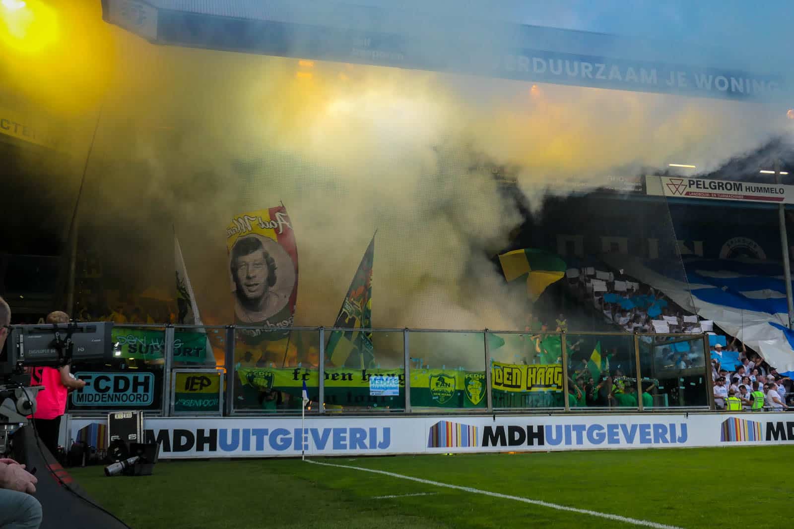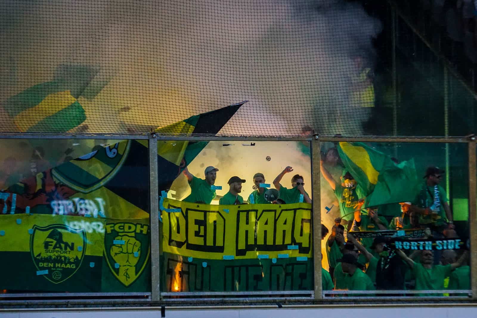 Toevallig heeft ook het uitvak gekozen voor een shirtjesactie. De Hagenezen zijn gegaan voor een half vak dat geel draagt en een half vak in het groen. Zo is eigenlijk het hele stadion, waar dankzij de zomerse temperaturen een jas niet benodigd is, gekleed in groen, geel of wit. Deze moeite geeft daardoor gelijk een speciaal gevoel aan deze wedstrijd – iets wat past bij de play-offs. Ook het uitvak is niet volledig uitverkocht, iets dat vanwege de bizar strenge restricties van ADO (buscombi, ID-controle en seizoenkaartrestrictie) ook niet heel gek is. Dat een uitverkocht stadion en uitvak niet per se benodigd zijn voor een geweldige sfeer, zullen we vanavond wel gaan merken…