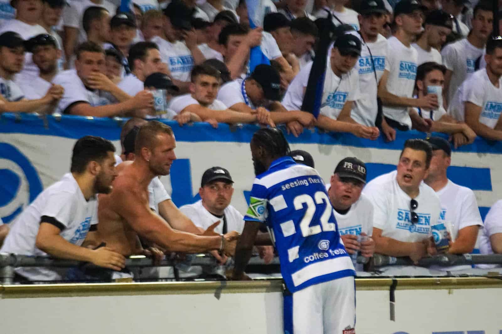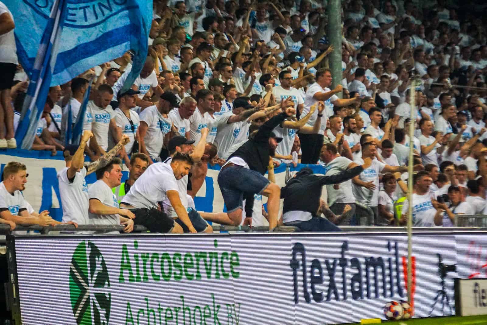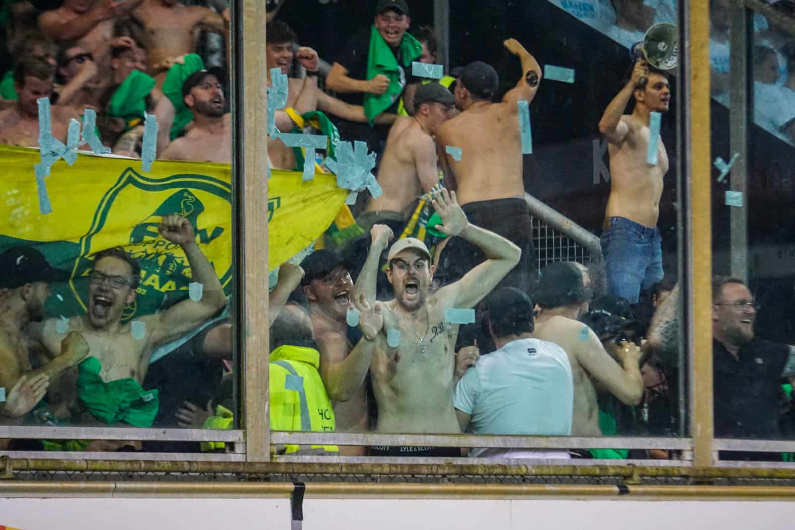 Pas als de situatie volledig is opgelost gaat de wedstrijd weer door. Het arbitrale kwartet betreedt het veld met een striemend fluitconcert, terwijl de spelers van beide kanten mogen rekenen op oorverdovende steun. De periode zonder voetbal heeft de supporters goed gedaan en het besef om gas te geven is er alleen maar meer. Het zorgt voor een fantastisch vocaal resultaat in de Vijverberg.