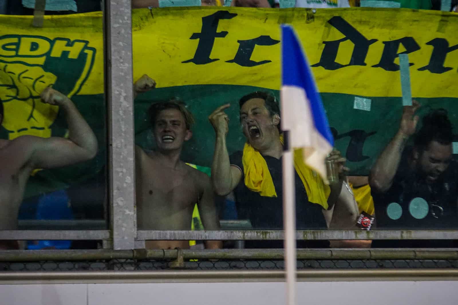 Vanaf het eerste moment gaat het vervolgens vocaal keihard vanaf de tribune. Beide supportersgroepen knallen er vanaf de aftrap vol op en overstemmen bij vlagen de ander. Hierbij zie je wel gelijk het verschil in stijl tussen de gasten uit Den Haag en de thuisploeg uit Doetinchem. In het uitvak is geen trommel aanwezig, gaan de nummers een stuk sneller en wordt er veel in het Engels gezongen. De thuissupporters hebben meer de Duitse ultra stijl, met nummers die lang doorgaan en veel geklap onder leiding van de capo’s