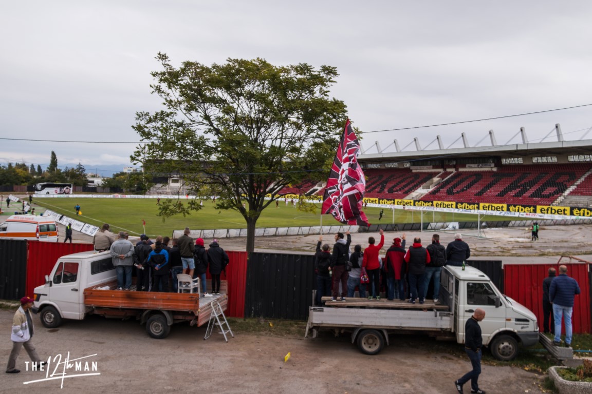We wisten van te voren dat de wedstrijd zonder publiek gespeeld zou worden. De thuisploeg had immers een straf van vier wedstrijden zonder publiek gekregen. Resultaat van een pitch invasion waarbij de scheidsrechter werd gemolesteerd. Welkom in de tweede divisie van Bulgarije!